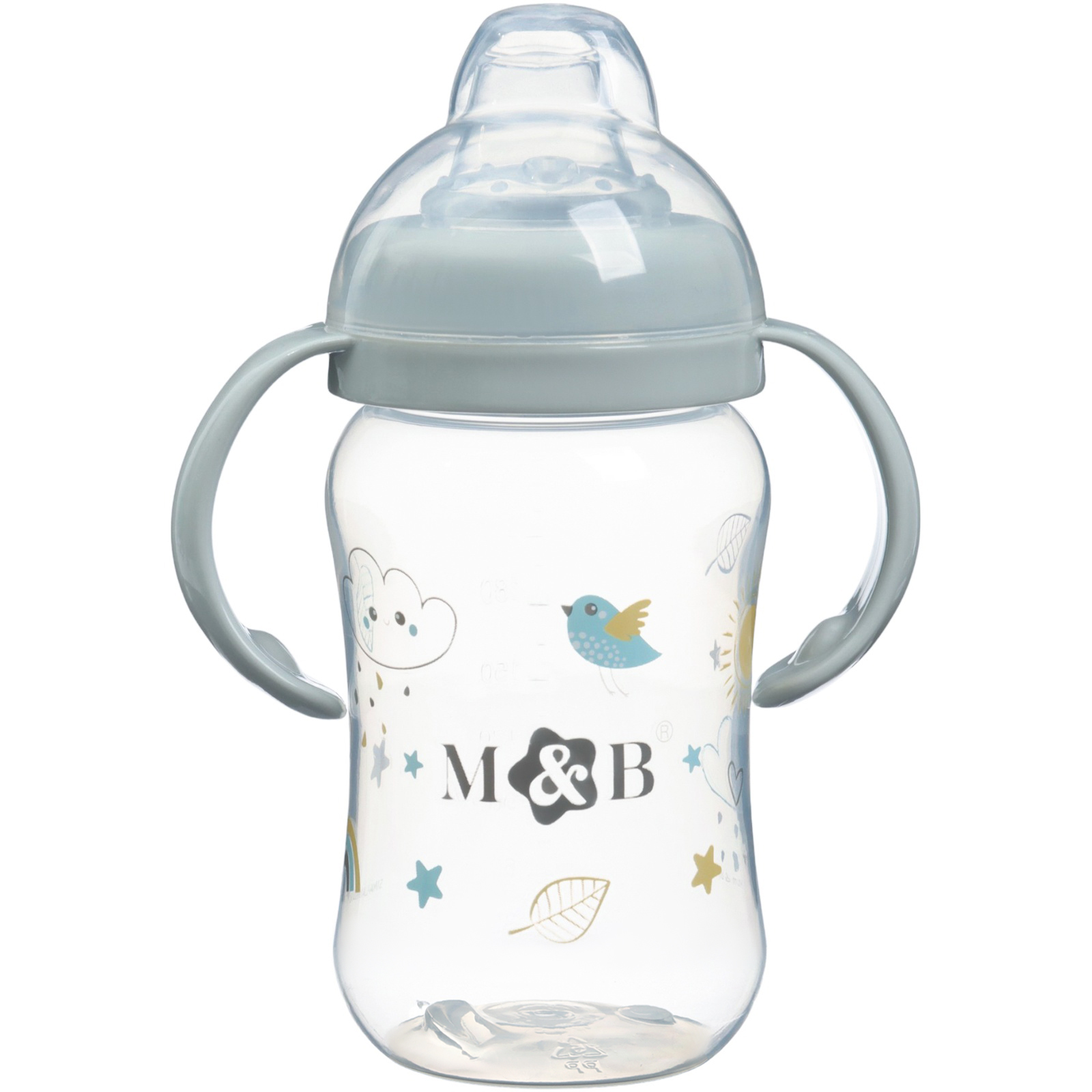 Поильник - непроливайка детский с мягким носиком «m&b», 270 мл., с ручками, цвет серый