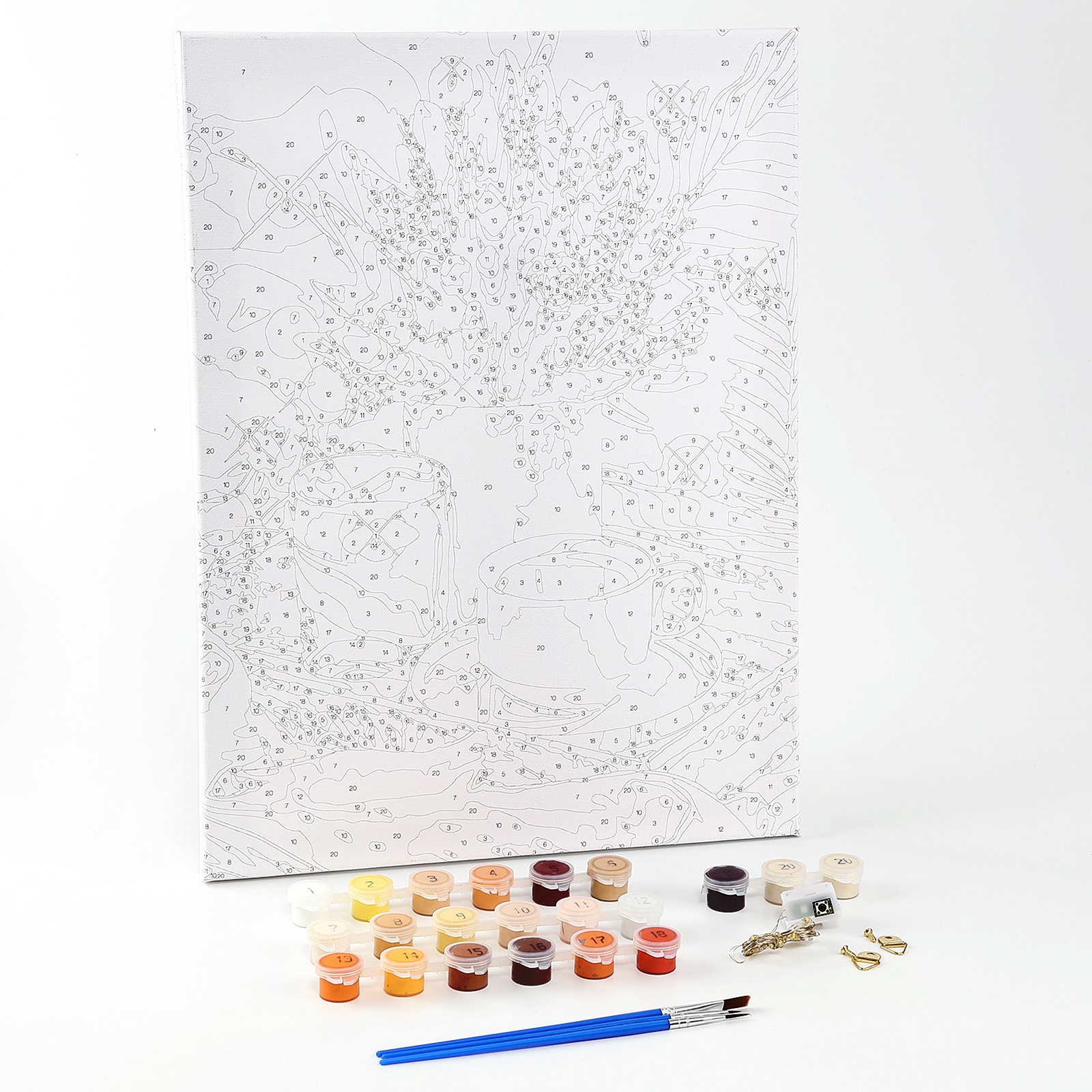 Картина по номерам на раме, с гирляндой «кофе», 30х40 см. Раскрашивание по номерам покорило сердца миллионов людей по всему миру, ведь с ним каждый может создать шедевр! Присоединяйтесь к этому увлекательному занятию, творите и наслаждайтесь результатами. Особенности набора Холст разделён на множество мелких фрагментов, на каждом указано число, соответствующее цвету, которым нужно закрасить данный участок.В набор входят все необходимые оттенки красок. Баночки пронумерованы.Поначалу, когда вы только возьмёте холст в руки, будет сложно представить, что получится в итоге. Но, уверяем вас, результат превзойдёт все ожидания. Полотно с множеством оттенков, теней и красок будет выглядеть так, словно оно из музея.В наборе есть гирлянда. Сделайте прорези в холсте шилом, где пожелаете, и вставьте лампочки. Эффектный ночник готов!Для кого:Для женщины|Размер, см:30 х 40|Возраст:Для взрослых|Тематика:Натюрморт|Тематика:Цветочно-растительная|Ориентация изображения:Вертикально|Вид:Холст под роспись|Темпер. ограничение НЕ НИЖЕ :-10|Уровень сложности:Сложный|Комплектация набора:С красками|Комплектация набора:С гирляндой|Комплектация набора:С кисточками|Страна:Китай  развернуть описание ▼