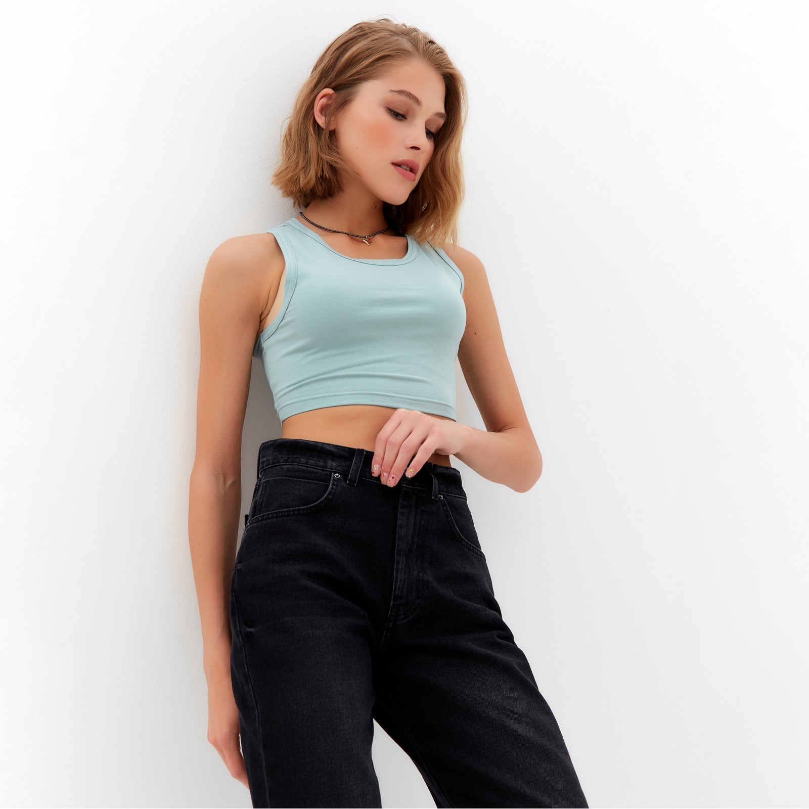 Топ женский minaku: basic line цвет аквамарин, р-р 48. Фактура материала ткани – рубчик. Цвет: Зелёный Для кого: Для женщины Назначение: Повседневная Ткань: Кулирка пенье : 200 Размер: 48 Рост модели на фото, см: 170 Сезон: Лето Тематика: Однотонная Вид упаковки: Пакет Вырез горловины: Круглый Декоративные элементы: Без элементов Комплектация: Топ Покрой: Облегающий Рекомендации по уходу: Деликатная стирка при 30 °С Рекомендации по уходу: Бережный режим глажки Рекомендации по уходу: Не отбеливать Вид: Однотонная Состав ткани: Хлопок Состав ткани: Эластан Обхват талии, см: 74 - 78 Температурное ограничение: Нет Вид: Футболка Длина изделия по спинке, см: 33 Обхват груди, см: 96 - 100 Коллекция: MINAKU: Basic line Вид бретелей: Широкие Фактура материала: В рубчик Параметры модели на фото (ОГ-ОТ-ОБ): 77-53-86 Сезон: Лето Размер одежды на модели: 42  развернуть описание ▼