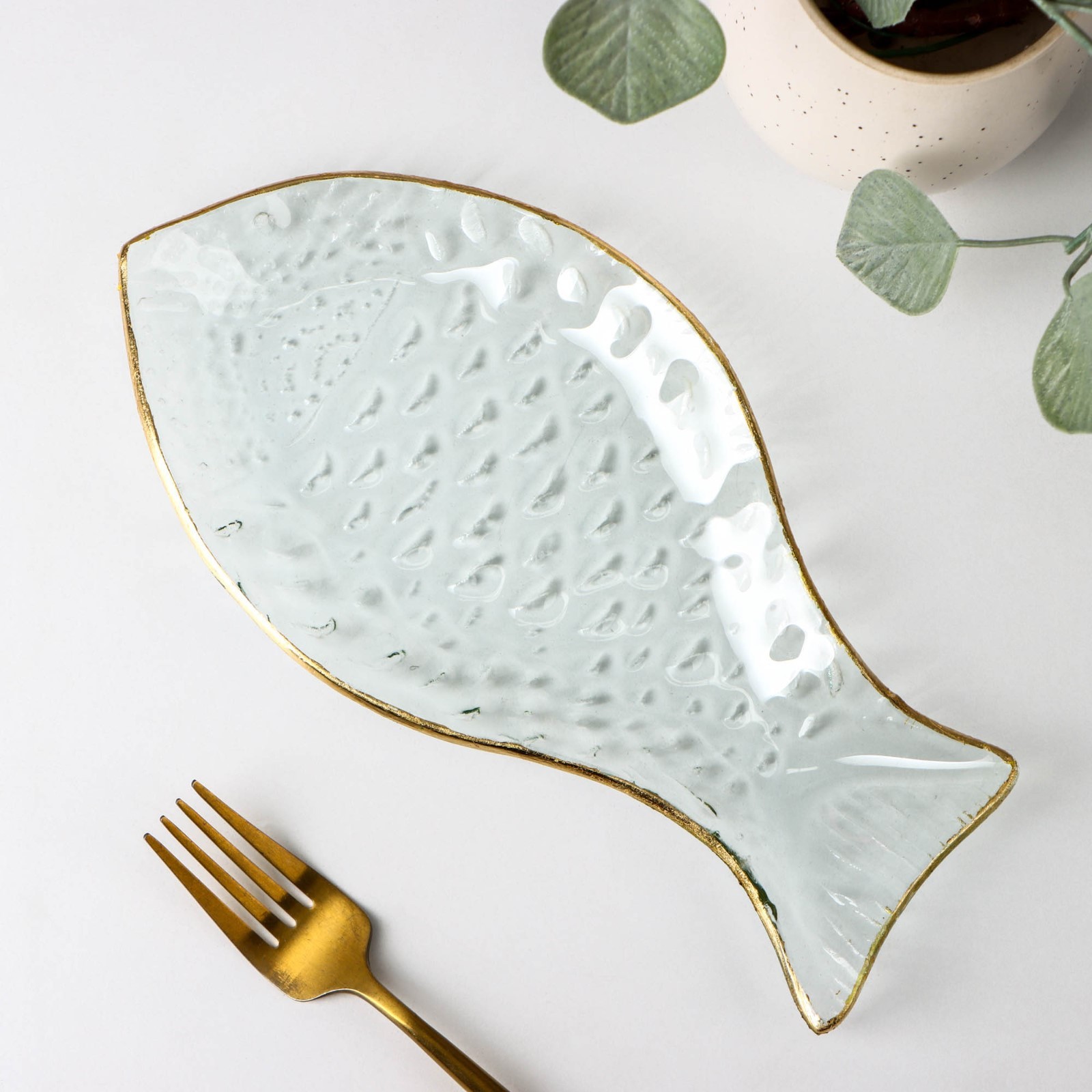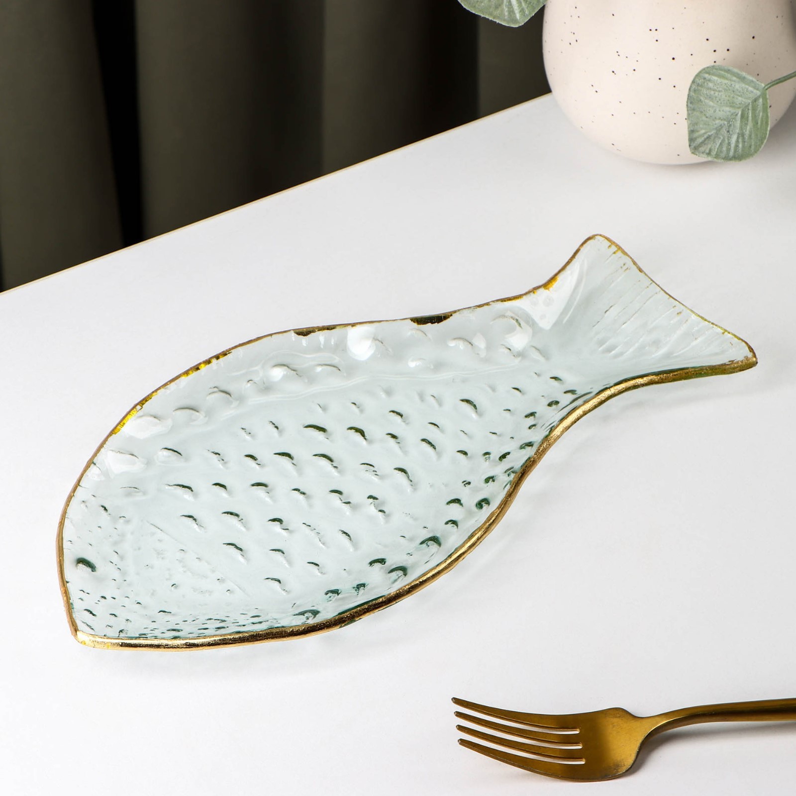 Блюдо стеклянное сервировочное «рыбка», 13x24 см, с золотой каймой
