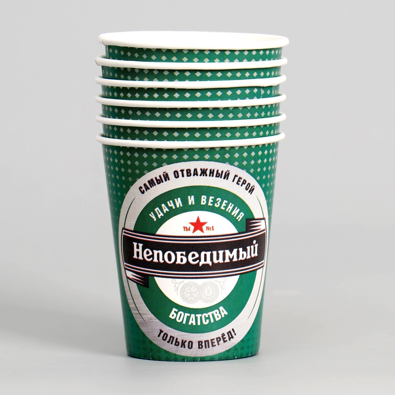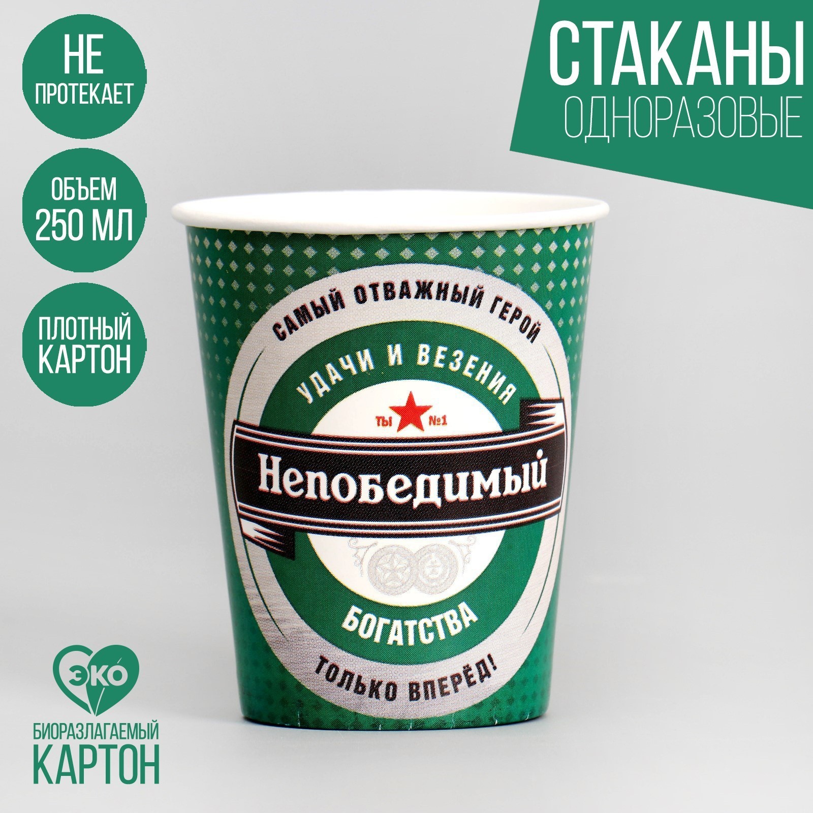 Стакан одноразовый бумажный "непобедимый", набор 6 шт, 250 мл