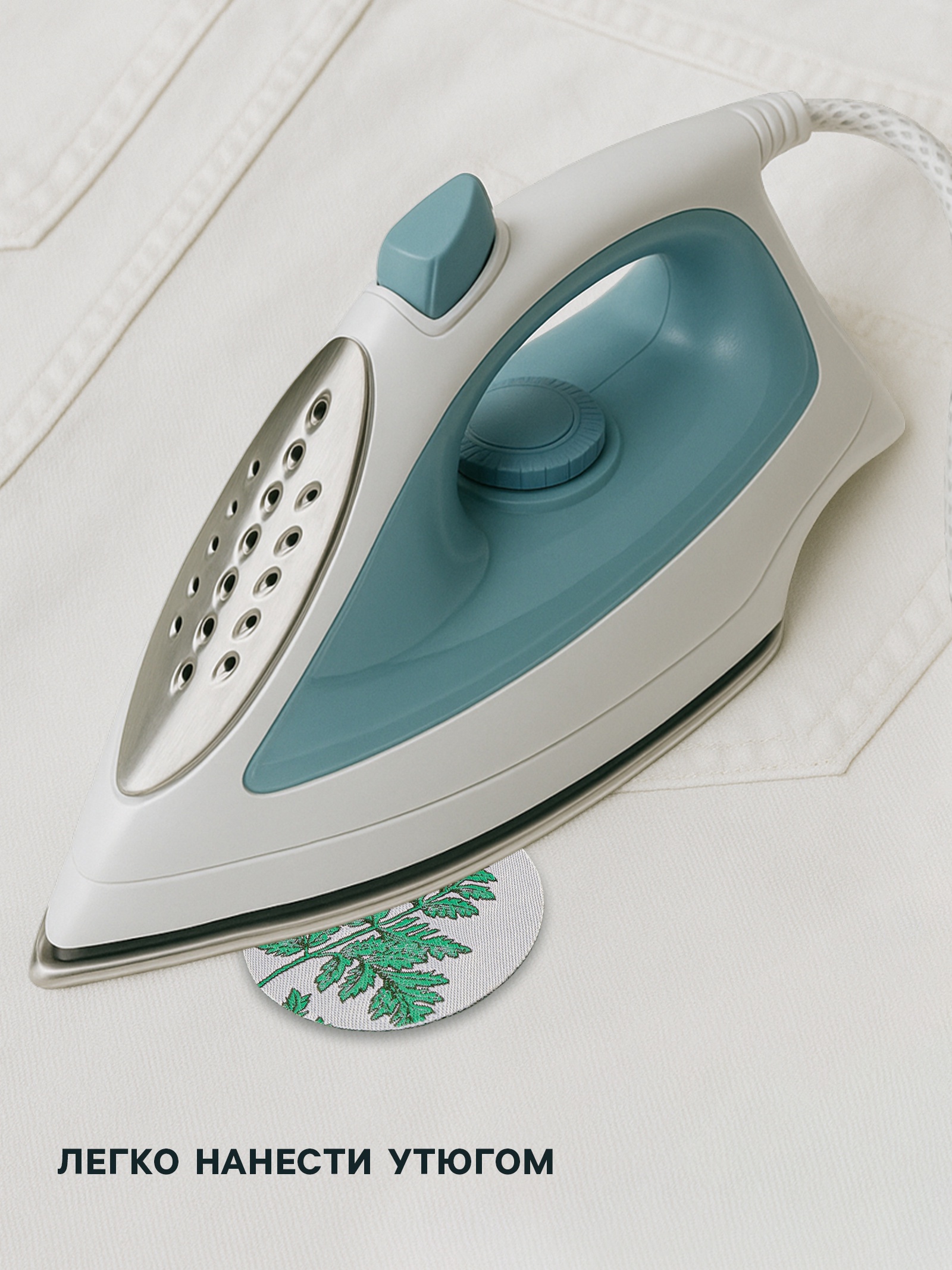 Добавьте свежести в дизайн одежды — с круглой термоаппликацией в оттенках зелёного. Узор, напоминающий живописные мазки листвы, легко фиксируется на ткани утюгом и мгновенно оживляет футболки, сумки, толстовки. Никакого шитья — только идея и результат.