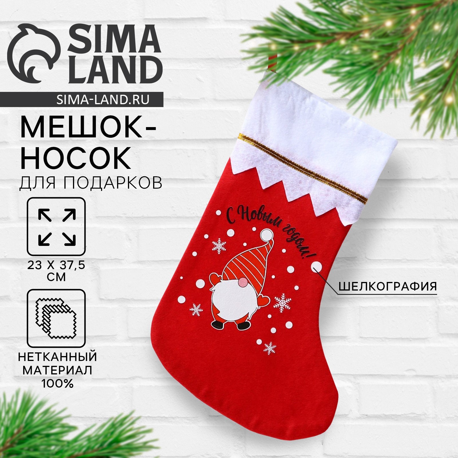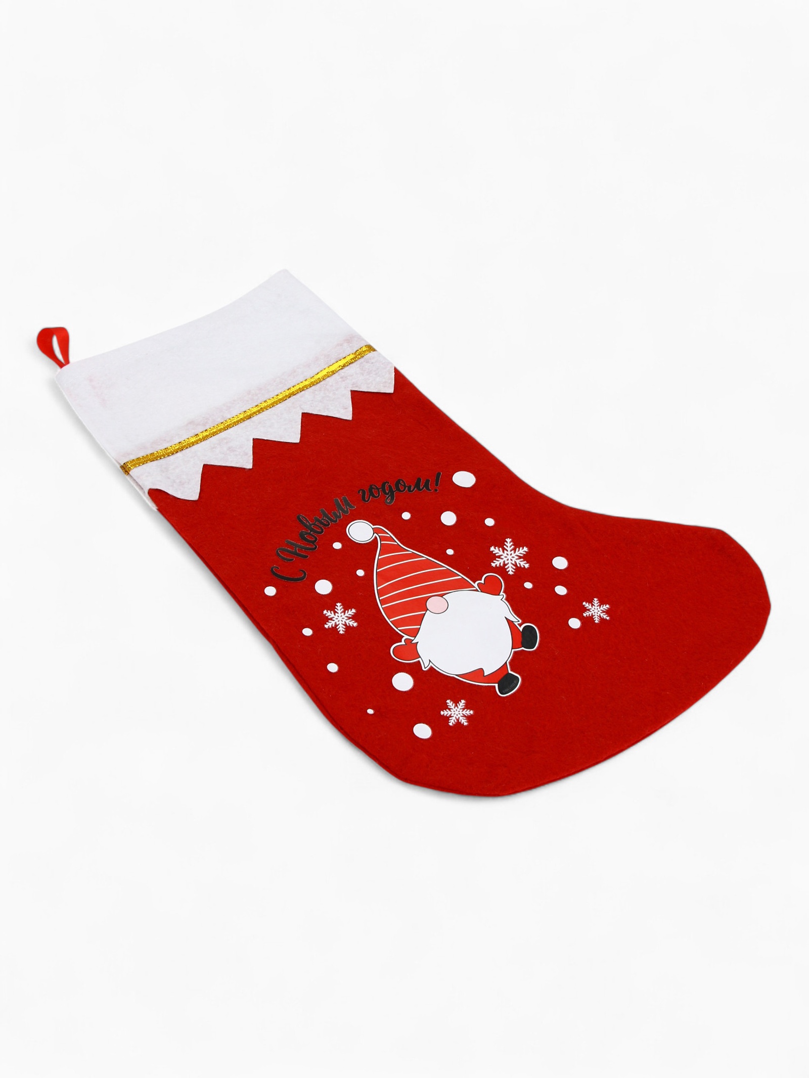 Носок для подарков «с новым годом!». Новогодний мешок - носок для подарков - неотъемлемый аксессуар вашего дома в новогодние праздники, который подарит вам сказочную атмосферу тепла и уюта. Новогодние носки выступят отличным дополнением для вашего новогоднего декора, а также их можно использовать в качестве новогоднего подарка для родных и близких. Цвет:Красный|Символ года:Нет|Тематика праздника:Новый год|Материал:Текстиль|Стиль:Фьюжн|Стиль:Новогоднее барокко|Страна:Китай  развернуть описание ▼