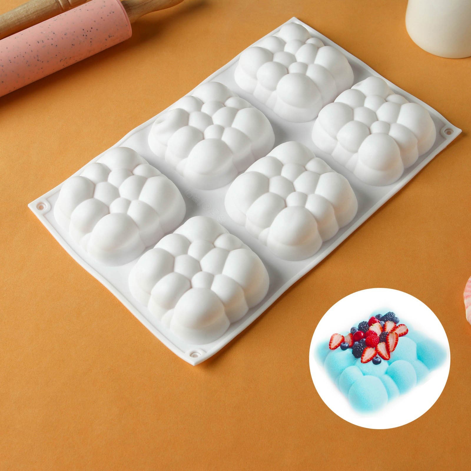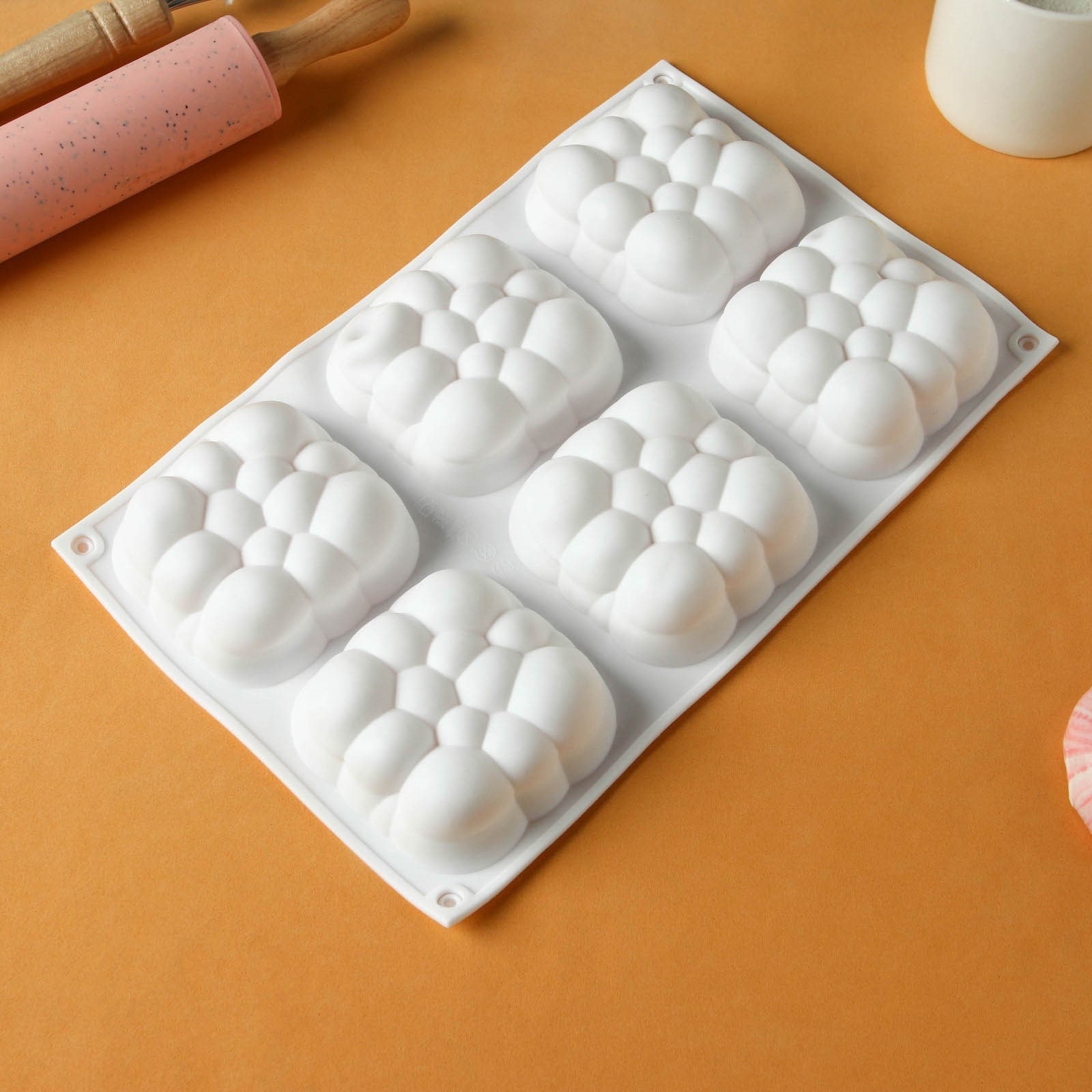 Форма для выпечки и муссовых десертов Konfinetta «облачко», силикон, 30x18,8x3,5 см, 6 ячеек (7,4x7,4 см), цвет белый