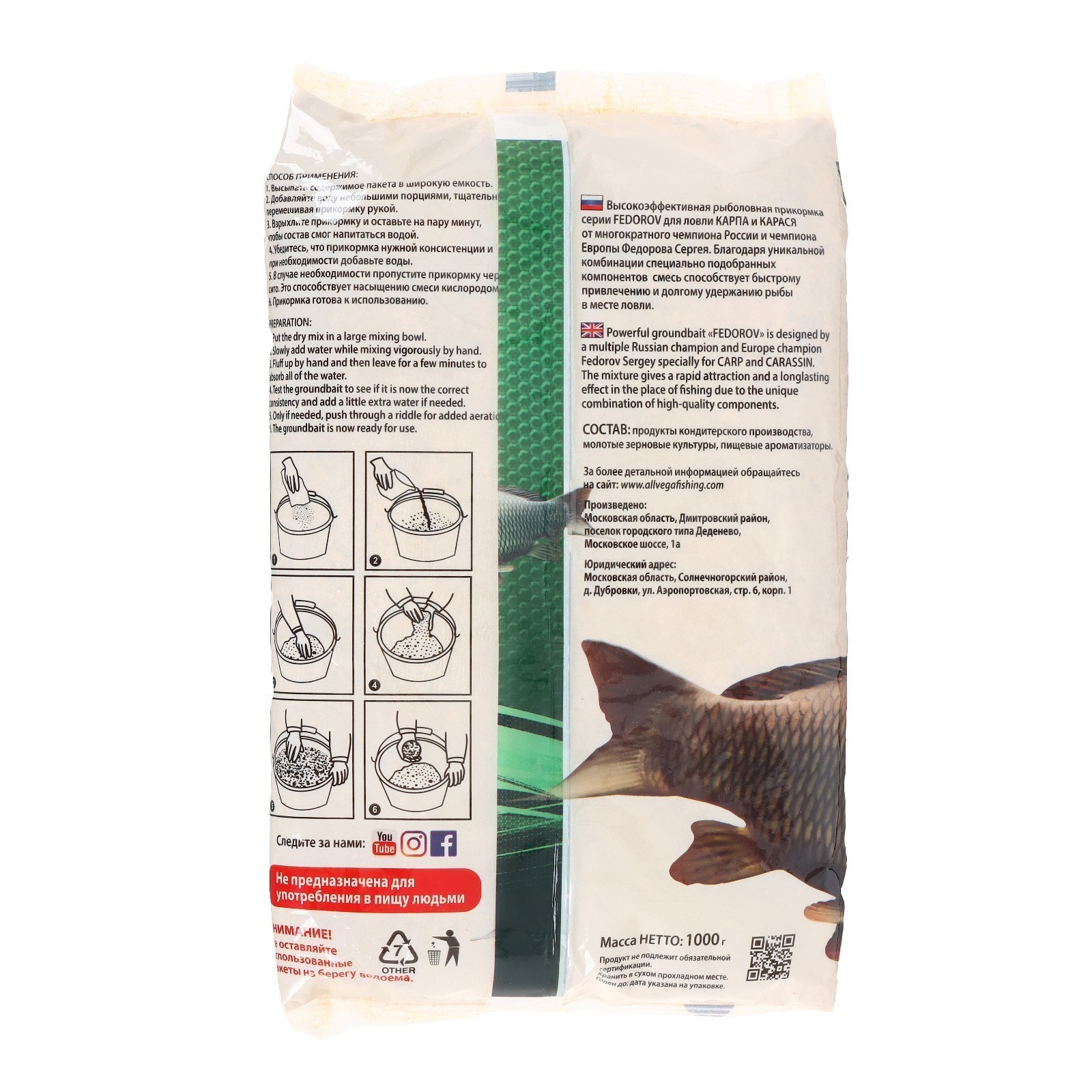 Прикормка allvega fedorov record, карп фидер, 1 кг. Прикормка состоящая из фракций крупного и среднего помола, с добавлением большого количества конопли и других масленичных культур. Благодаря компонентам разной плотности и разной фракции имеет большой радиус действия. Попадая в воду, даже в небольшом количестве, часть прикормки быстро распространяется в воде привлекая рыбу с расстояния, а часть остается на дне удерживая карпа в месте ловли. Вес, г/Объём, мл: 1000 Вид: Сухая Вид рыбы: Карп Тип: Прикормка  развернуть описание ▼