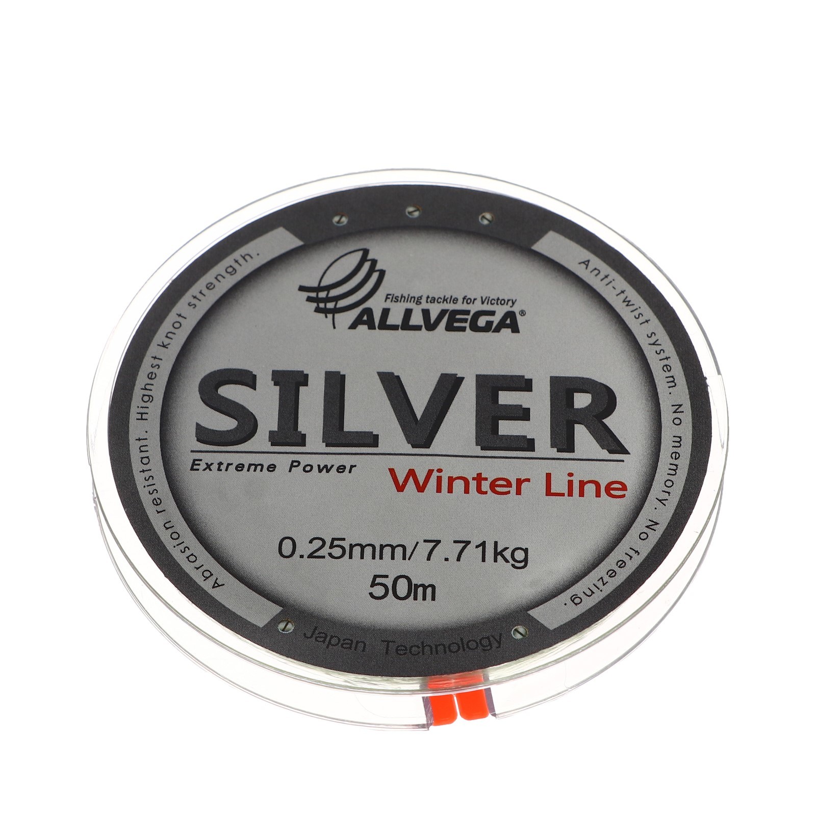 Леска монофильная allvega silver, диаметр 0.25 мм, тест 7.71 кг, 50 м, серебристая. Леска Silver имеющая светло-серебристый оттенок, специально разрабатывалась для охоты за обитателями пресноводных водоемов в холодное время года. Леска абсолютно прозрачна и незаметна в воде, имеет потрясающую устойчивостью к различным механическим повреждениям и деформации.