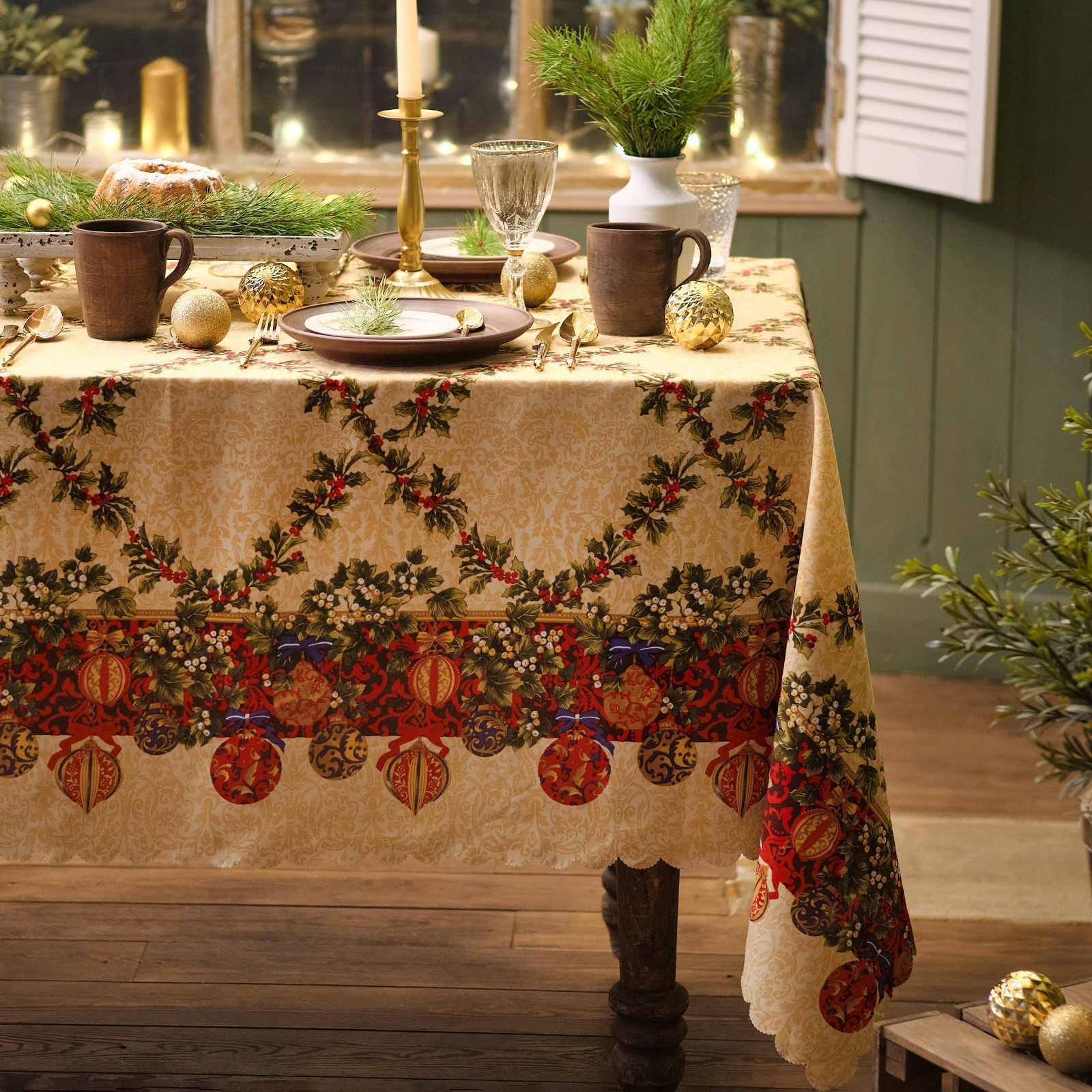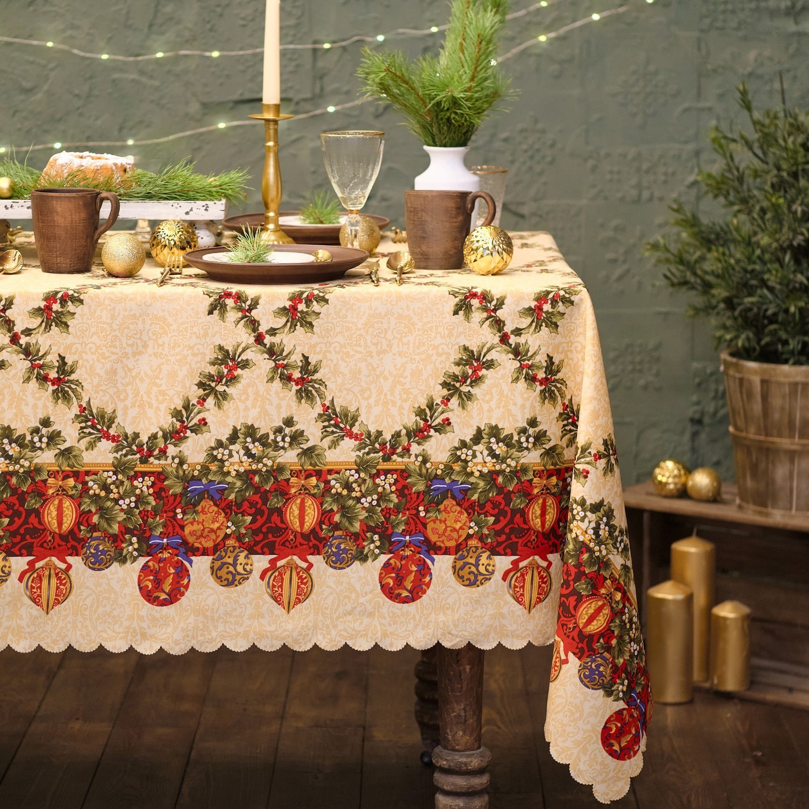 Скатерть новогодняя доляна "ёлочные игрушки" 145*260 см, 100% п/э.