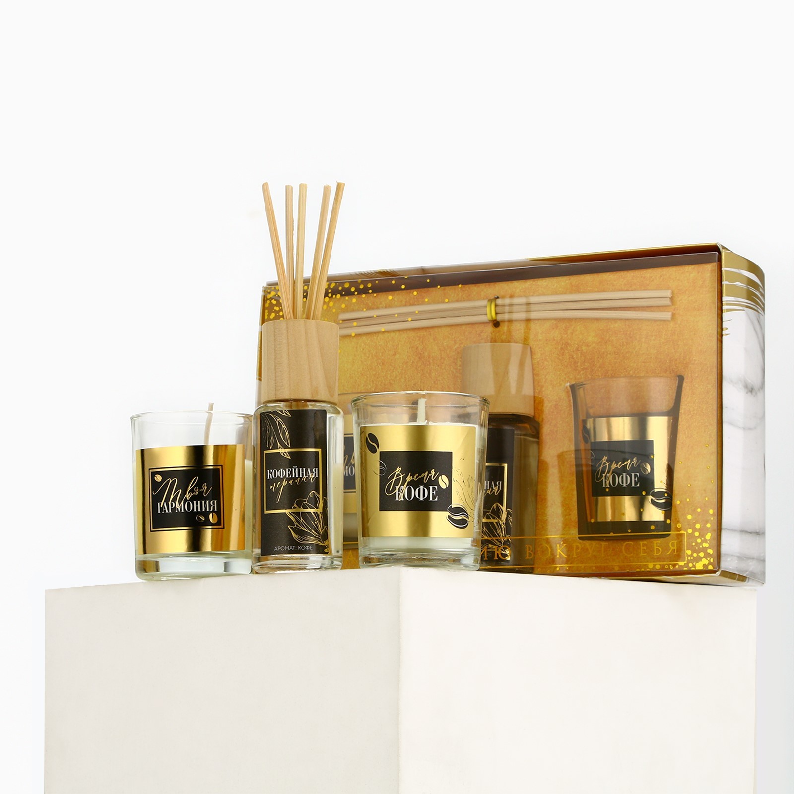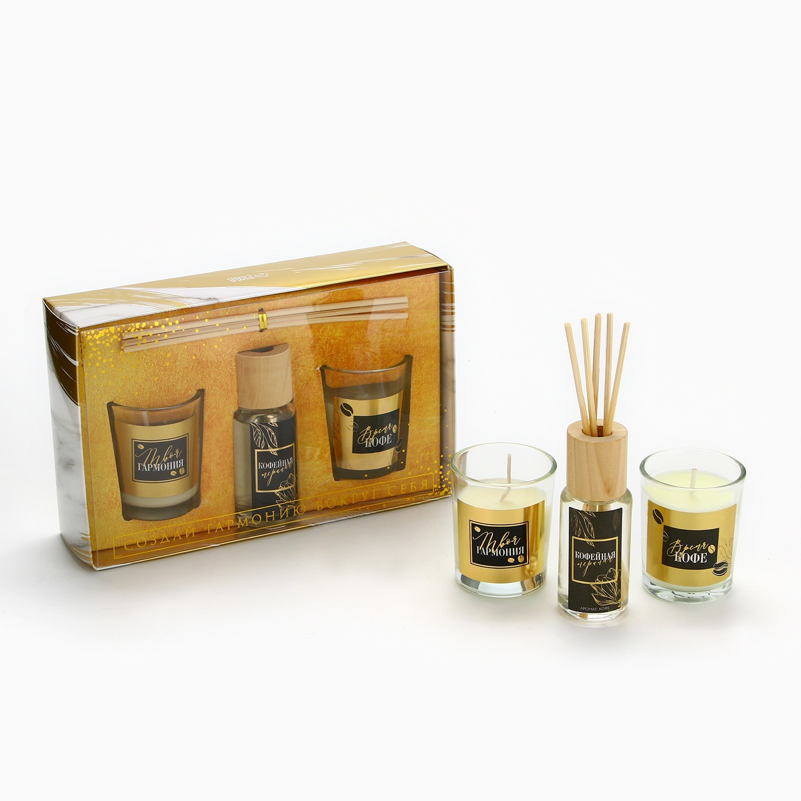 Диффузор ароматический и свечи интерьерные «время кофе», аромат кофе, 20 х 12,5 х 5 см.