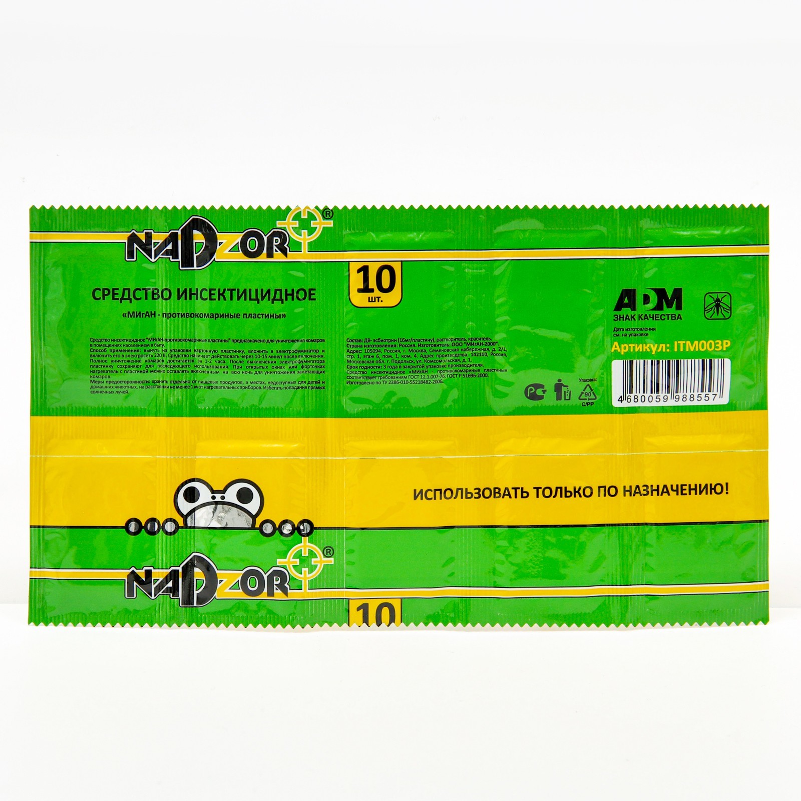 Пластины от комаров "Nadzor", без запаха, 10 шт