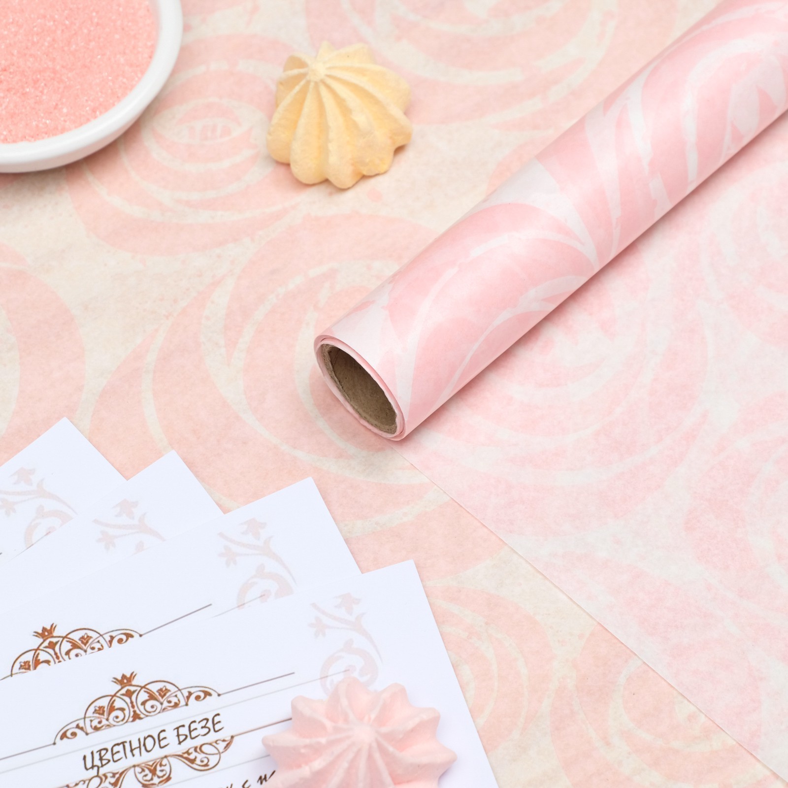 Бумага силиконизированная «розы пудровые», для выпечки, 0,38 х 5 м