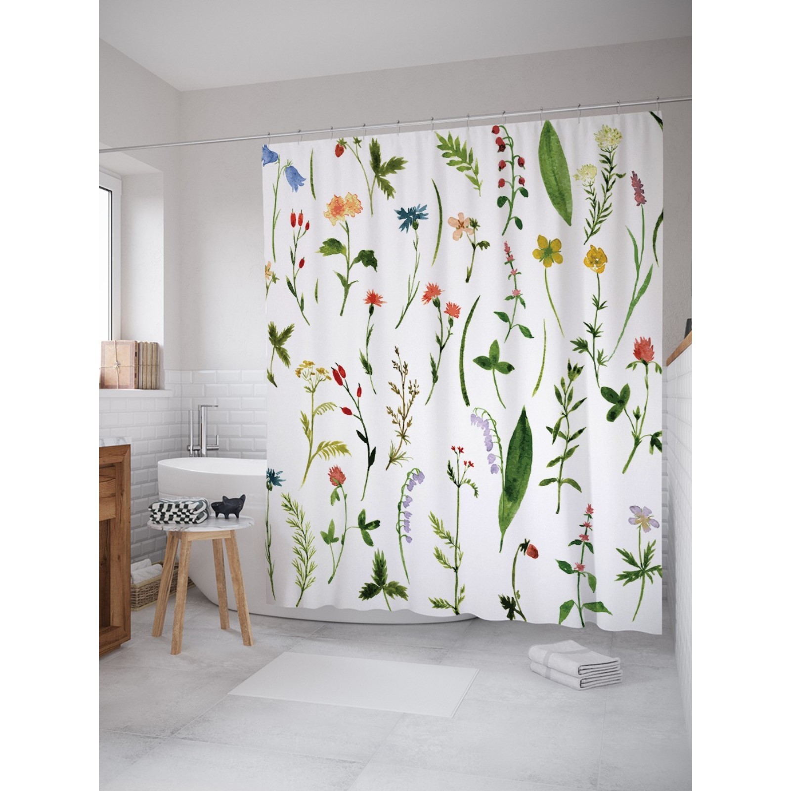 Фотоштора для ванной «редкие цветы», сатен, размер 180х200 см