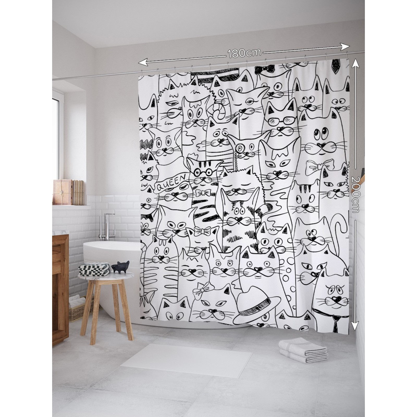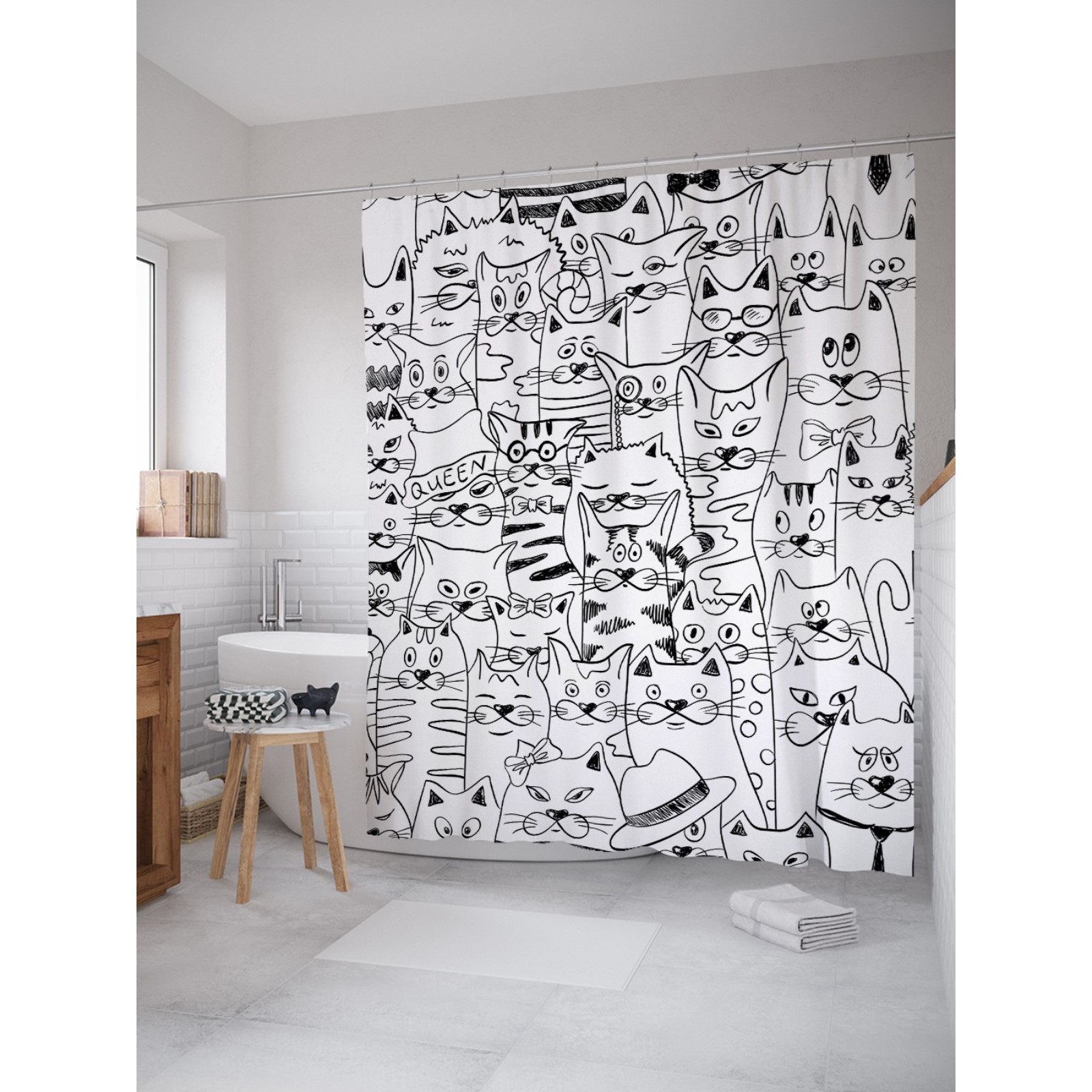 Фотоштора для ванной «коллектив котов», сатен, размер 180х200 см