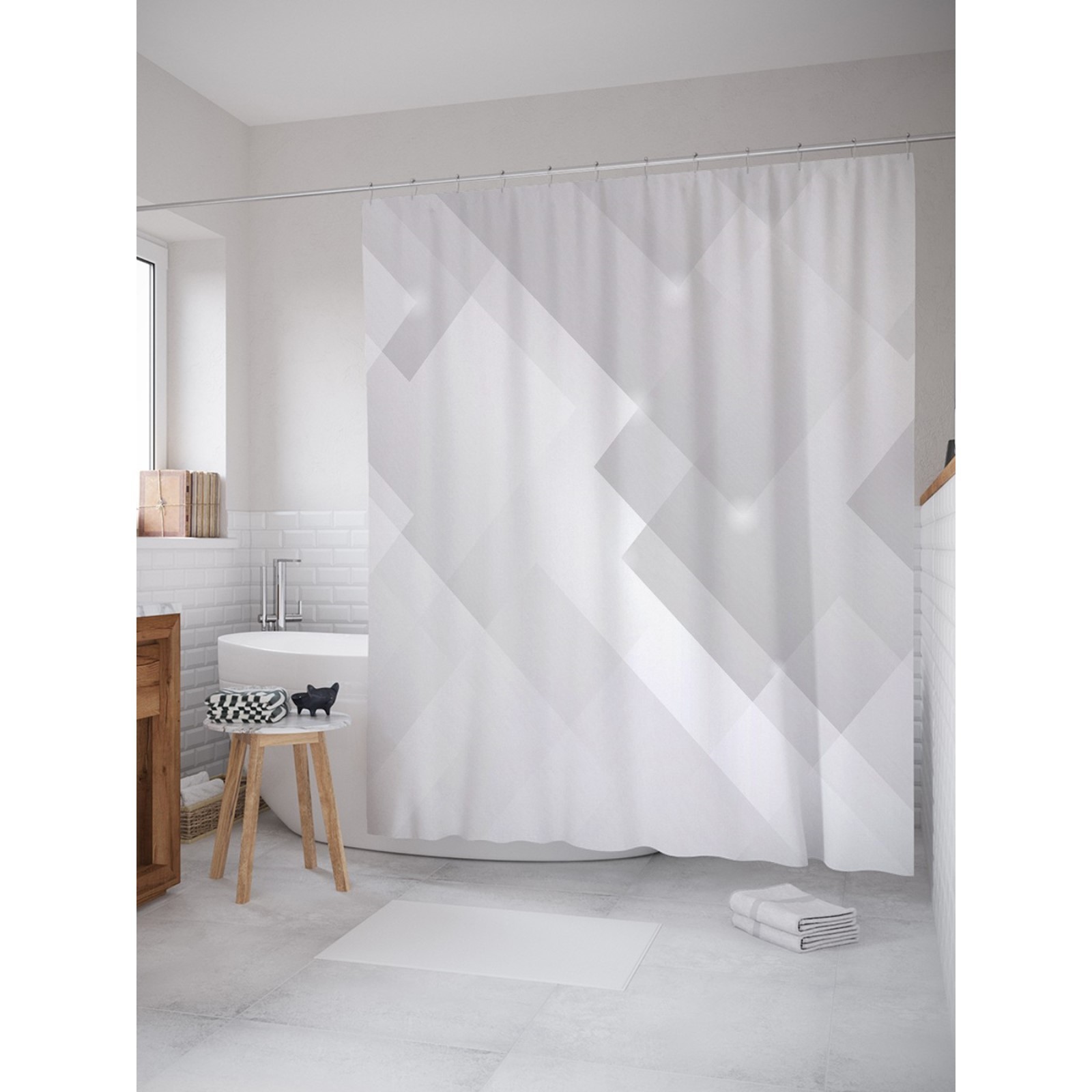 Фотоштора для ванной «серые формы», сатен, размер 180х200 см