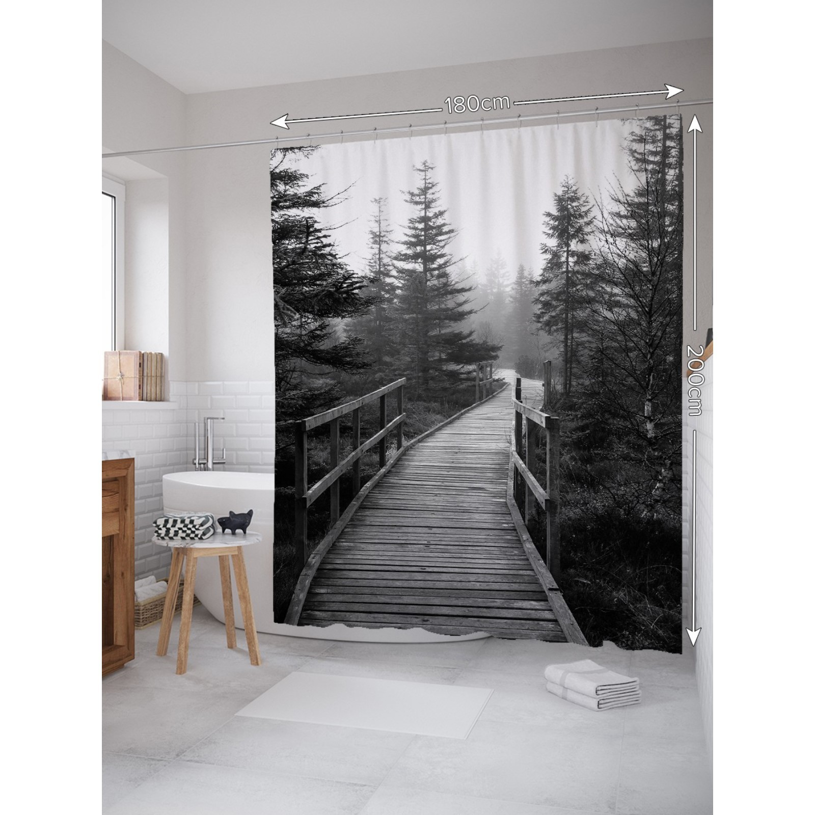 Фотоштора для ванной «еловый бор», сатен, размер 180х200 см