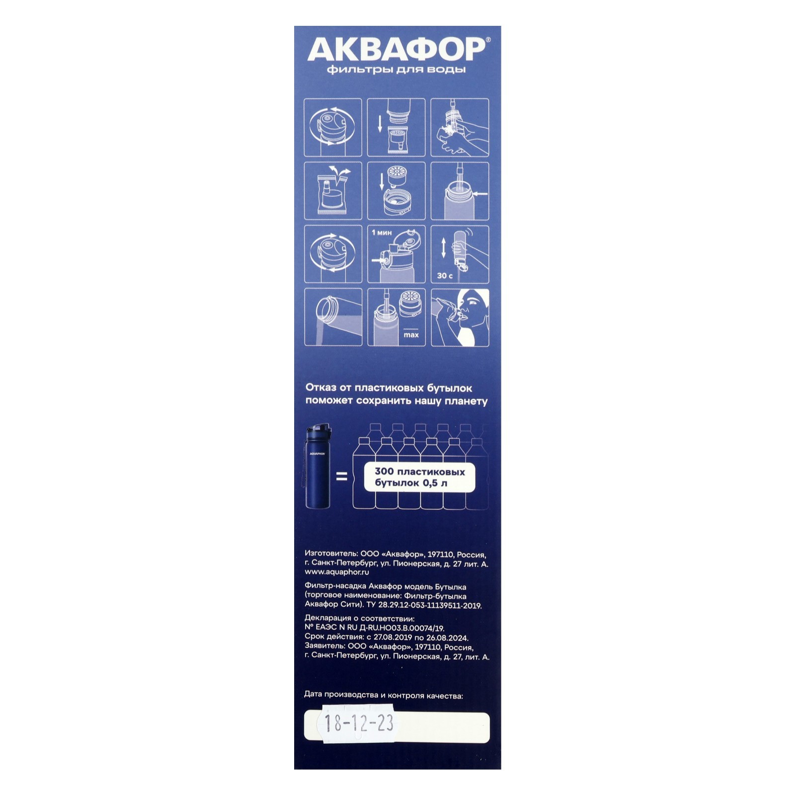 Фильтр-бутылка "аквафор", очистка от хлора, примесей, сменная насадка, синяя