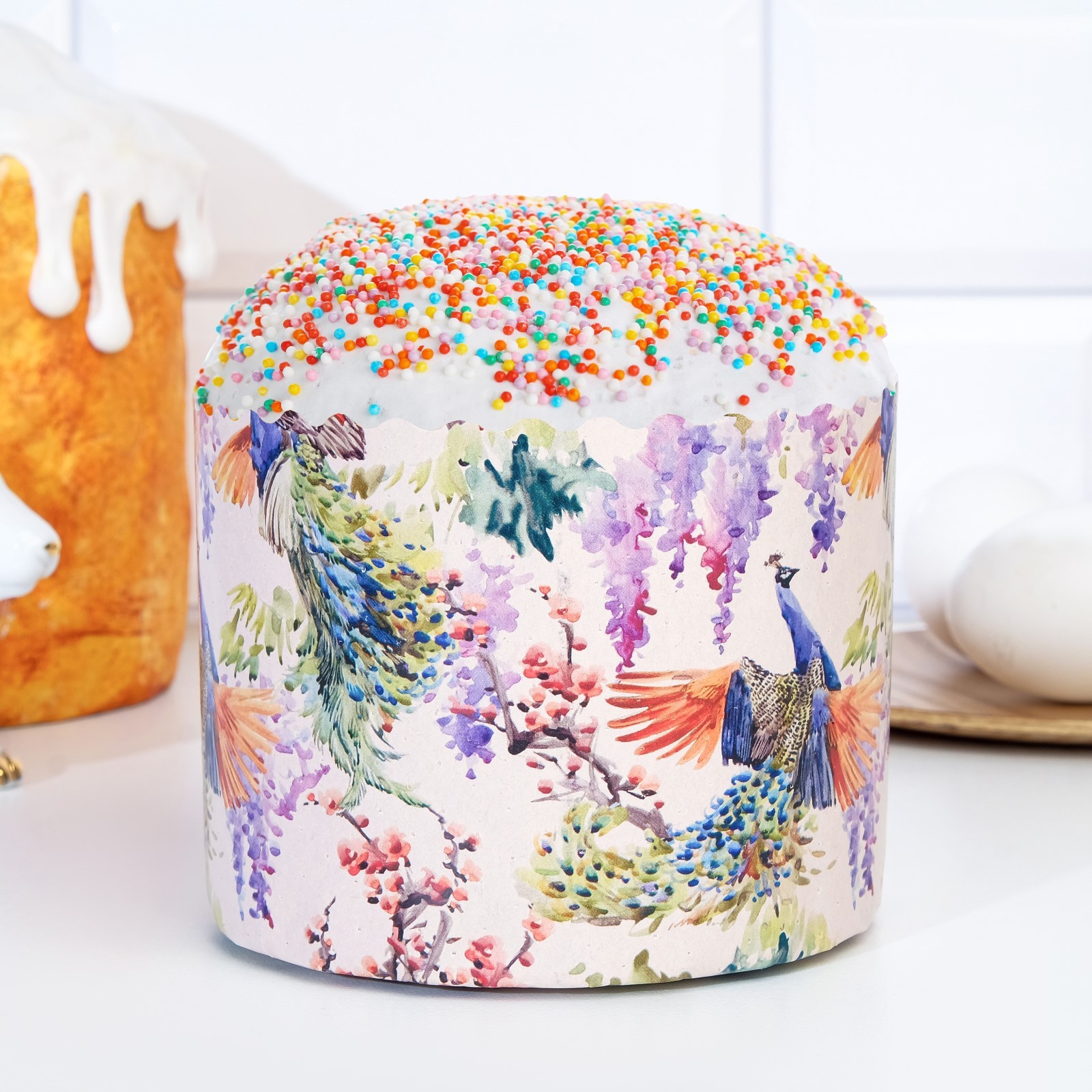 Форма бумажная для кулича "павлины" 110 х 85 мм. Цвет: Разноцветный Форма: Круглая parts count: 0 Фасовка, шт.: 20 tnved: 4823699000 Крышка: Нет Материал: Пищевая бумага Ячейки: Нет Тип формы: Для куличей Разъёмная форма: Нет Назначение: Для кулича, пасхи Температурное ограничение: Нет Можно мыть в посудомоечной машине: Нет Форма: Круг, шар, цилиндр  развернуть описание ▼