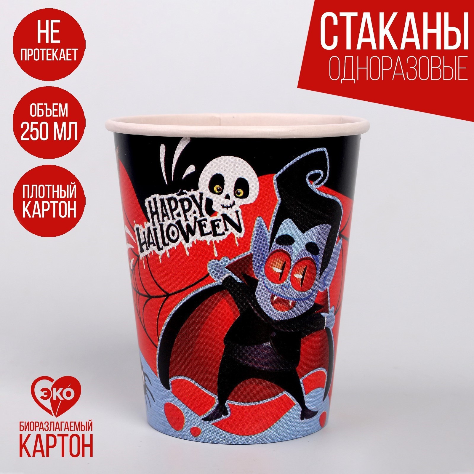 Стакан одноразовый бумажный «вампир», 250 мл, набор 6 шт.