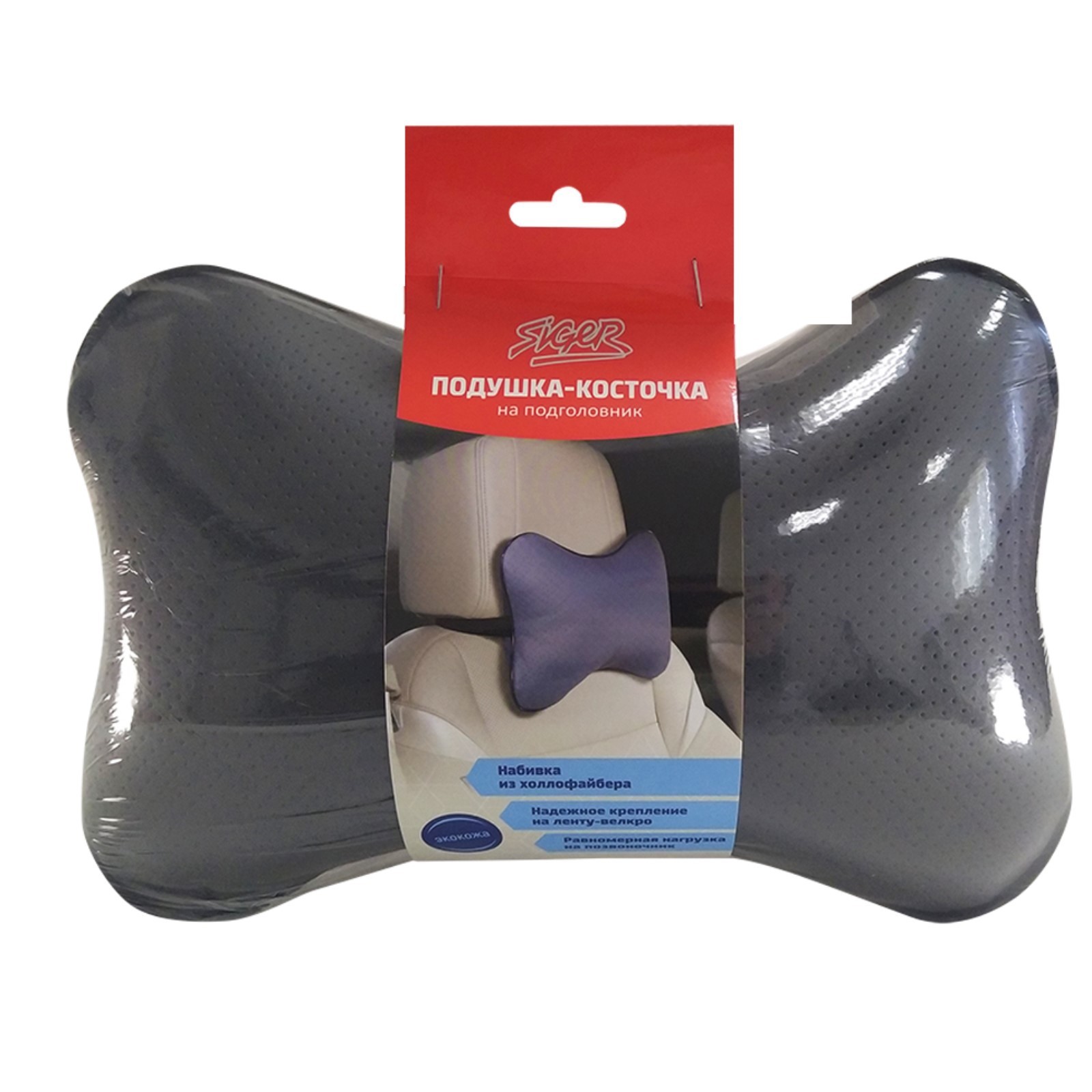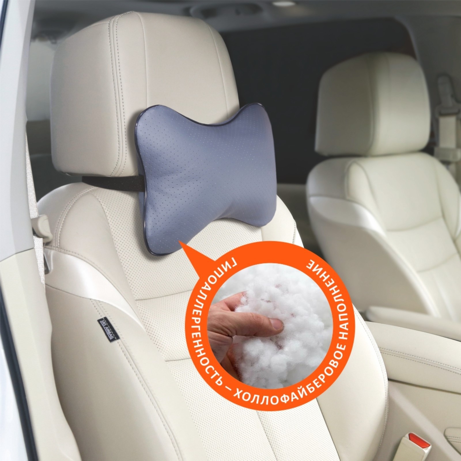 Подушка Siger «автомобильная косточка», на подголовник автомобиля, перфорированная экокожа, серый
