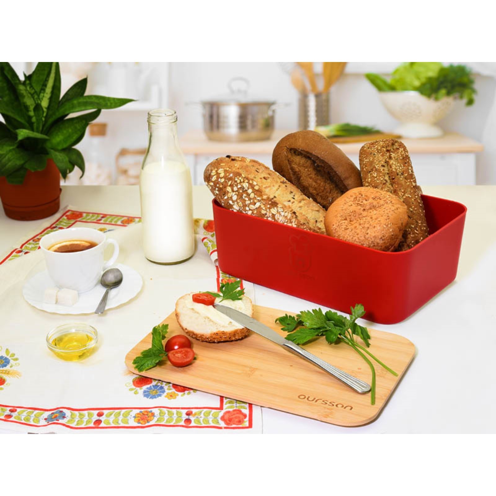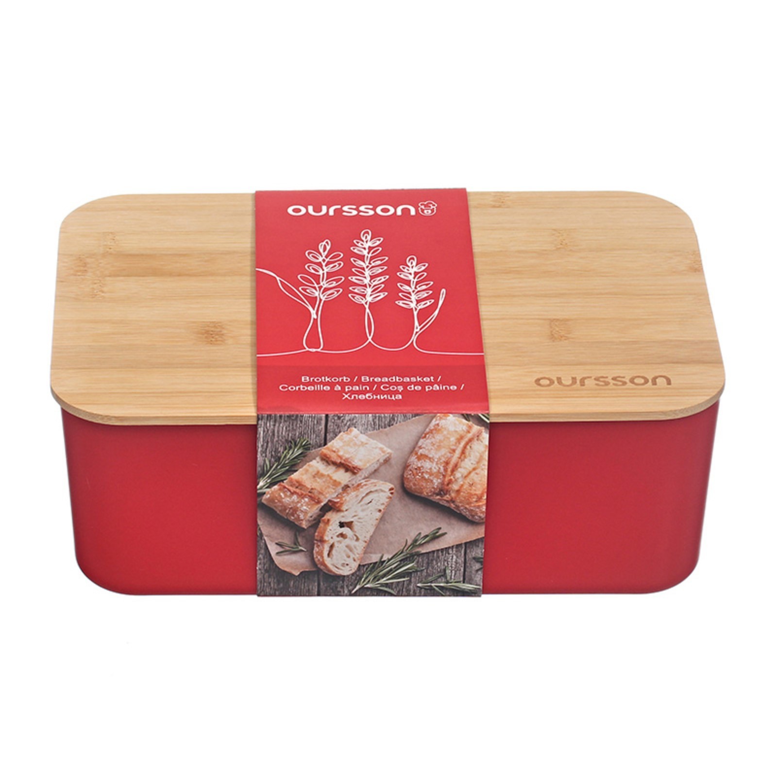 Хлебница Oursson, 29.6x19.6x11 см, с разделочной доской, красная