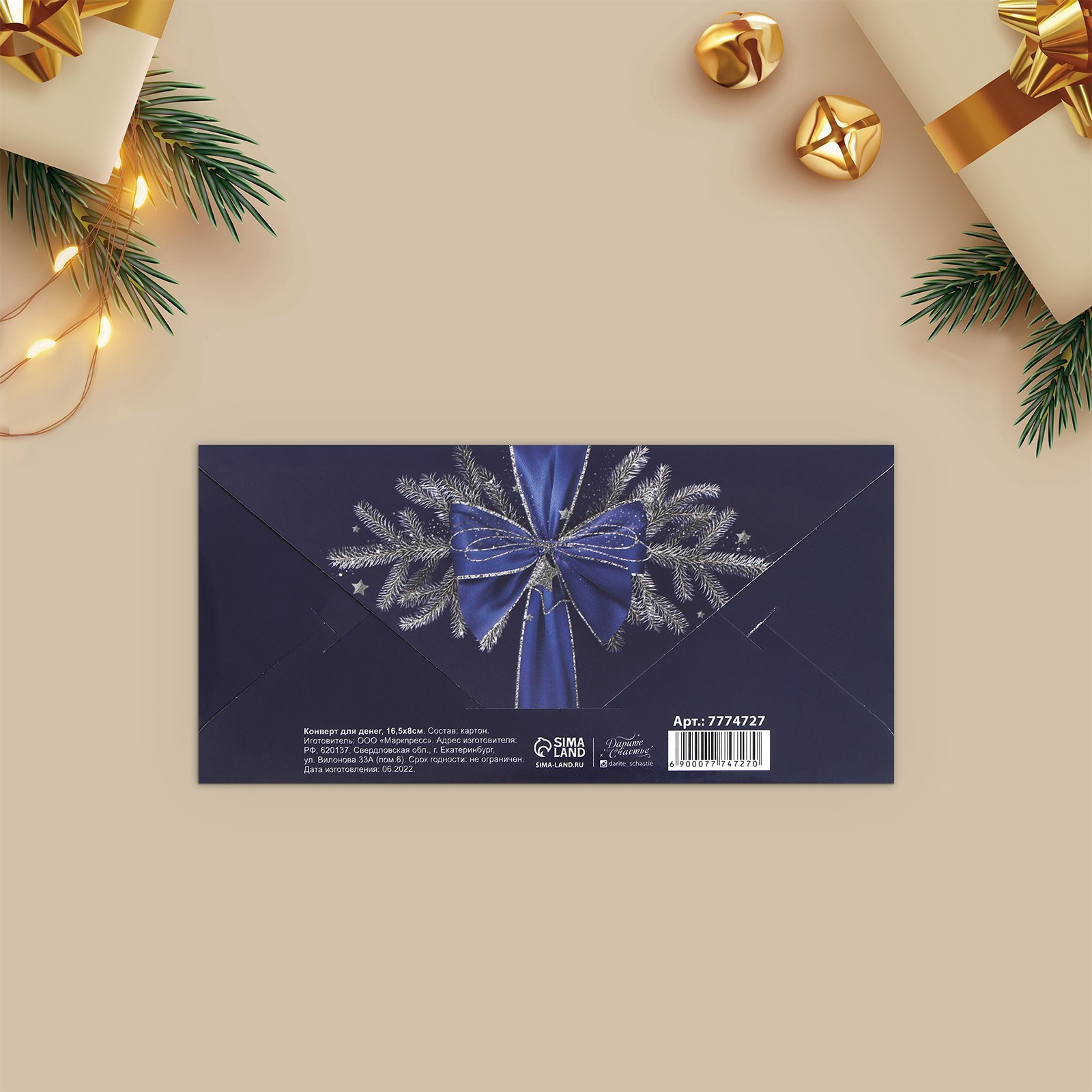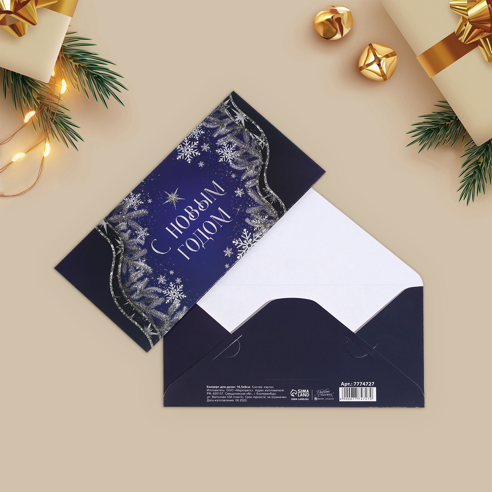 Конверт для денег «с новым годом», 16.5 х 8 см. Цвет:Синий|Для кого:Унисекс|Плотность, г/м :190|Размер, см:8 х 16.5|Отделка:Без отделки|Символ года:Нет|Тематика праздника:Новый год|Материал:Картон|Страна:Россия  развернуть описание ▼