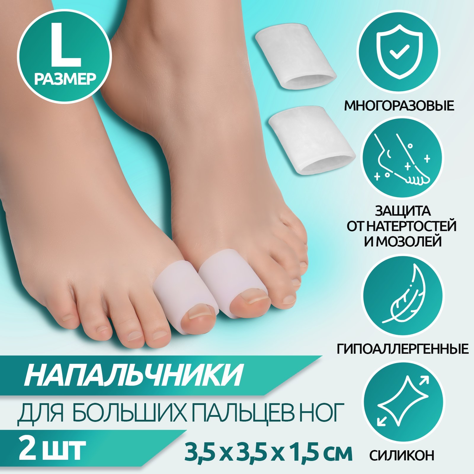 Напальчник для больших пальцев ног, силиконовый, 3,5 X 3,5 X 1,5 см, пара, цвет белый
