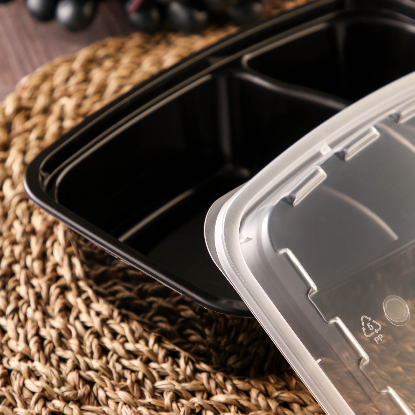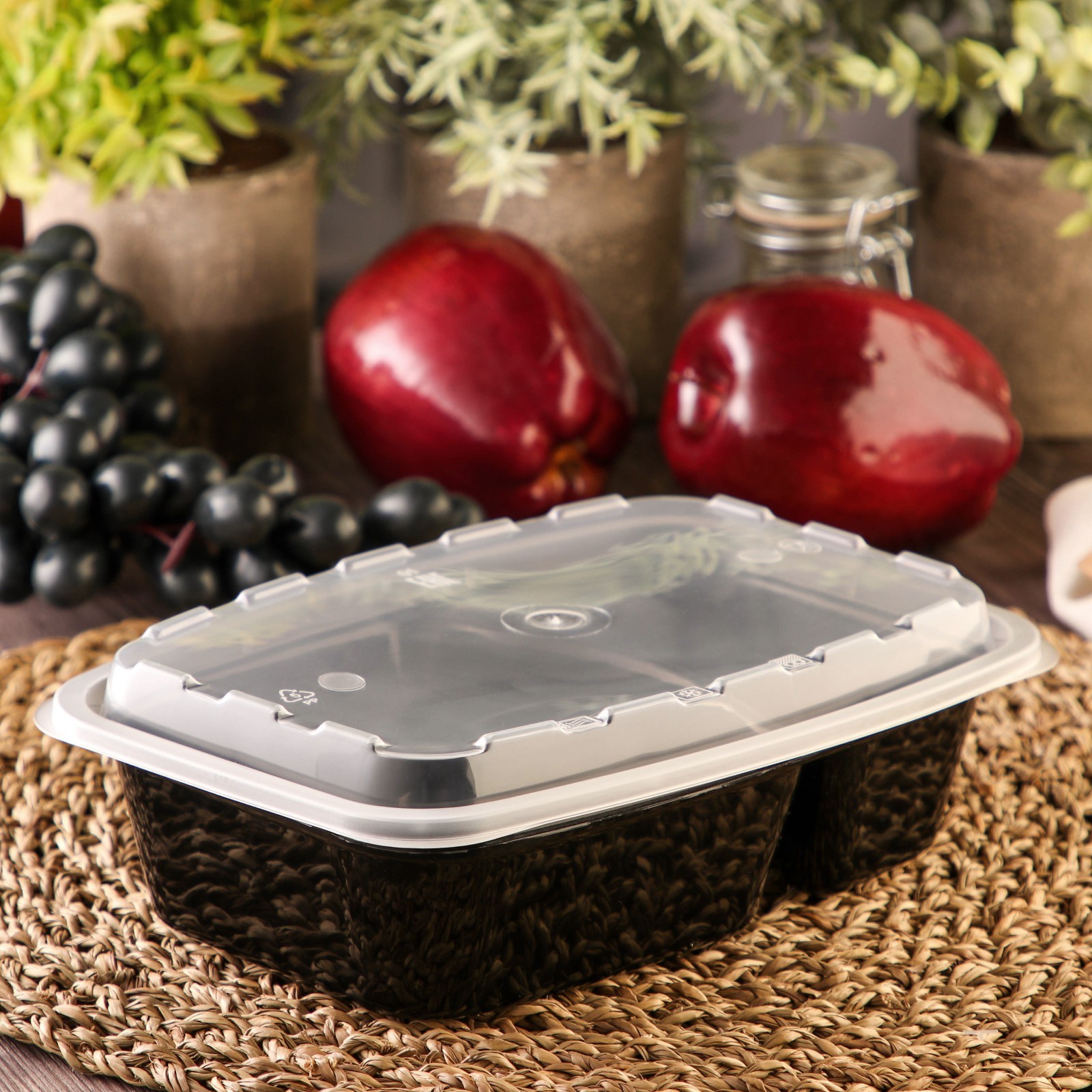 Контейнер пластиковый одноразовый с крышкой, 830 мл, 2-секционный