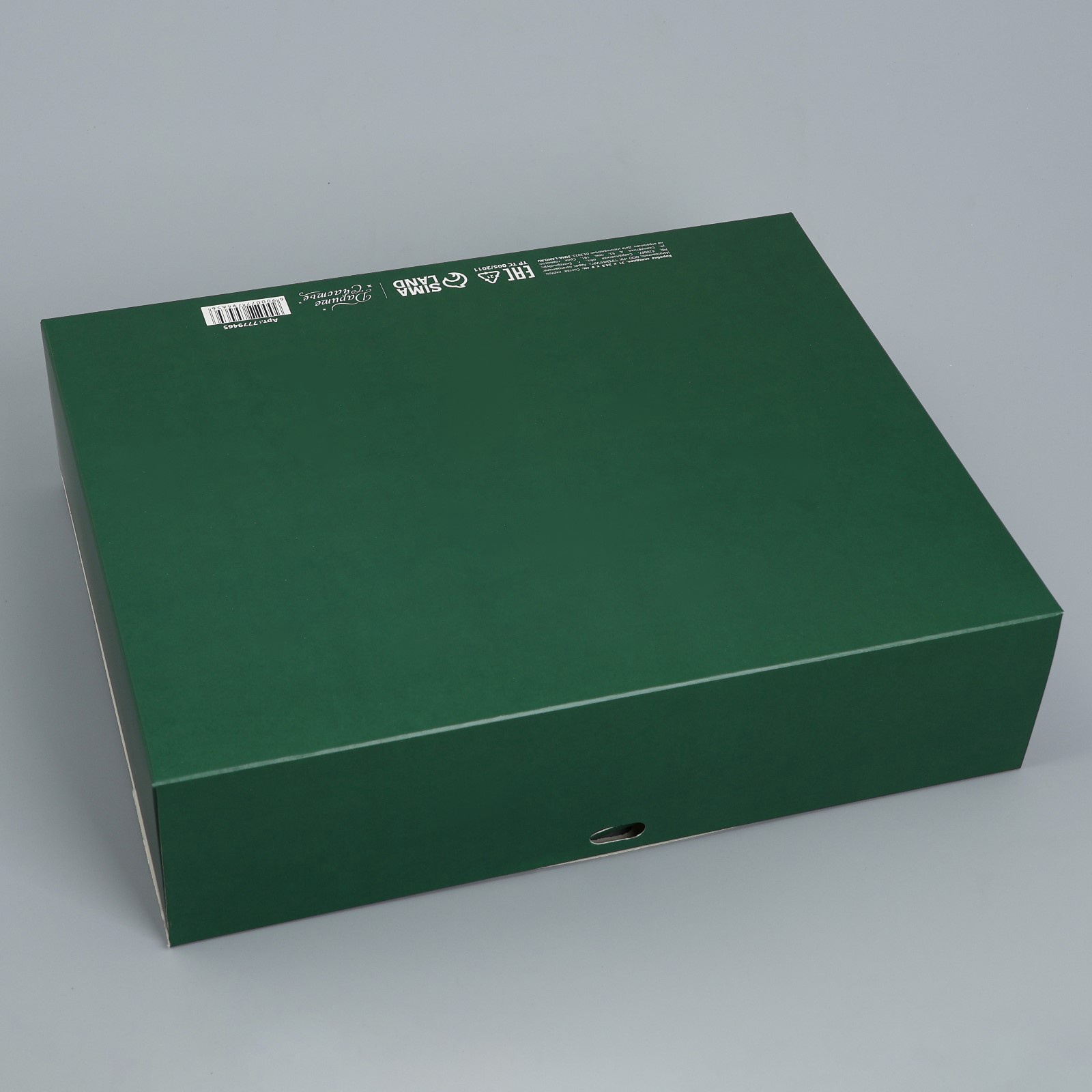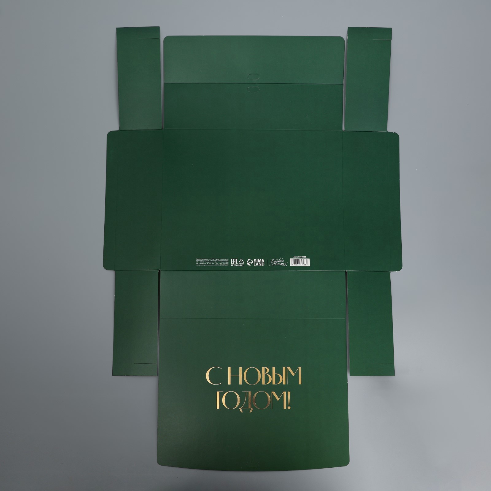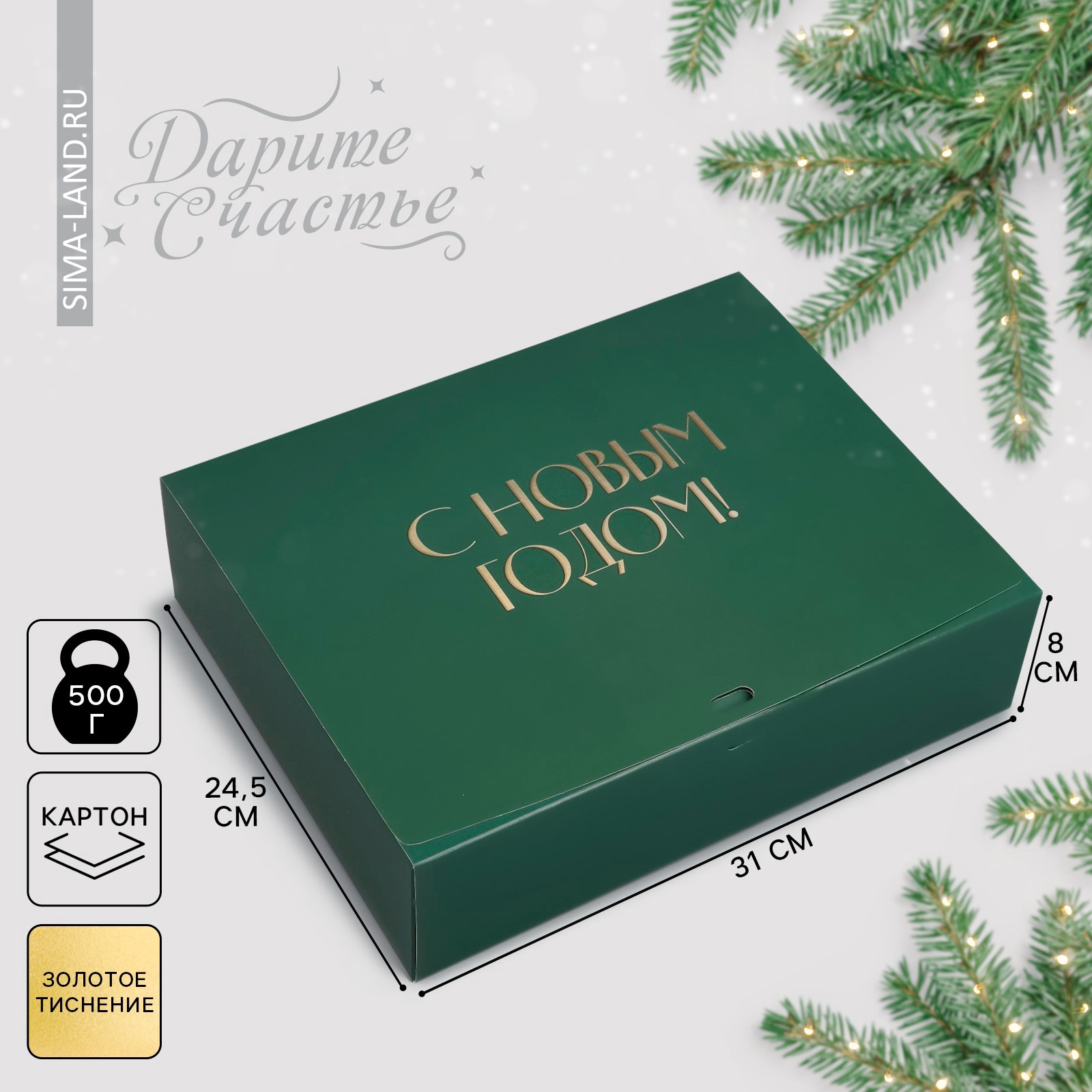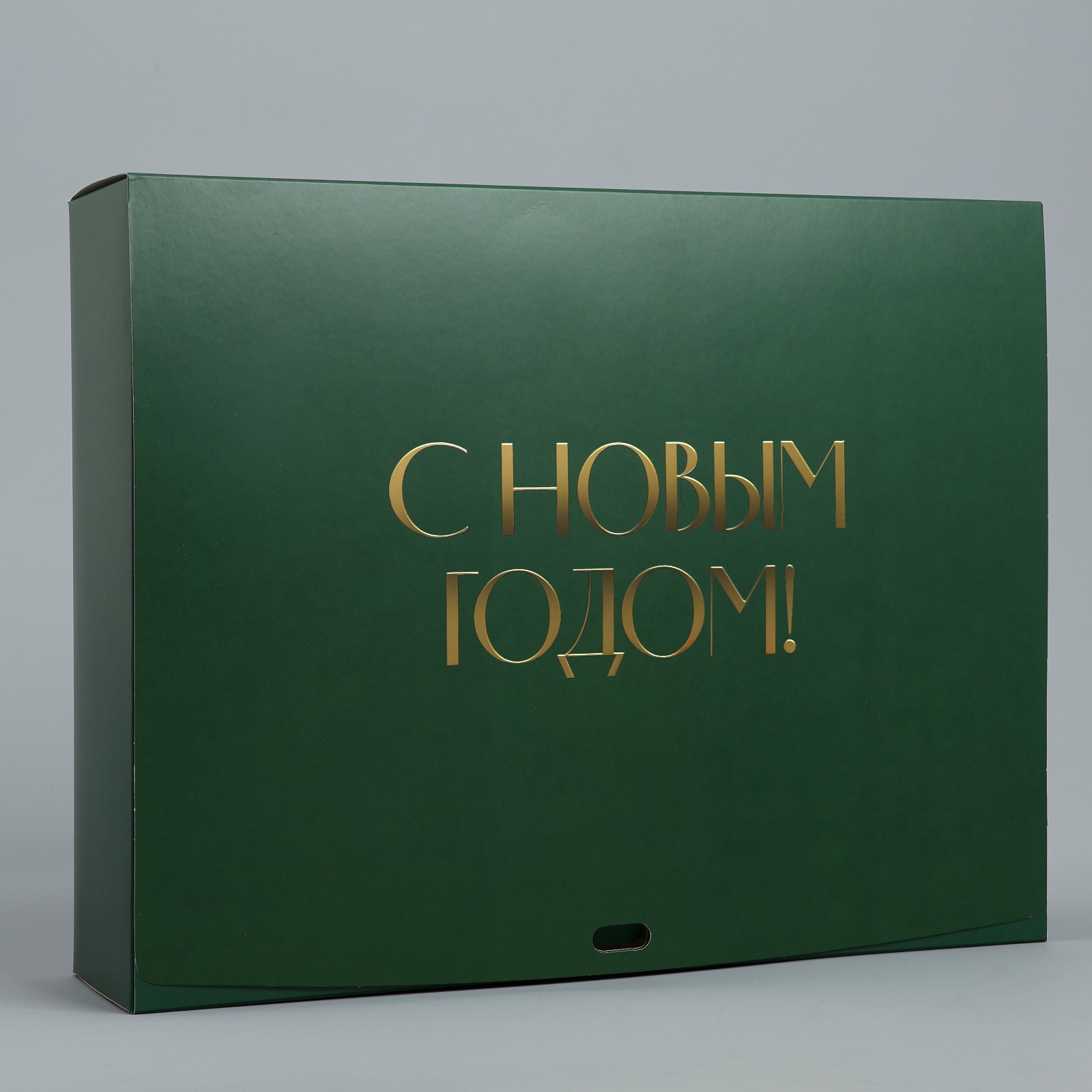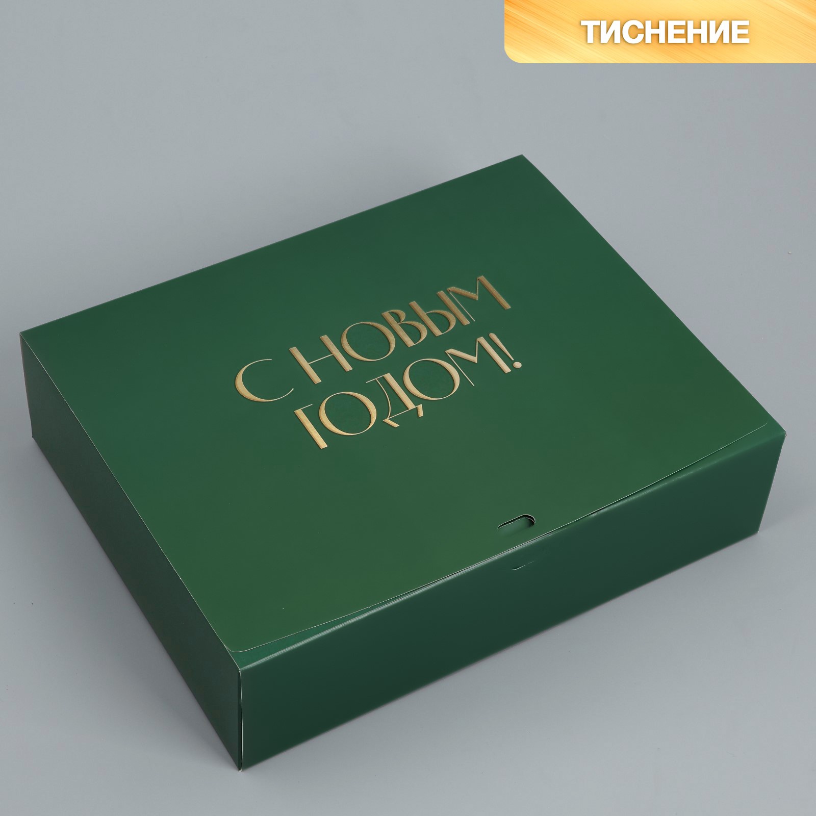 Коробка подарочная новогодняя складная «с новым годом», тиснение, зеленый, 31 х 24.5 х 8 см. Цвет:Золотистый|Цвет:Зелёный|Форма:Прямоугольная|Плотность, г/м :250|Длина, см:31|Ширина, см:24.5|Высота, см:9|Допустимый вес вложения, г:500|Тематика:Надписи, цифры, буквы|Символ года:Нет|Тематика праздника:Новый год|Материал:Картон|Вид:Складные коробки|Размер:Большой (25-45 см)|Окошко:Нет|Крышка-дно:Нет|Страна:Россия  развернуть описание ▼