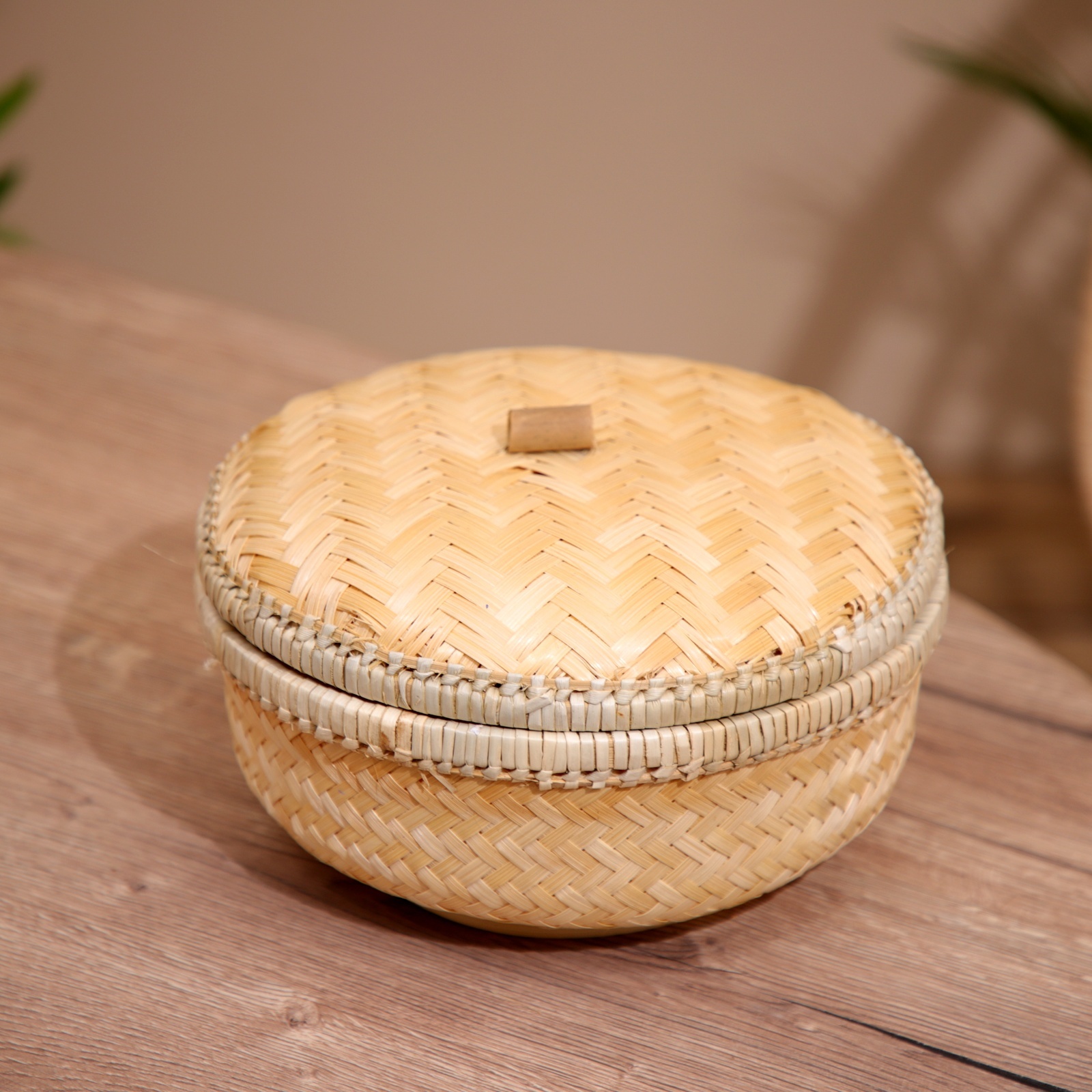 Корзинка плетёная с крышкой, из бамбука 23х23х15 см