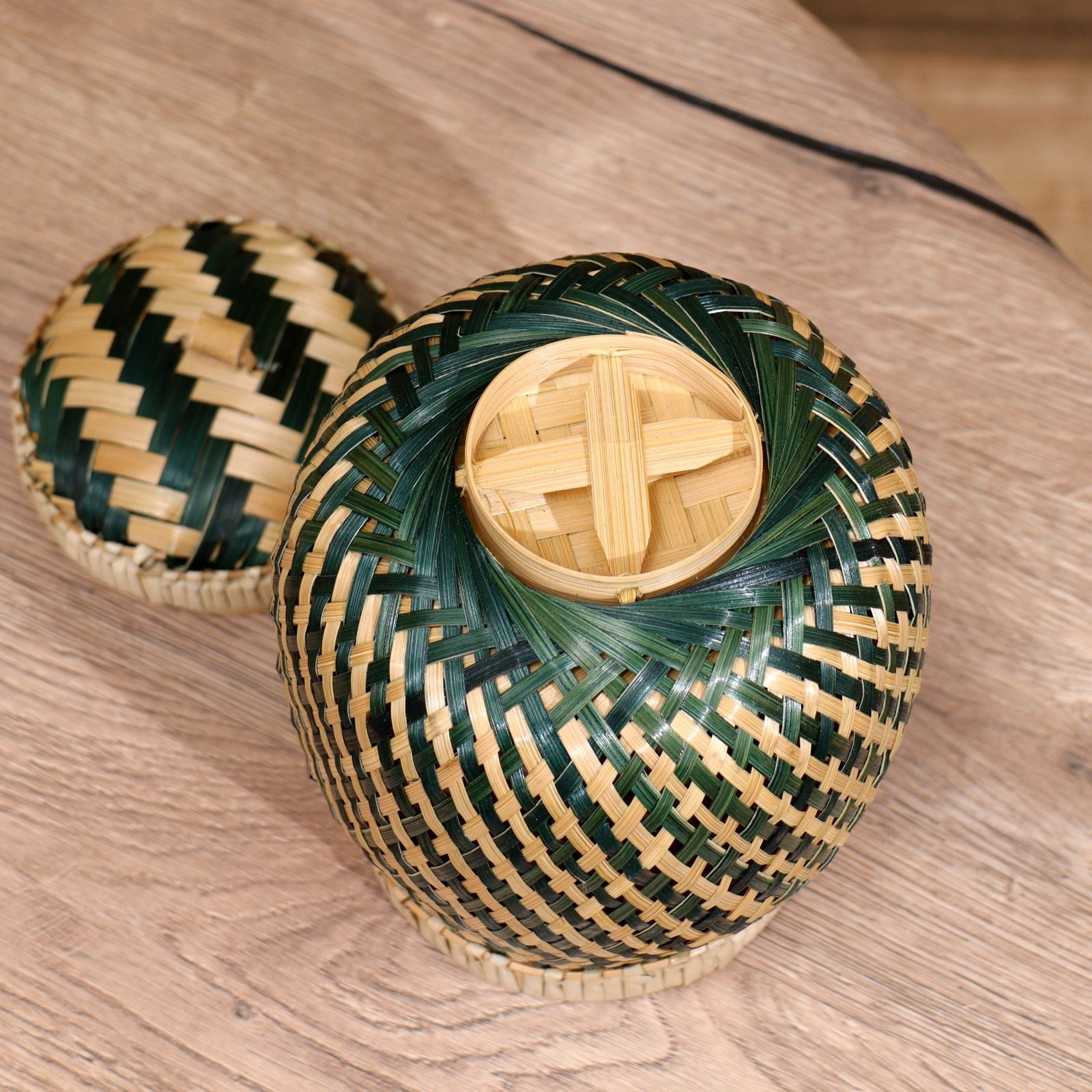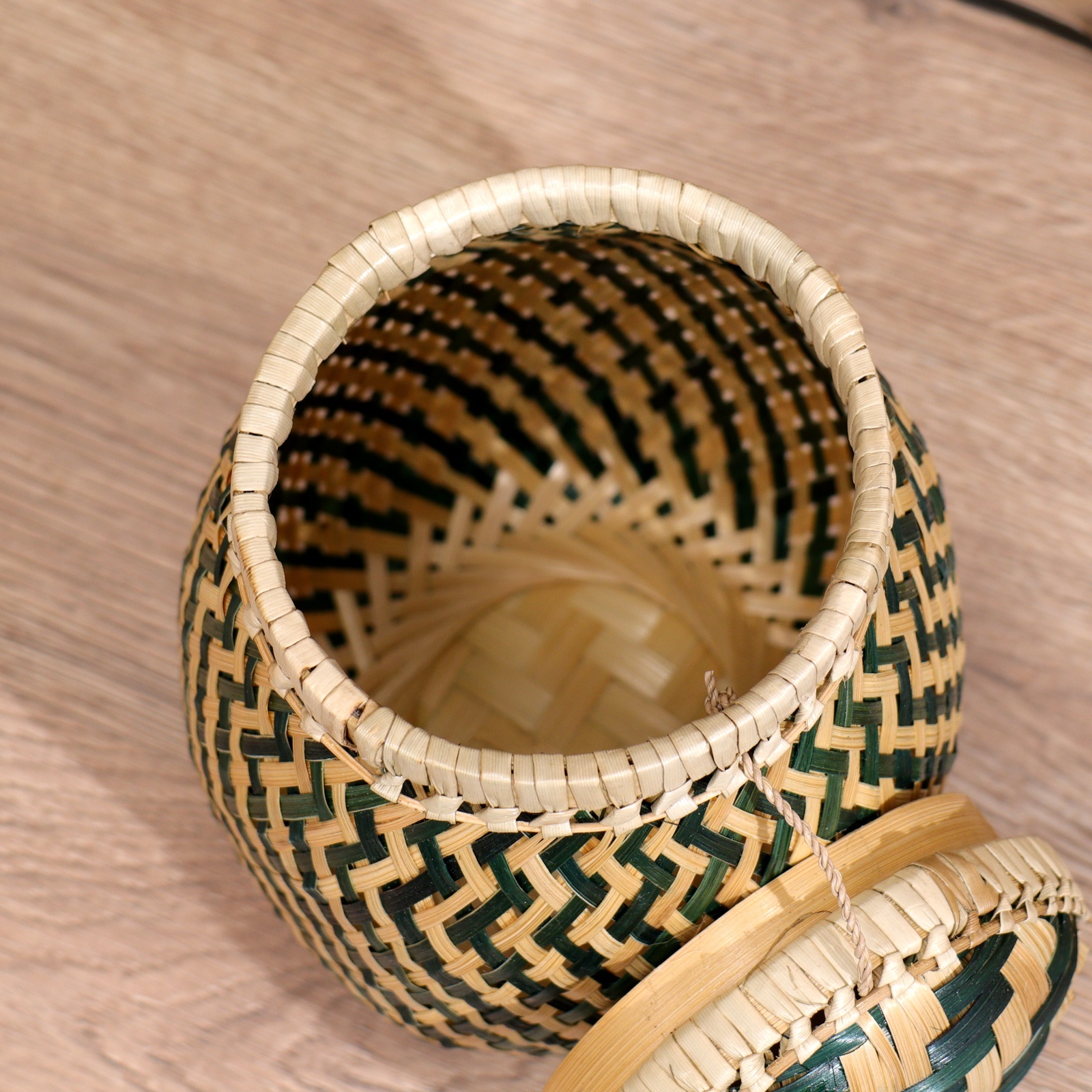 Корзинка с крышкой плетёная, из бамбука 15х15х17 см