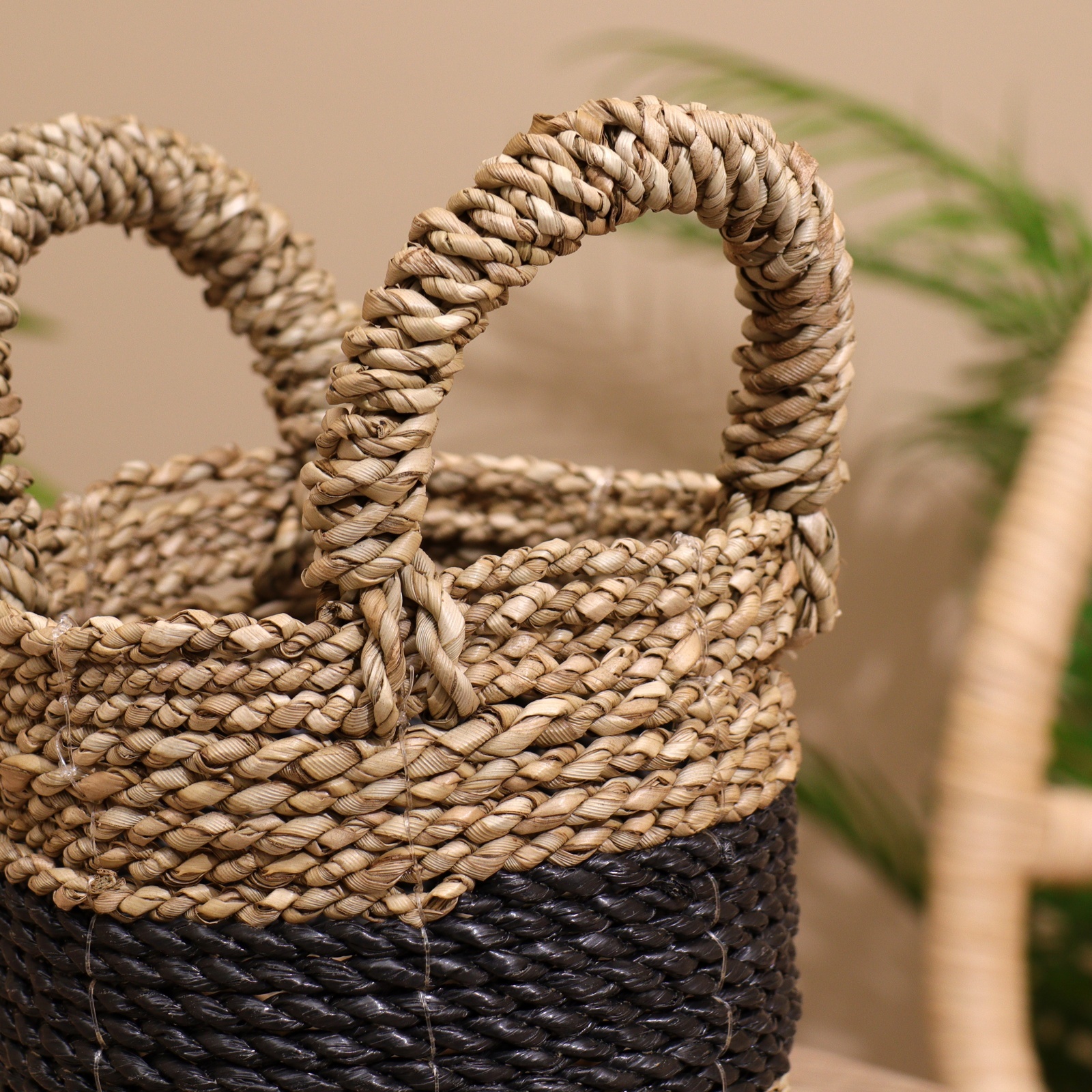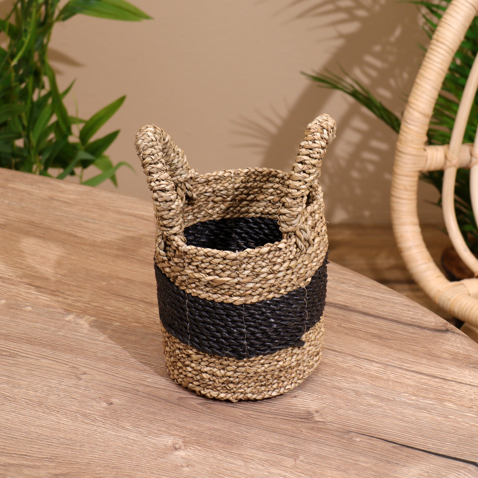 Корзинка плетёная 15х15х25 см. Цвет: Бежевый Цвет: Чёрный Форма: Цилиндрическая В наборе, шт.: 1 Материал: Водоросли Материал: Пластик Форма: Круг, шар, цилиндр  развернуть описание ▼