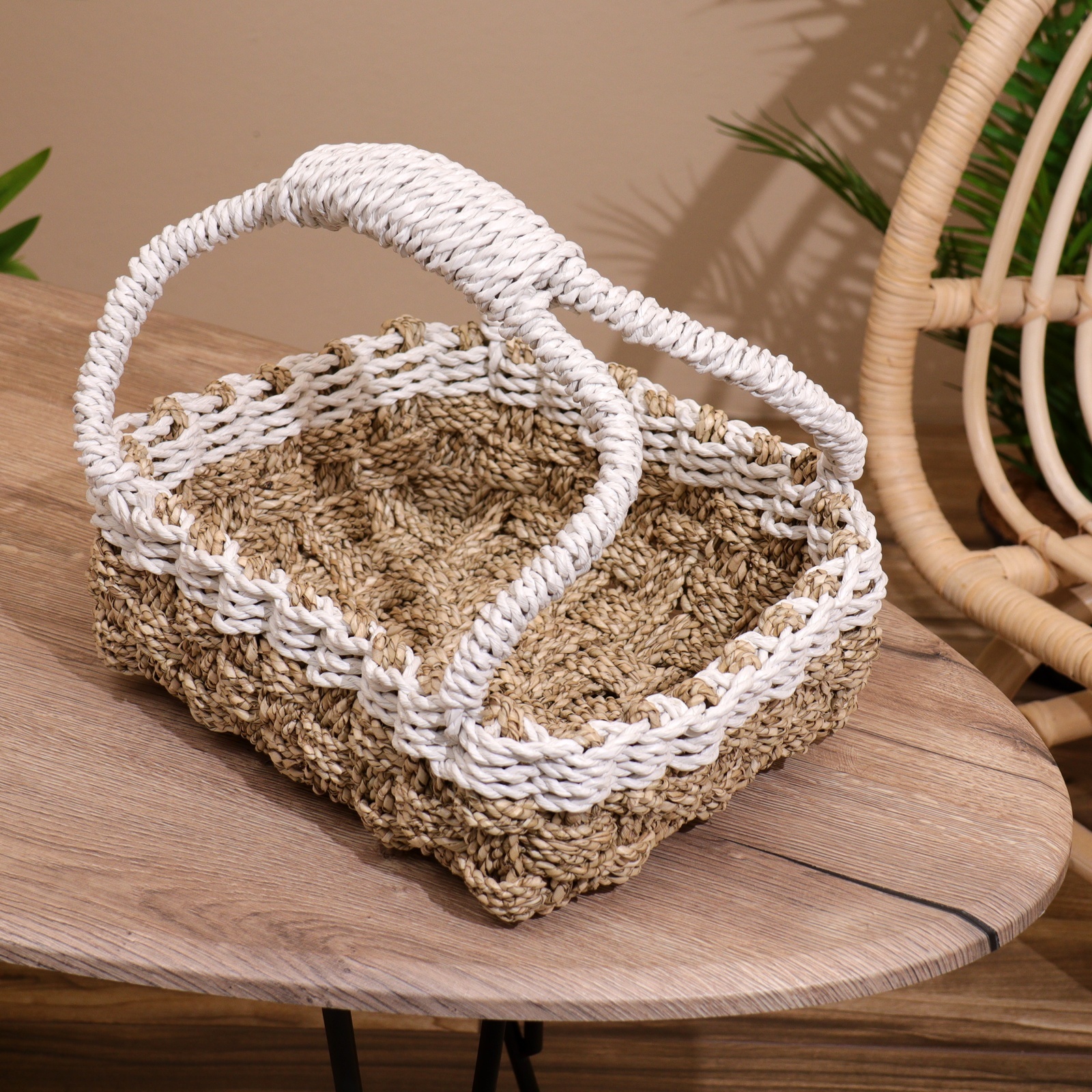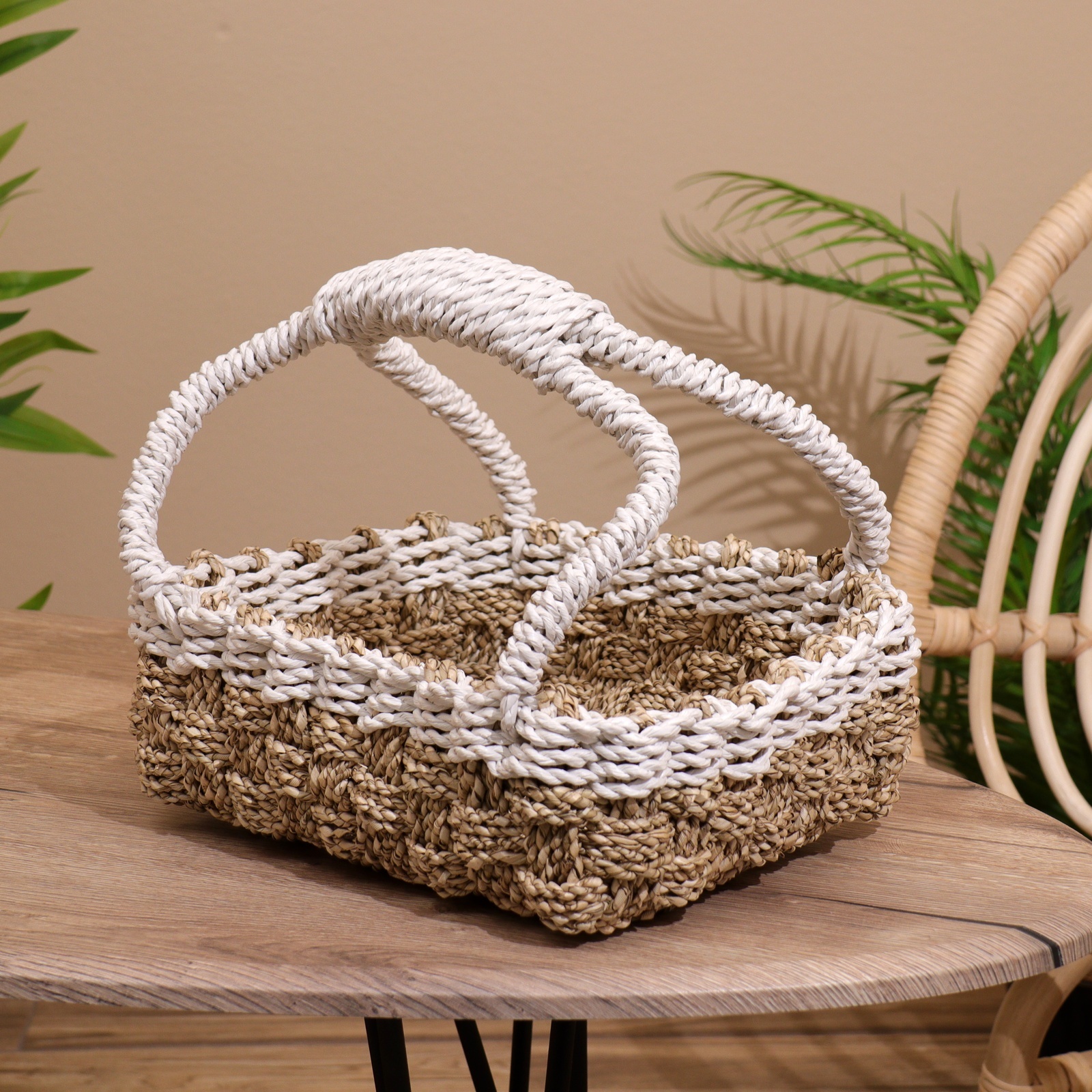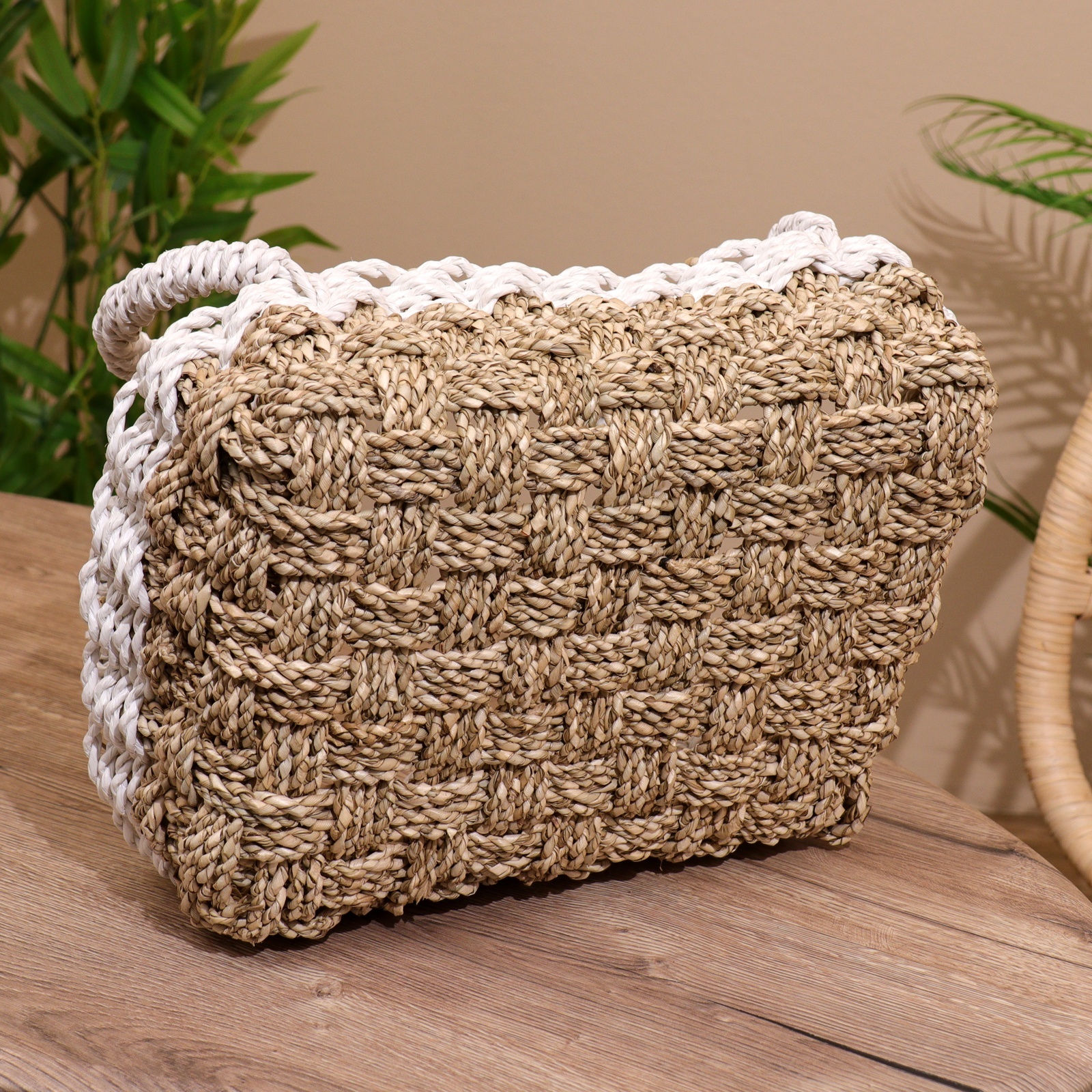 Корзина плетёная 35х25х30 см. Цвет: Белый Цвет: Бежевый Форма: Прямоугольная В наборе, шт.: 1 Материал: Пластик Материал: Водоросли Форма: Прямоугольник  развернуть описание ▼