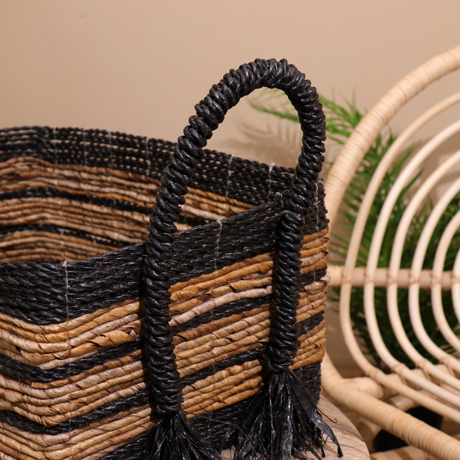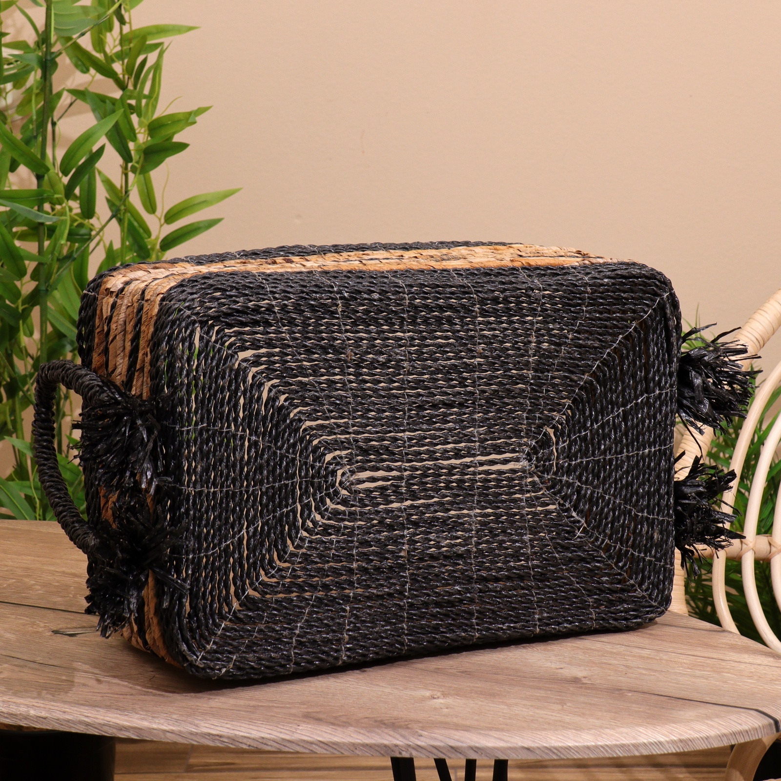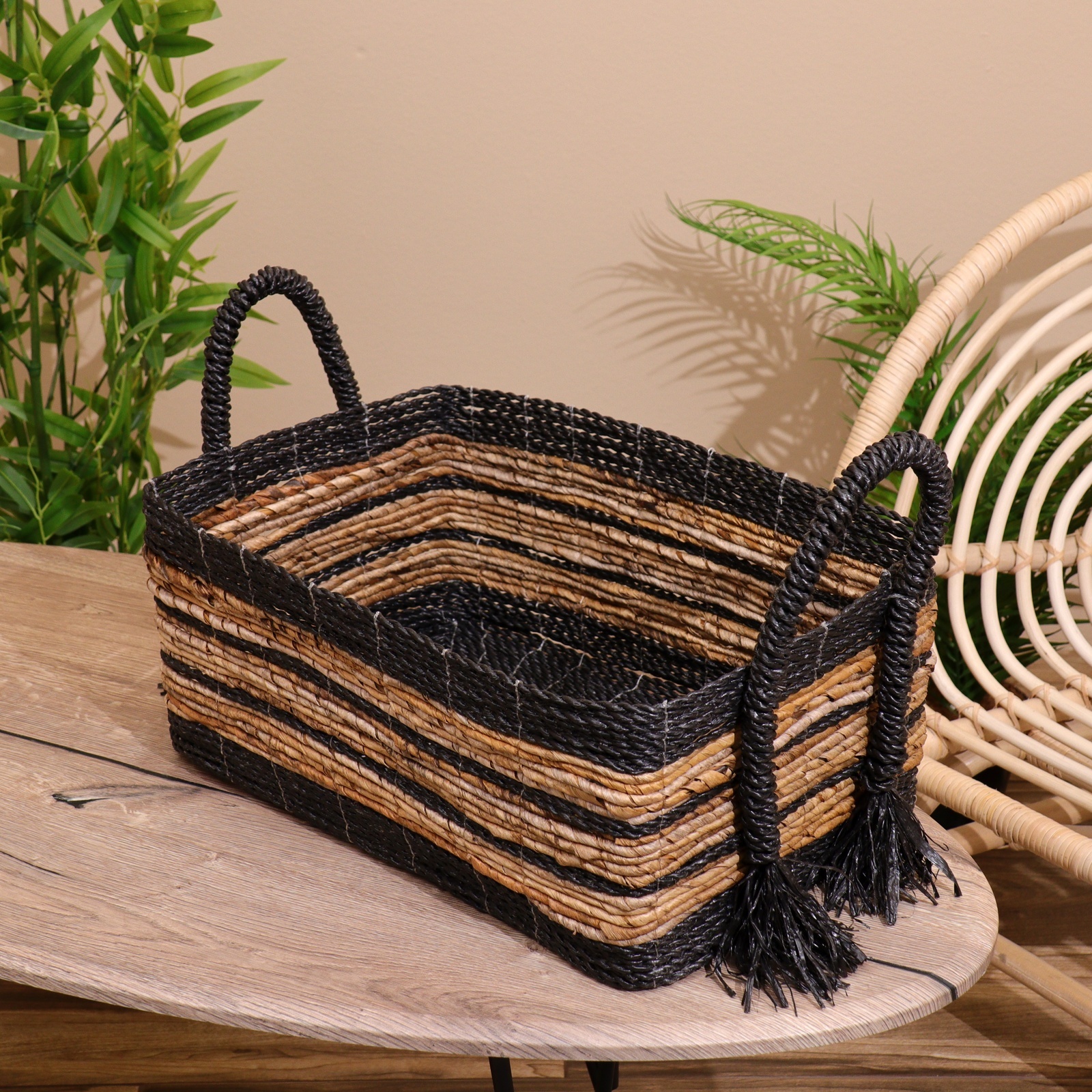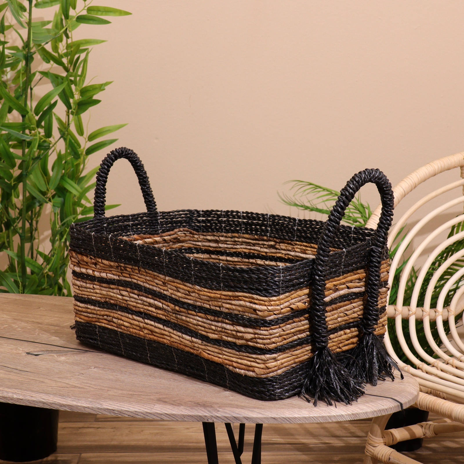 Корзина плетёная 45х30х30 см. Цвет: Чёрный Цвет: Бежевый Форма: Прямоугольная Ширина, см: 45 Высота, см: 30 Глубина, см: 30 В наборе, шт.: 1 Крышка: Нет Материал: Банановый лист Материал: Пластик Основной материал: Лоза Основной материал: Пластик Форма: Прямоугольник  развернуть описание ▼