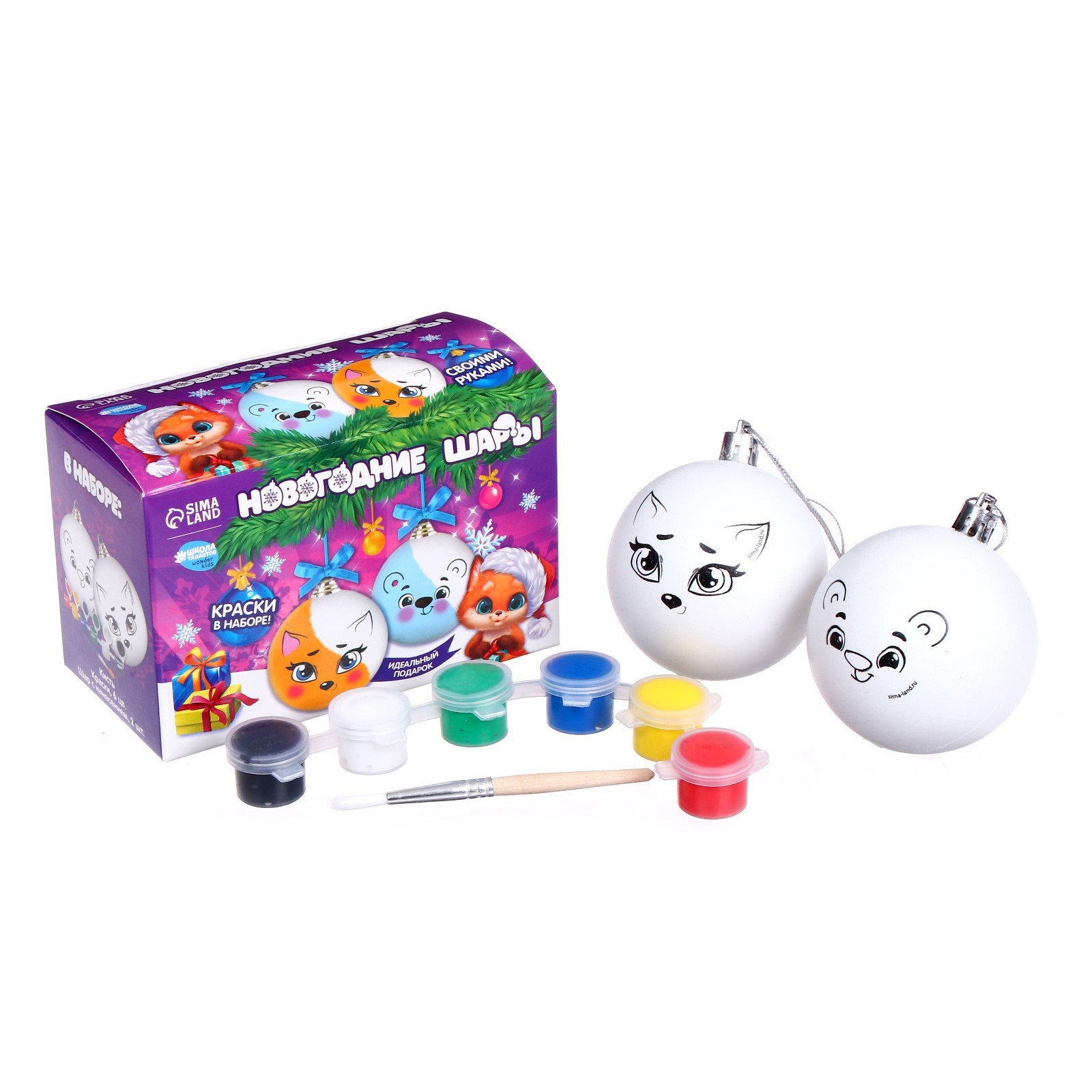 Ёлочные шары под раскраску на новый год «веселые друзья», набор 2 шт, краски, набор для творчества. Новогодние шары под раскраску — это чудесная возможность создать праздничную атмосферу своими руками! Особенности набора для творчества Рисунок на шары уже нанесён, вам остаётся только раскрасить его.Вы сможете создать уникальную игрушку, используя краски, которые уже есть в наборе.Чем полезны занятия с набором Такое творчество потренирует воображение, мелкую моторику, аккуратность, а также позволит поближе познакомиться с новогодними традициями. Количество цветов:6|Для кого:Унисекс|Возраст:От 3 лет|Тематика:Новогодняя|Символ года:Нет|Тематика праздника:Новый год|Материал:Пластик|Вид:По пластику|Для создания:Ёлочная игрушка|Составляющие набора:Товары для творчества|Темпер. ограничение НЕ НИЖЕ :-10|Возраст:Для детей|Вид заготовки:Ёлочное украшение|Комплектация набора:С кисточками|Комплектация набора:С красками|Страна:Китай  развернуть описание ▼