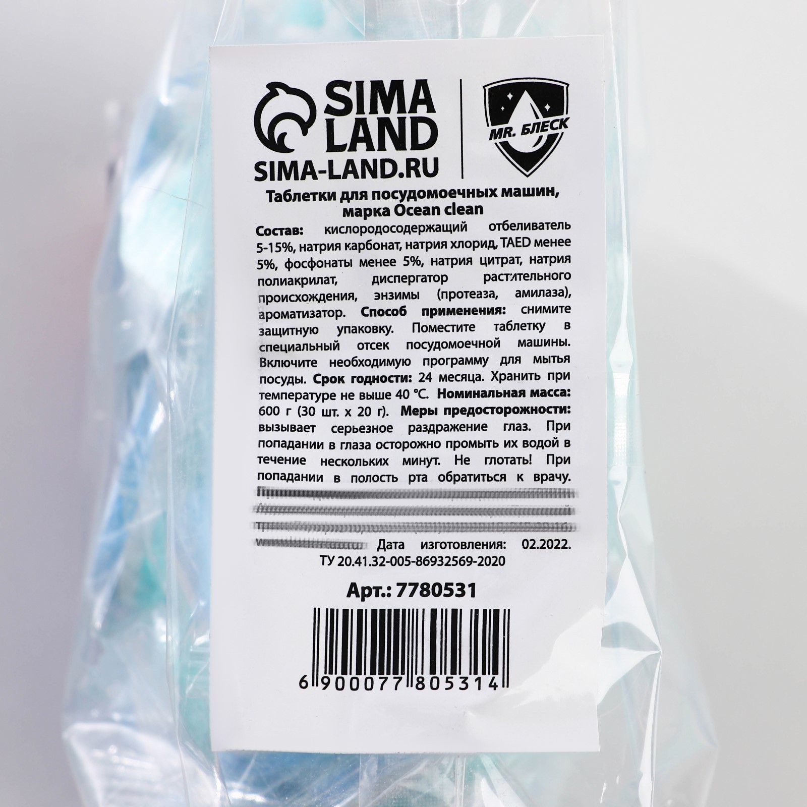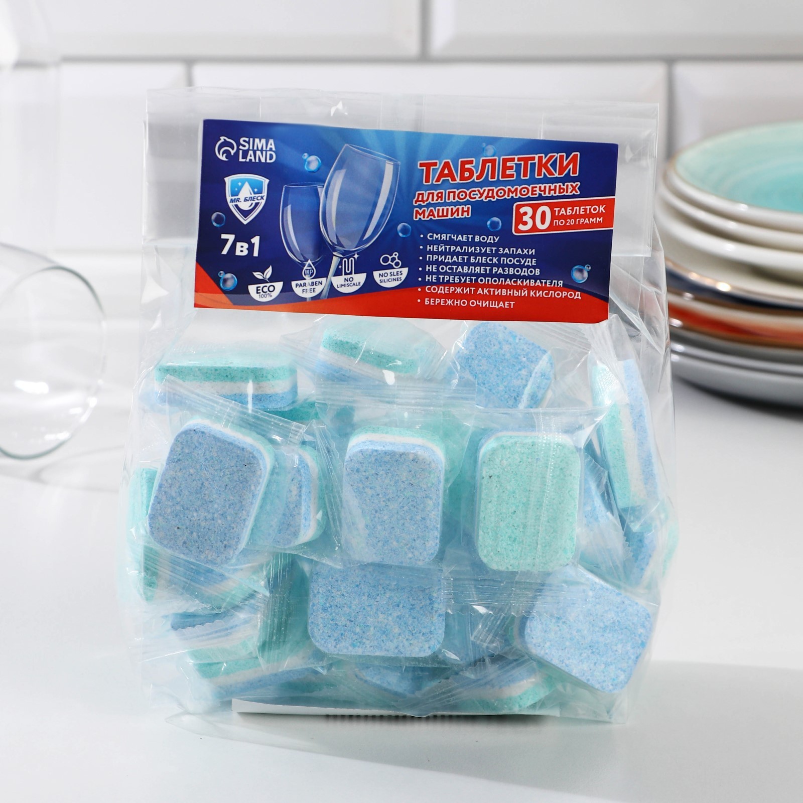 Таблетки для посудомоечных машин 7в1, 30 шт, mr. блеск. Таблетки для посудомоечных машин Mr. Блеск ффективно очищают и удаляют стойкие загрязнения, такие как остатки чая, кофе и жирные пятна, засохшие остатки пищи. - Смягчают воду;- Придаёт блеск стеклу и посуде без образования пятен;- Обеспечивает щадящую, но тщательную очистку;- Нейтрализует запахи;- Содержит активный кислород. Состав: Кислородосодержащий отбеливатель 5-15%, натрия карбонат, натрия хлорид, TAED менее 5%, фосфонаты менее 5%, натрия цитрат, натрия полиакрилат, диспергатор растительного происхождения, энзимы (протеаза, амилаза), ароматизатор Цвет: Голубой Для кого: Унисекс parts count: 0 В упаковке, шт.: 30 Вес, г/Объём, мл: 600 Вид упаковки: Без упаковки Адресат: Без адресата Ароматизированные: Нет Вид: Таблетки Аромат: Без аромата Форма выпуска: Капсулы Назначение: Бытовые : +5 : +25 Возраст: Для взрослых Товар 18+: Нет Особенности: Для блеска Особенности: Не требует смывания Содержание хлора: Нет Тематика подарка: Хозтовары  развернуть описание ▼