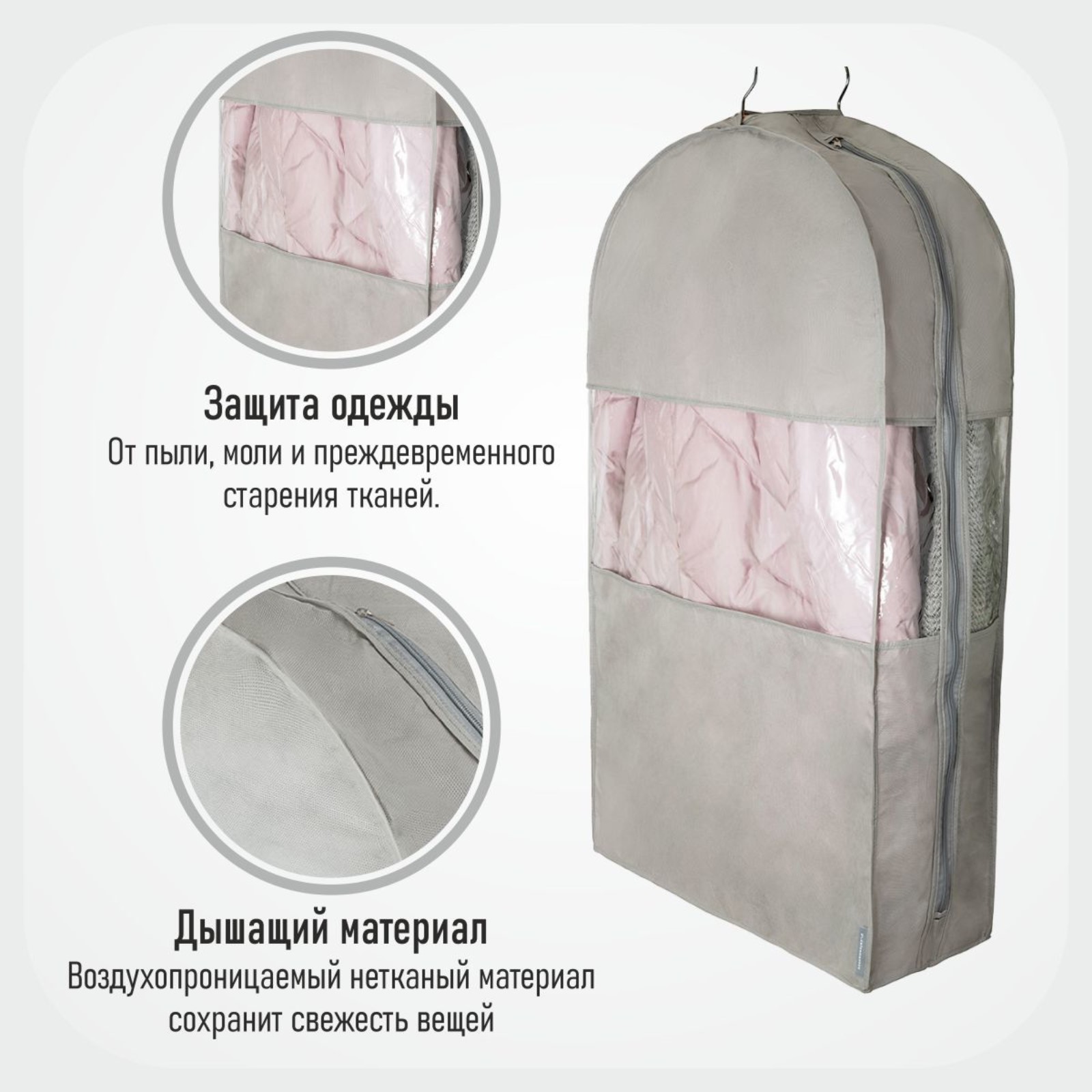 Чехол для одежды «лондон» двойной, короткий, 100х60х20 см, цвет серый
