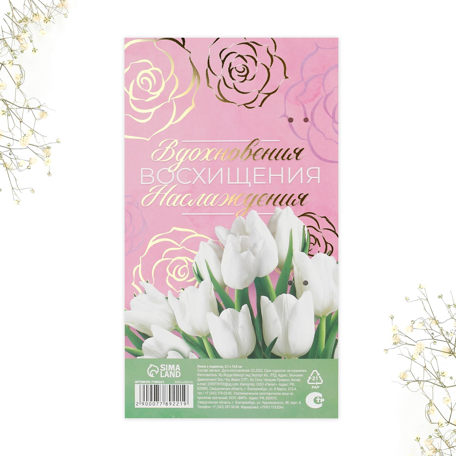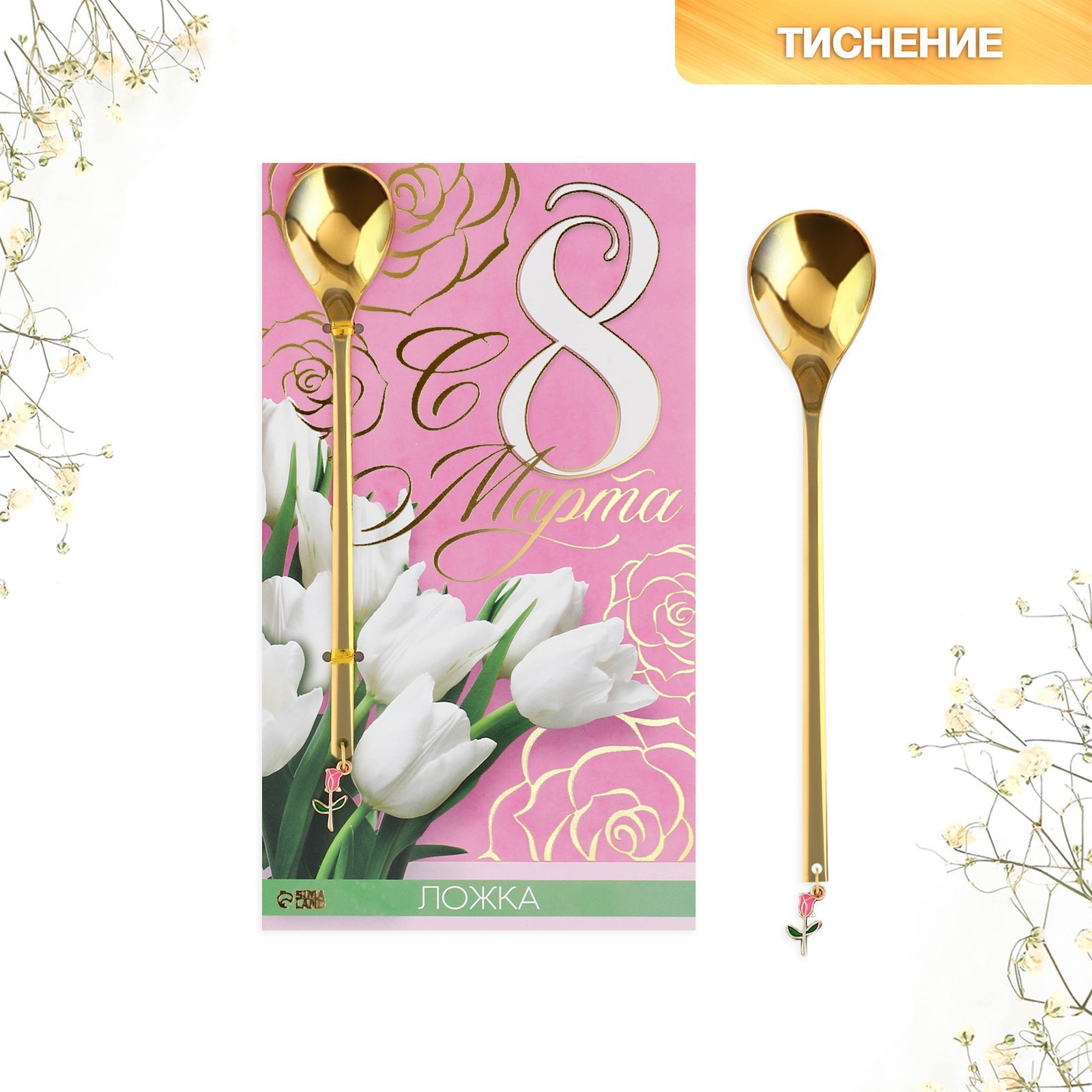 Ложка с подвесом "с 8 марта", 2,7 х 14, 8 см