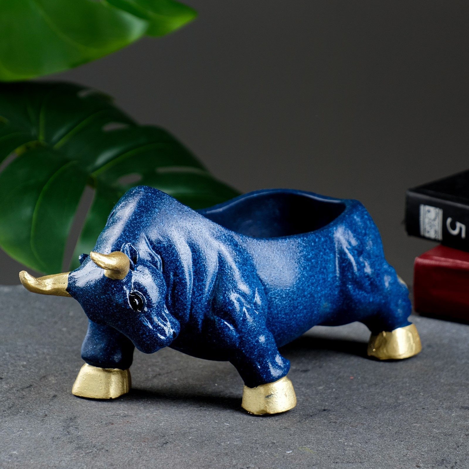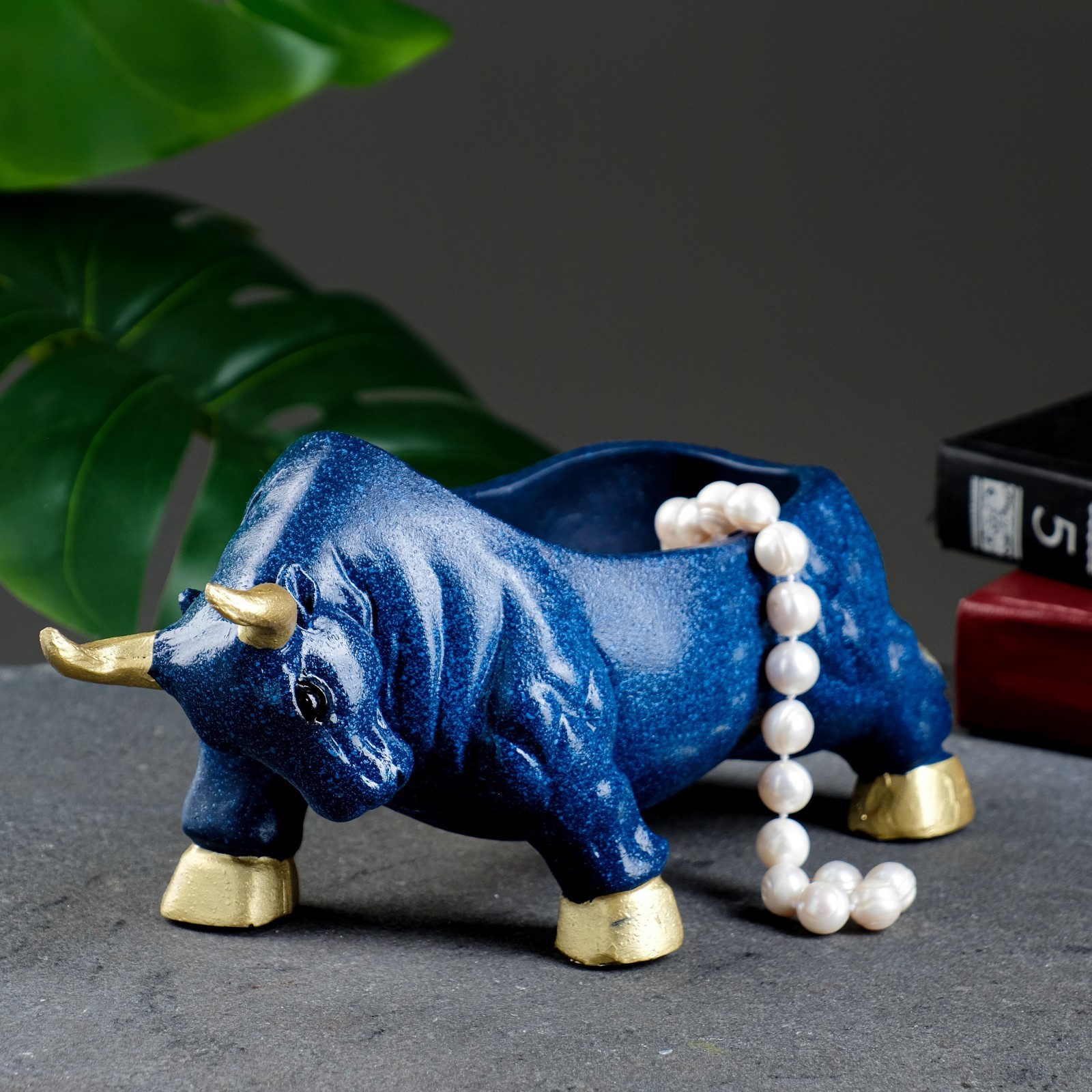 Подставка конфетница "бык" синий мрамор, 12х24х11см