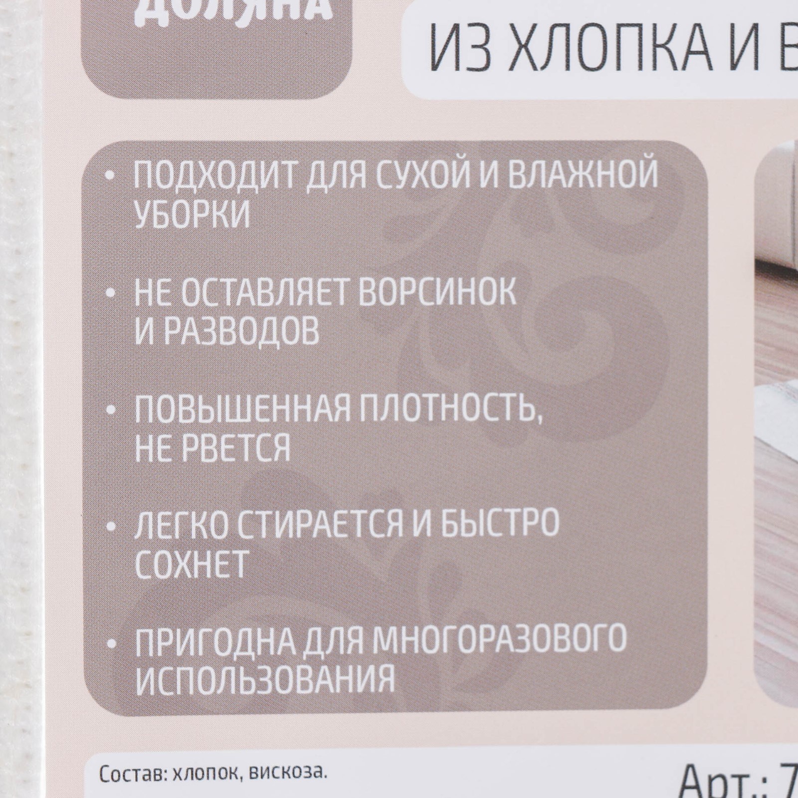 Тряпка для мытья пола доляна, вискоза-хпп, с оверлоком, 50x80 см, плотность 220 г/м, цвет белый