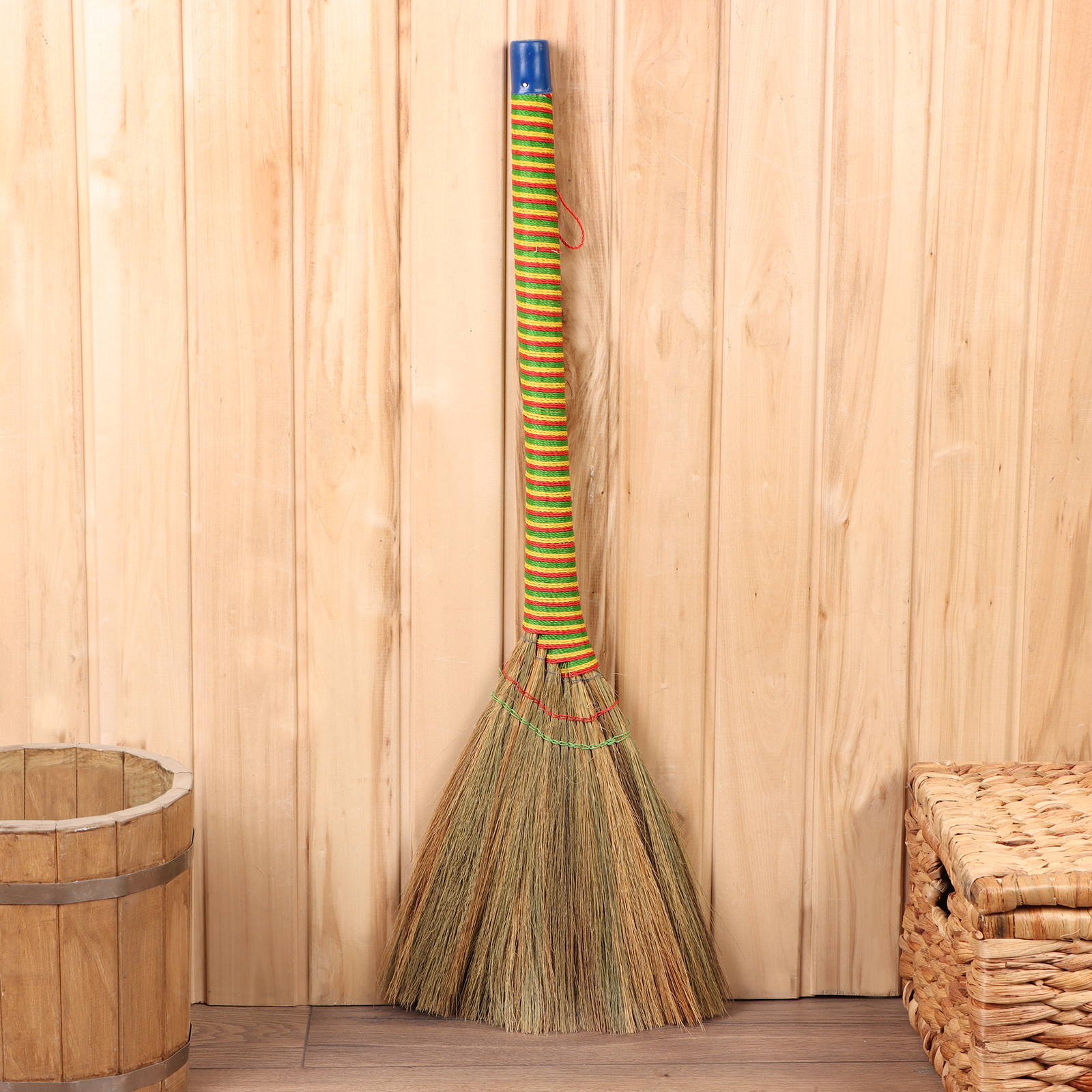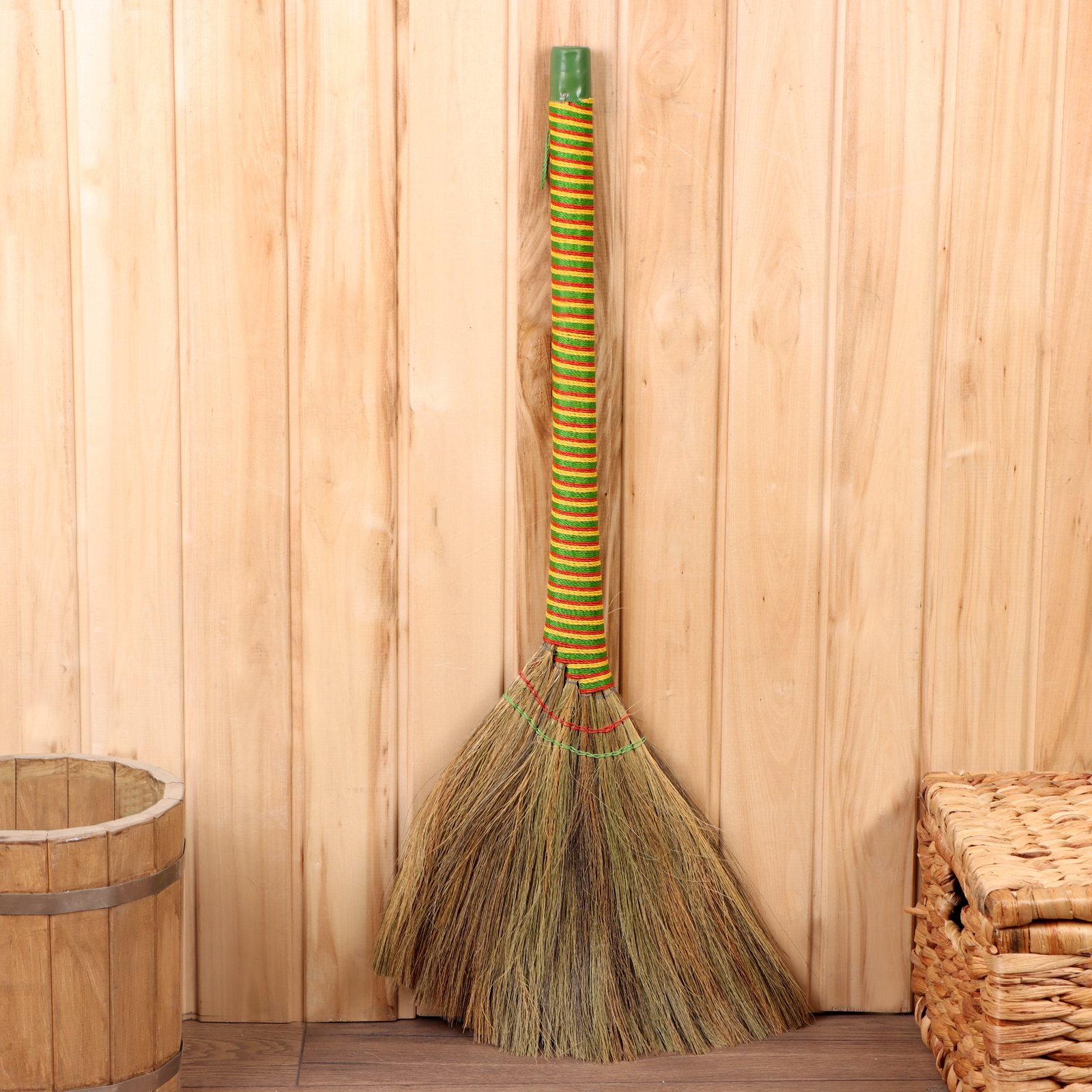 Веник рисовый с бамбуковой ручкой, 30х80 см, микс