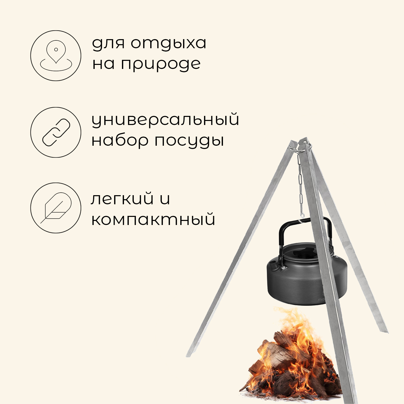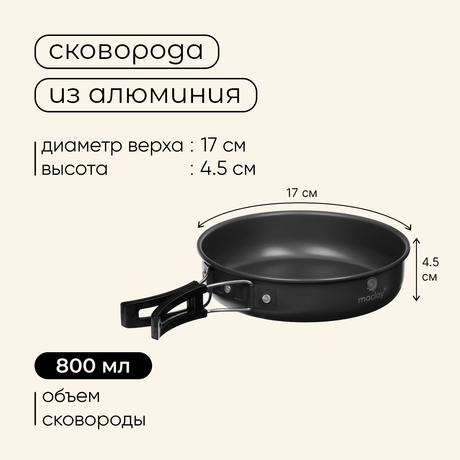 Посуда туристическая Maclay, набор: кастрюля, сковородка, чайник, 2 стакана, приборы, карабин