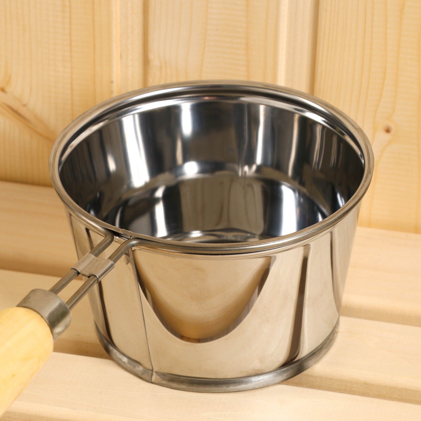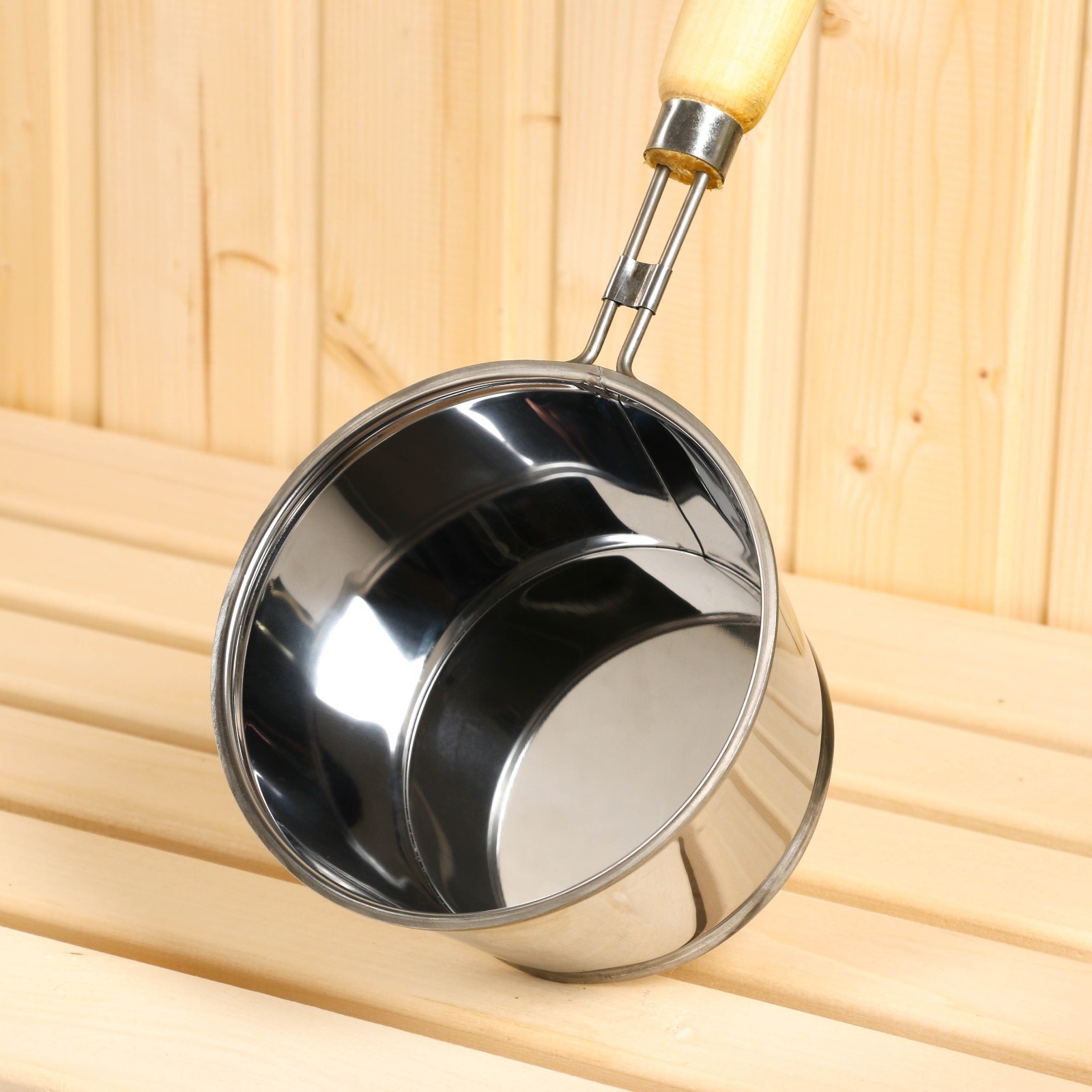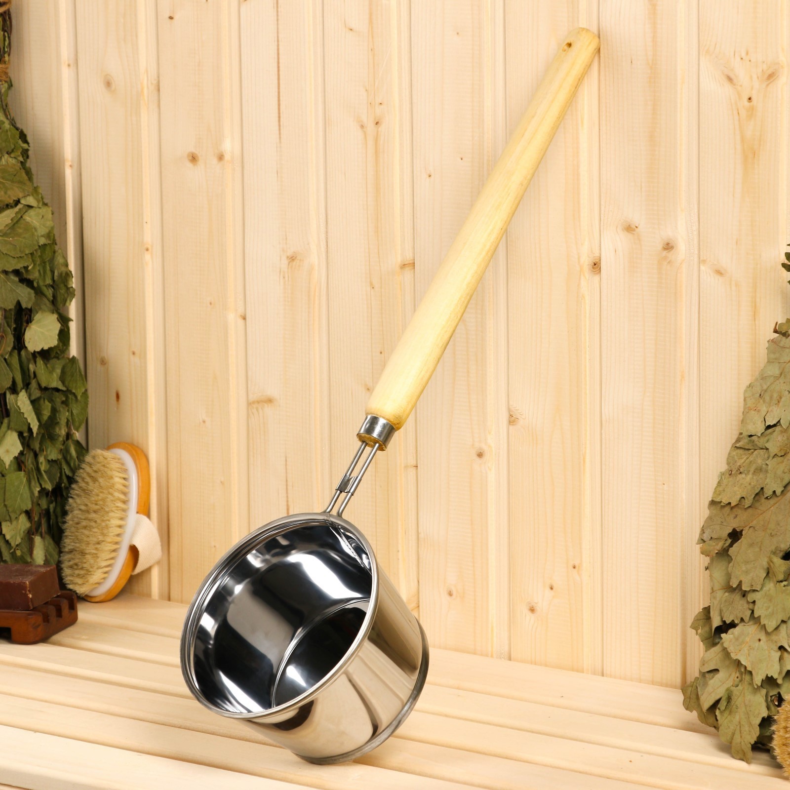 Ковш-черпак для бани из нержавеющей стали, 1.2л, 56 см, с деревянной ручкой