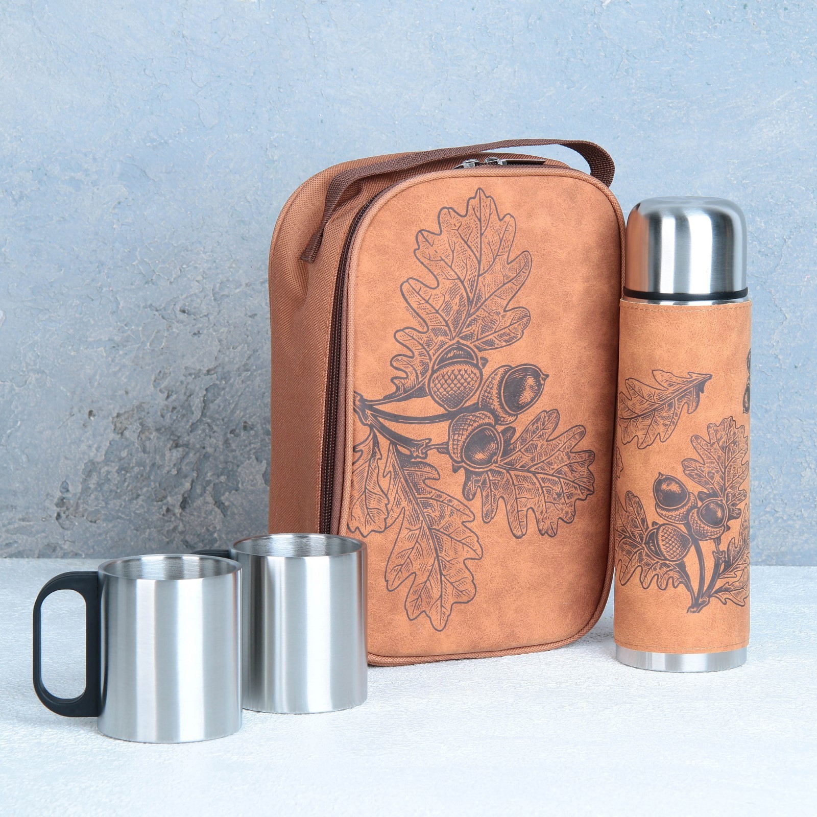 Набор «листья»: термос 500 мл, кружка 2 шт