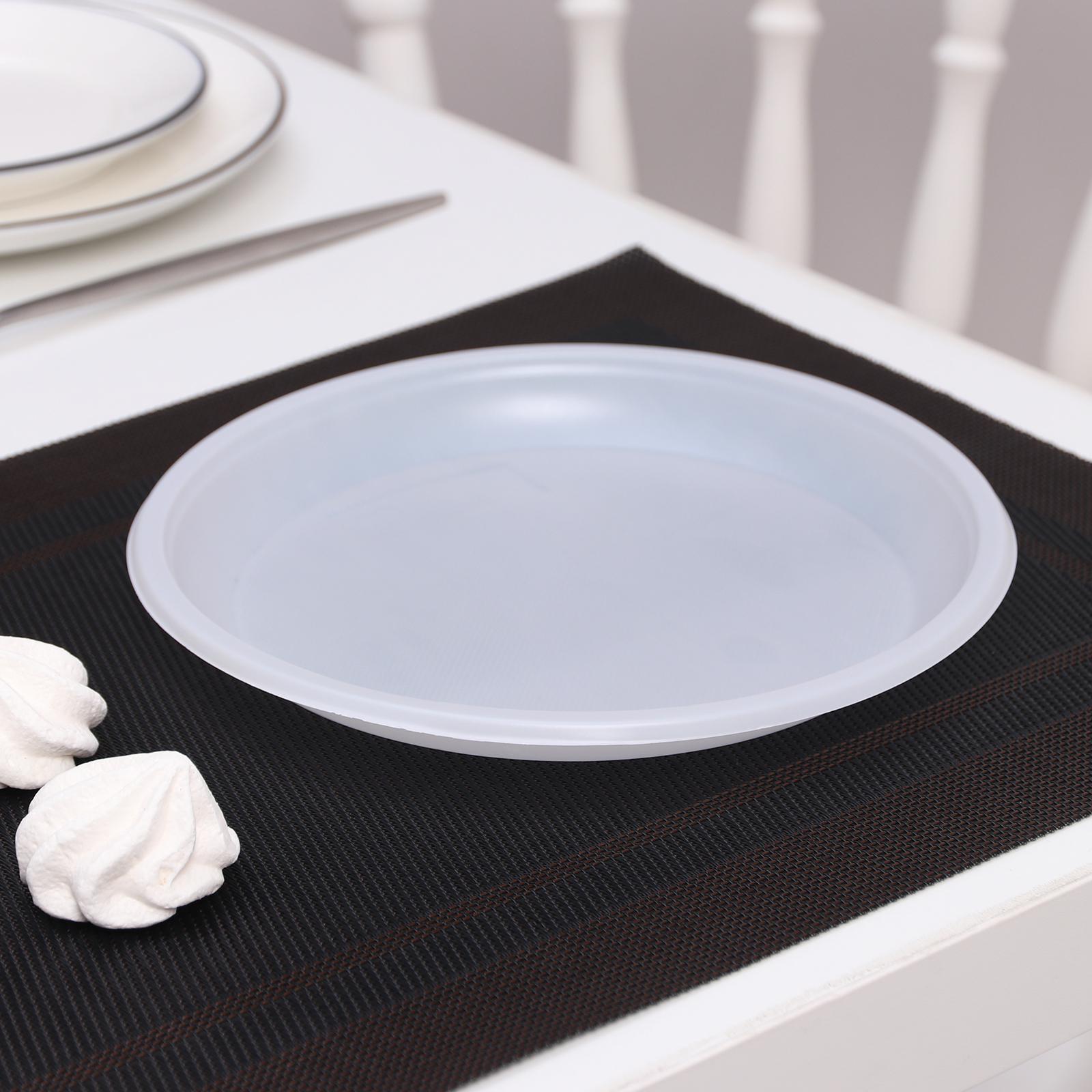 Тарелки пластиковые одноразовые, D=20,5 см, цвет белый, 12 шт/уп
