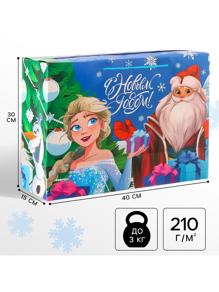 Пакет подарочный-коробка «с новым годом!» 15 х 40х30 см, холодное сердце. Цвет:Синий|Для кого:Для девочки|Форма:Прямоугольная|Плотность, г/м :210|Допустимый вес вложения, г:3500|Тематика:Детская|Тематика:Новогодняя|Символ года:Нет|Тематика праздника:Новый год|Материал:Ламинированный картон|Расширение:Боковая складка|Вид:Коробки-пакеты|Размер:Большой (25-45 см)|Страна:Китай  развернуть описание ▼