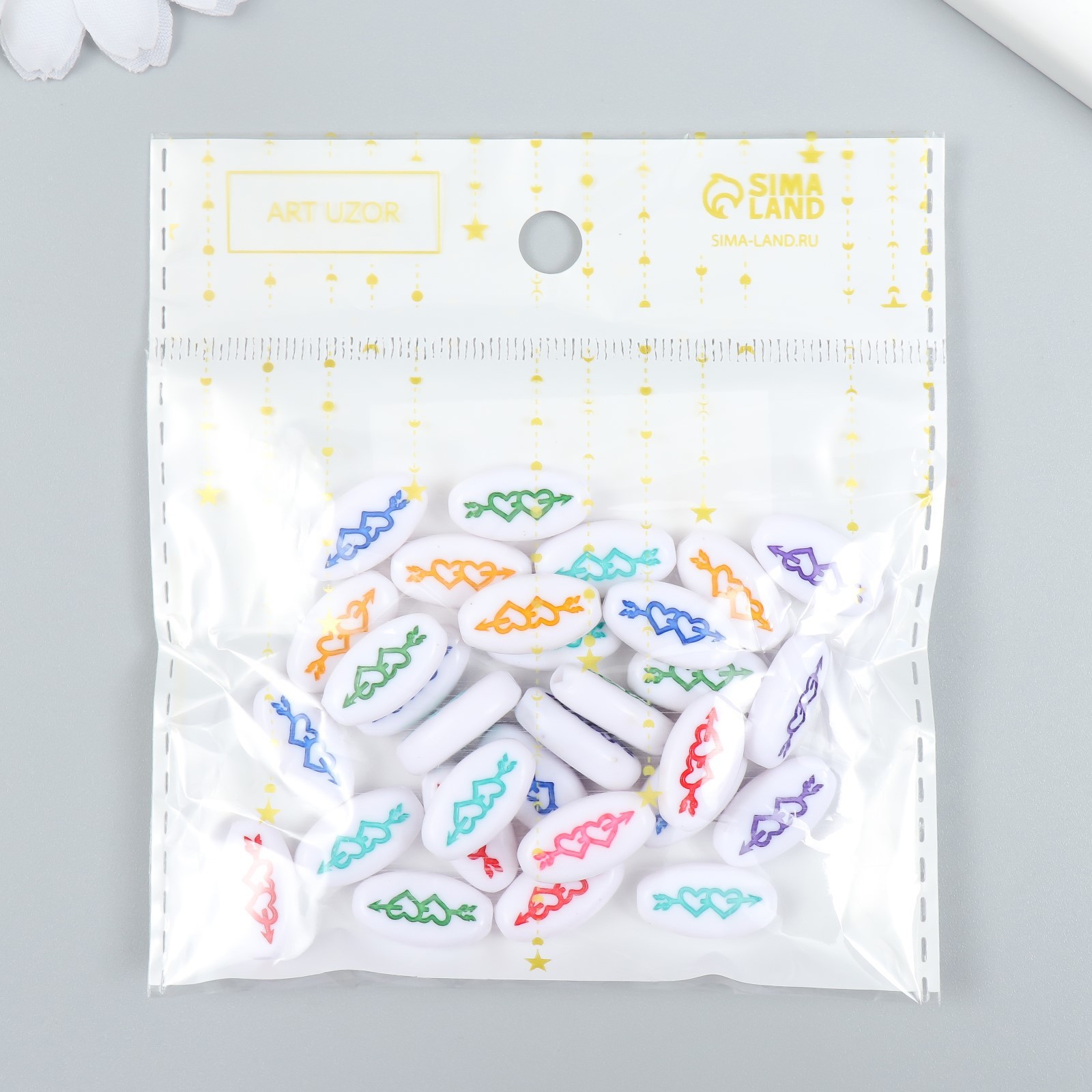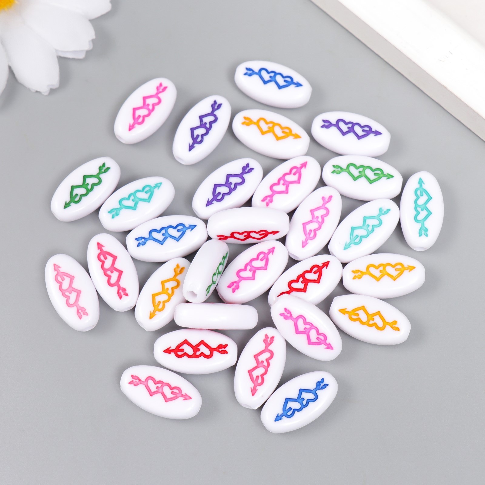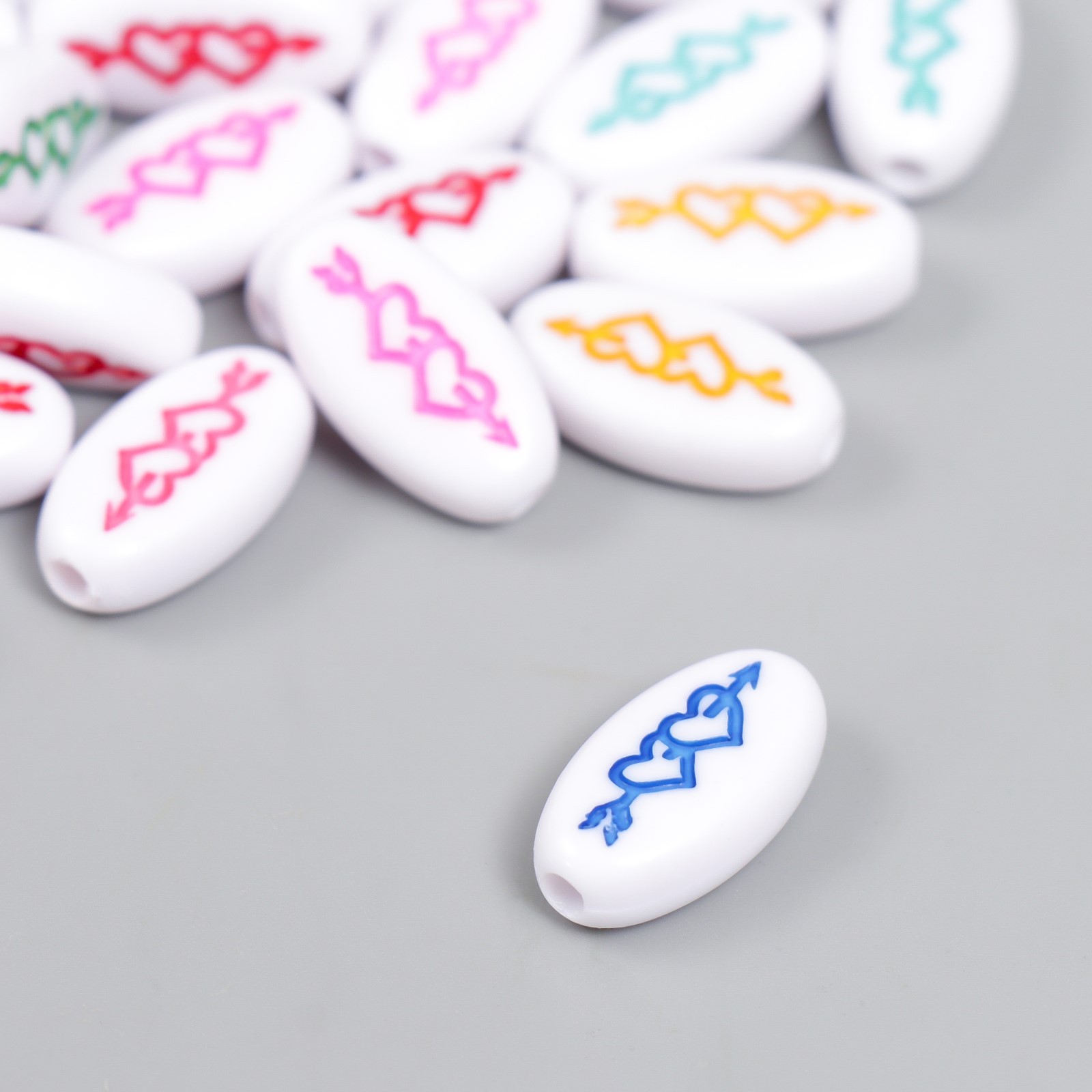 Набор бусин для рукоделия и плетения «арт узор. два сердца со стрелой овал», 20 г, пластик, цветные, 0.4 0.6 1.8 см 78115