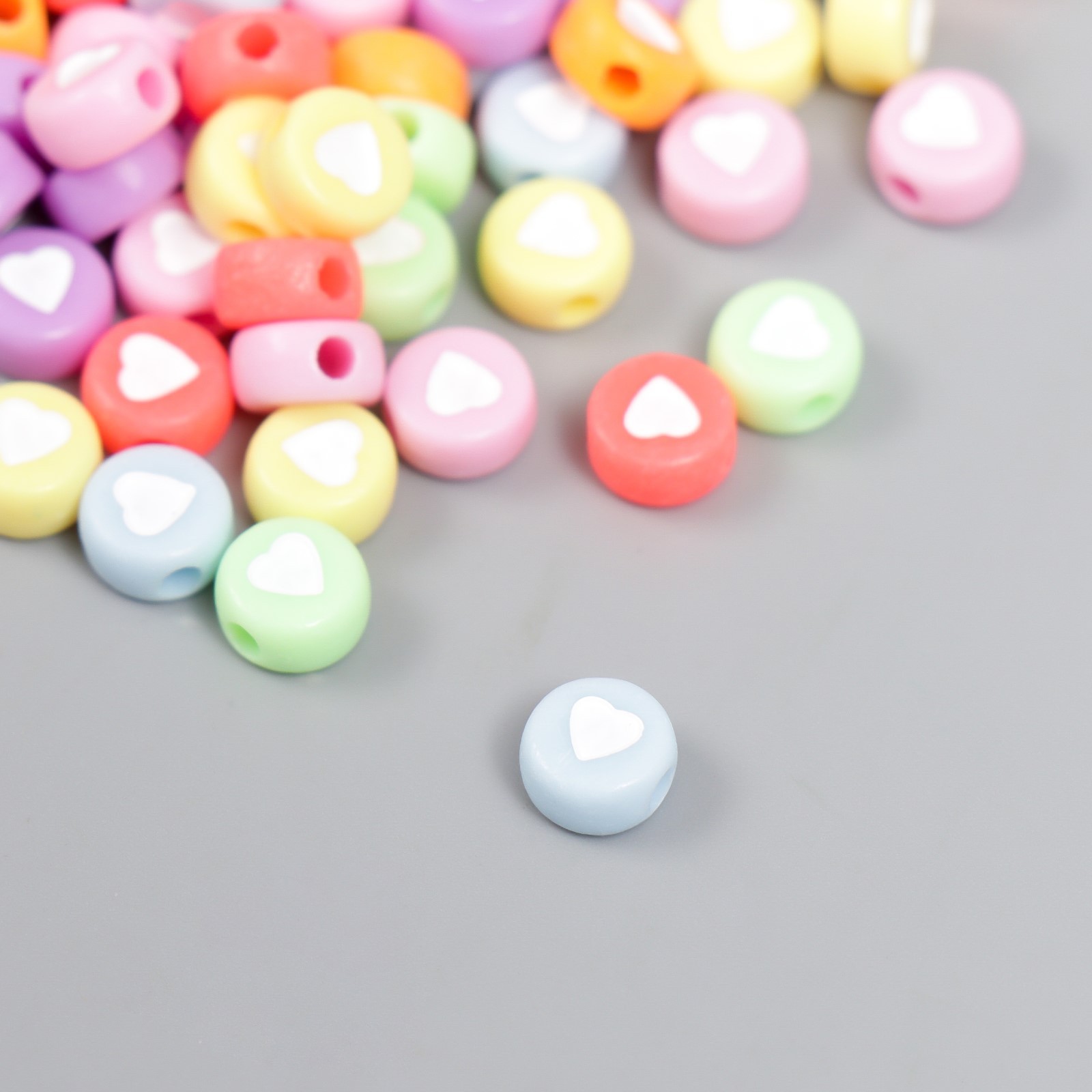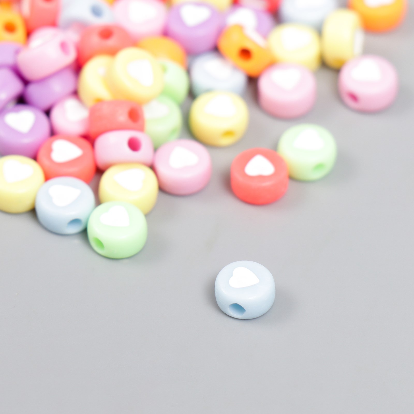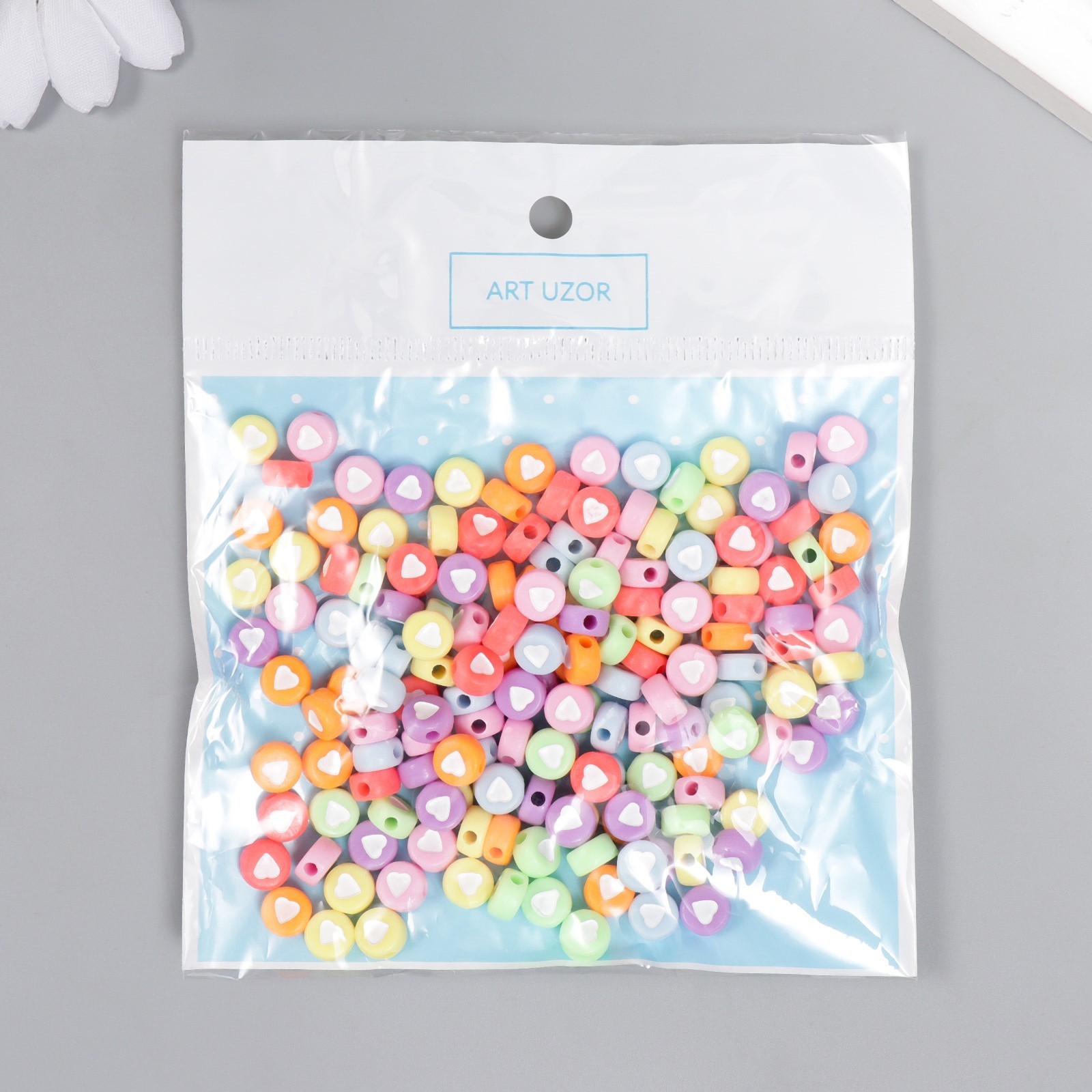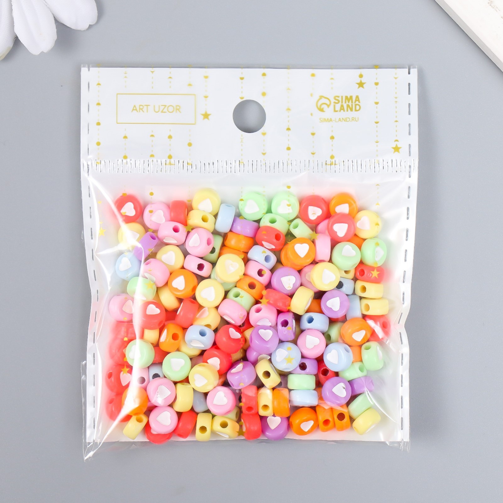 Набор бусин для рукоделия и плетения «арт узор. сердечко в круге», 20 г, пластик, яркие, 0.4 0.6 0.6 см.