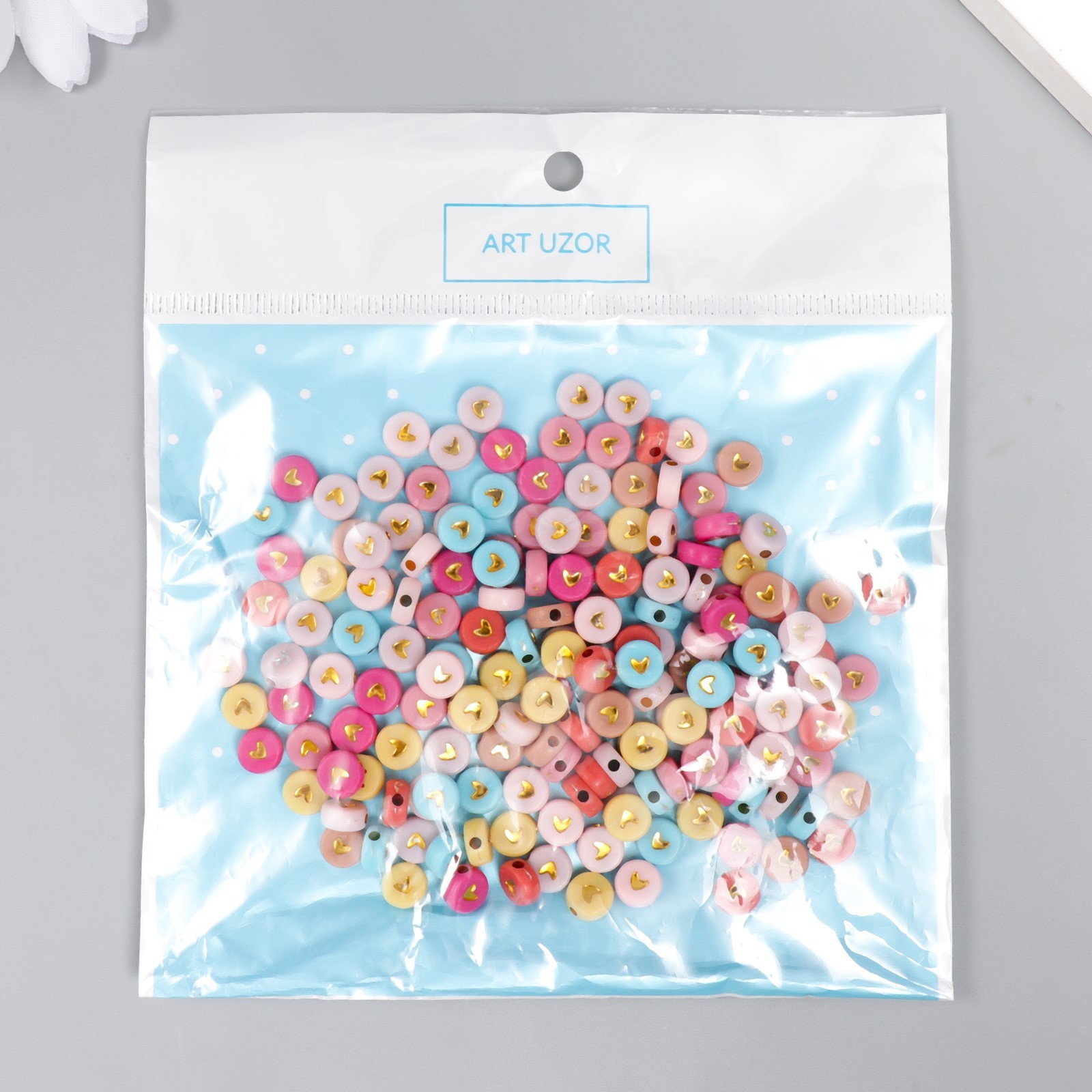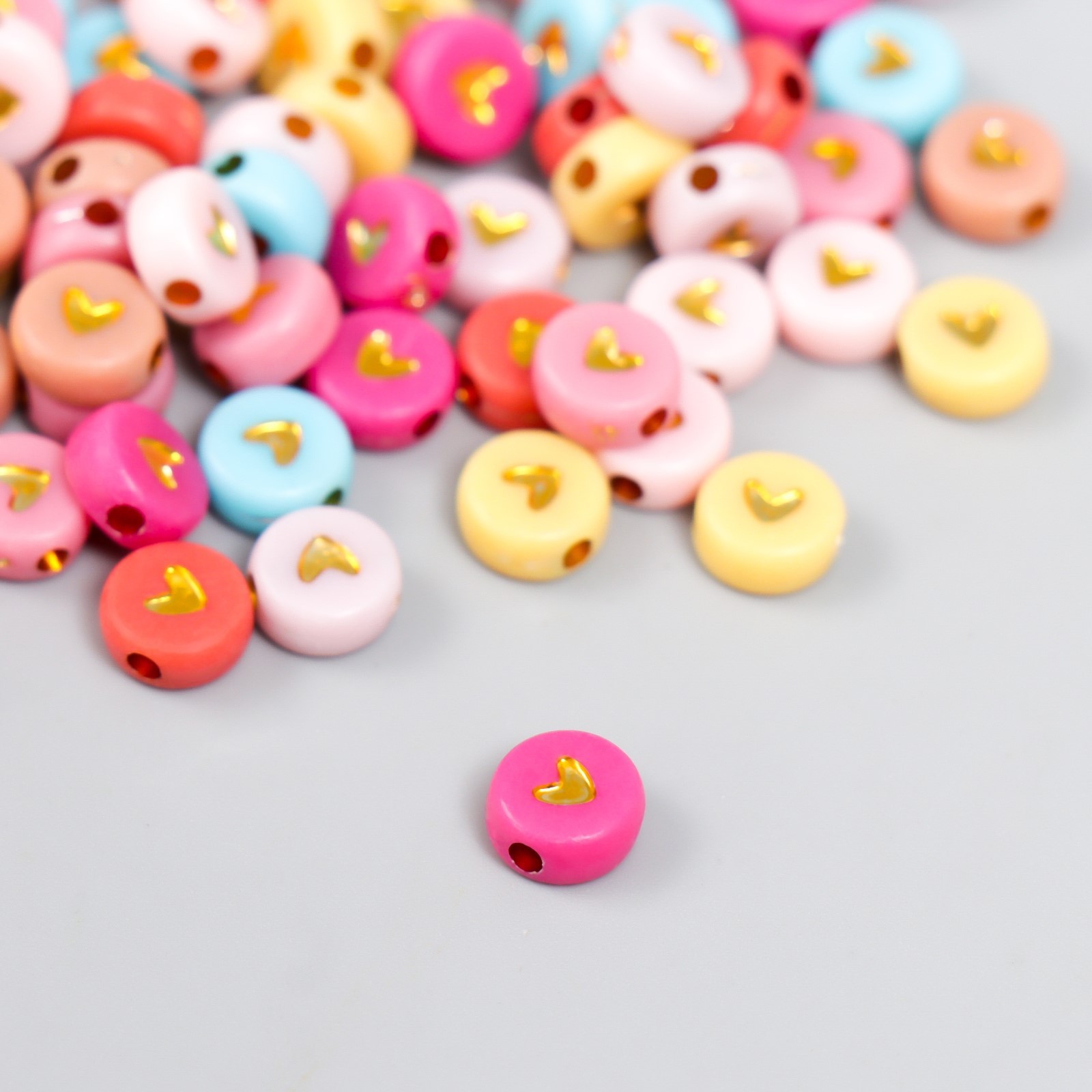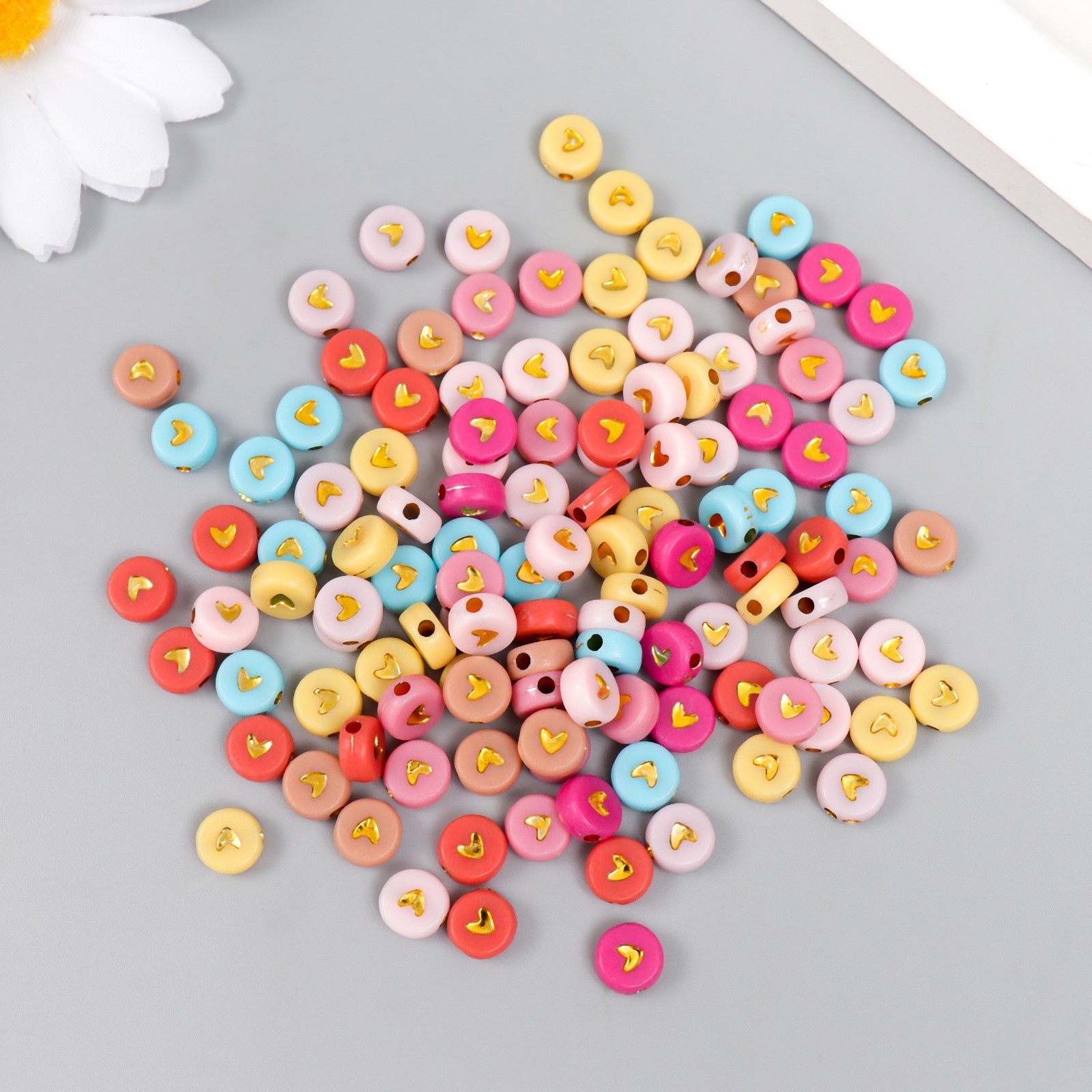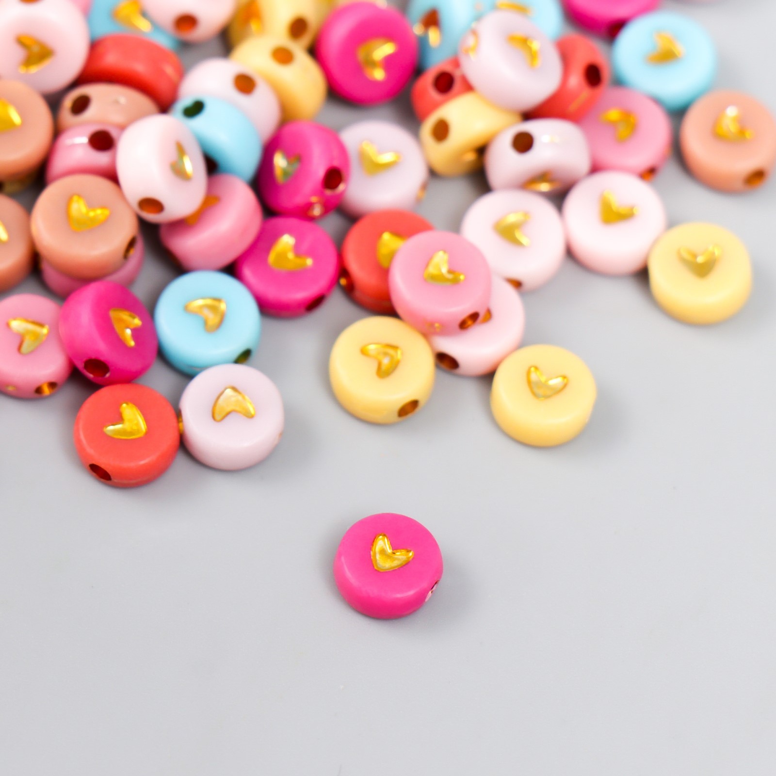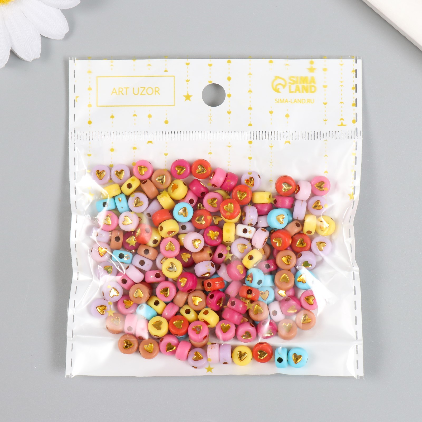 Набор бусин для рукоделия и плетения «арт узор. золотое сердечко в круге», 20 г, пластик, яркие, 0.4 0.7 0.7 см