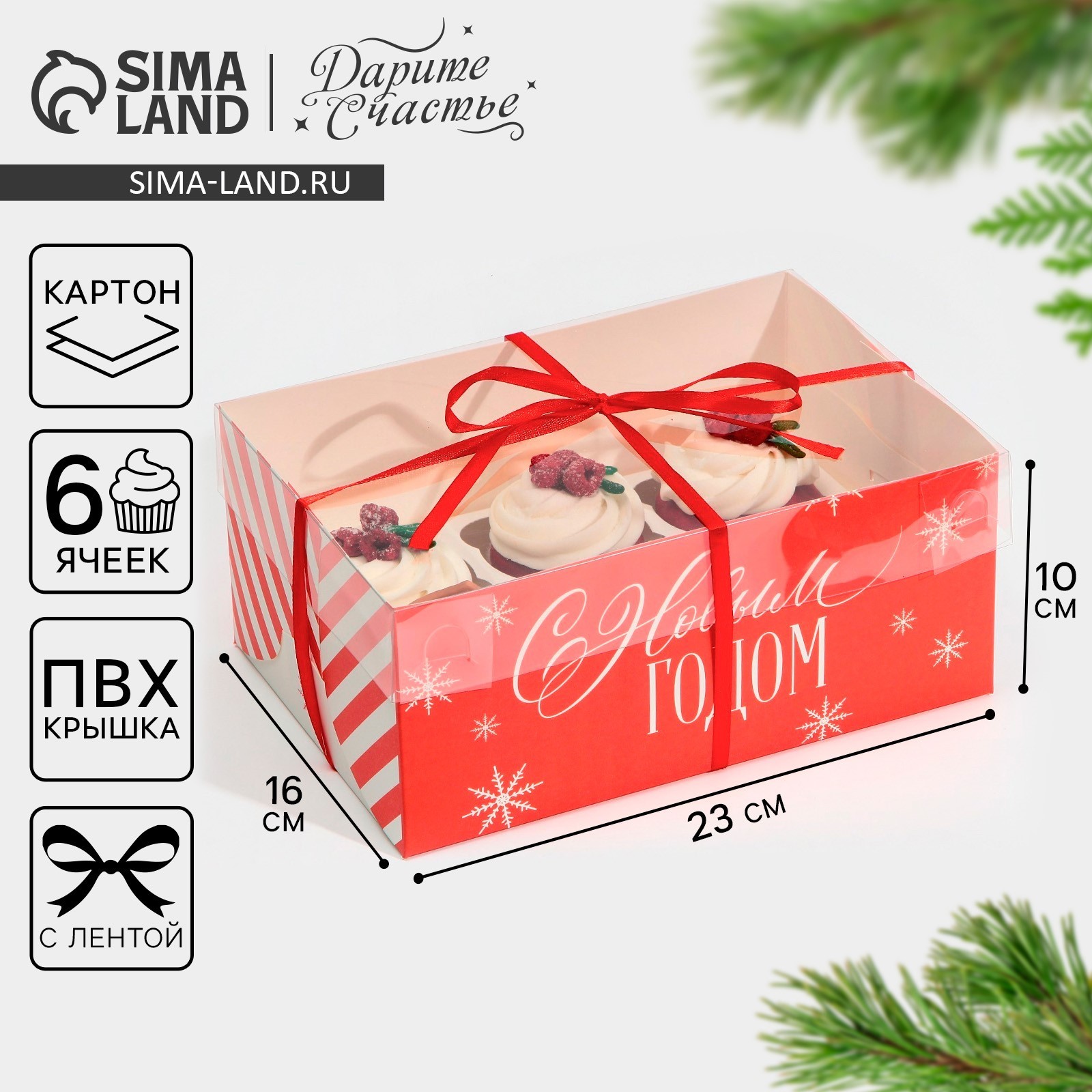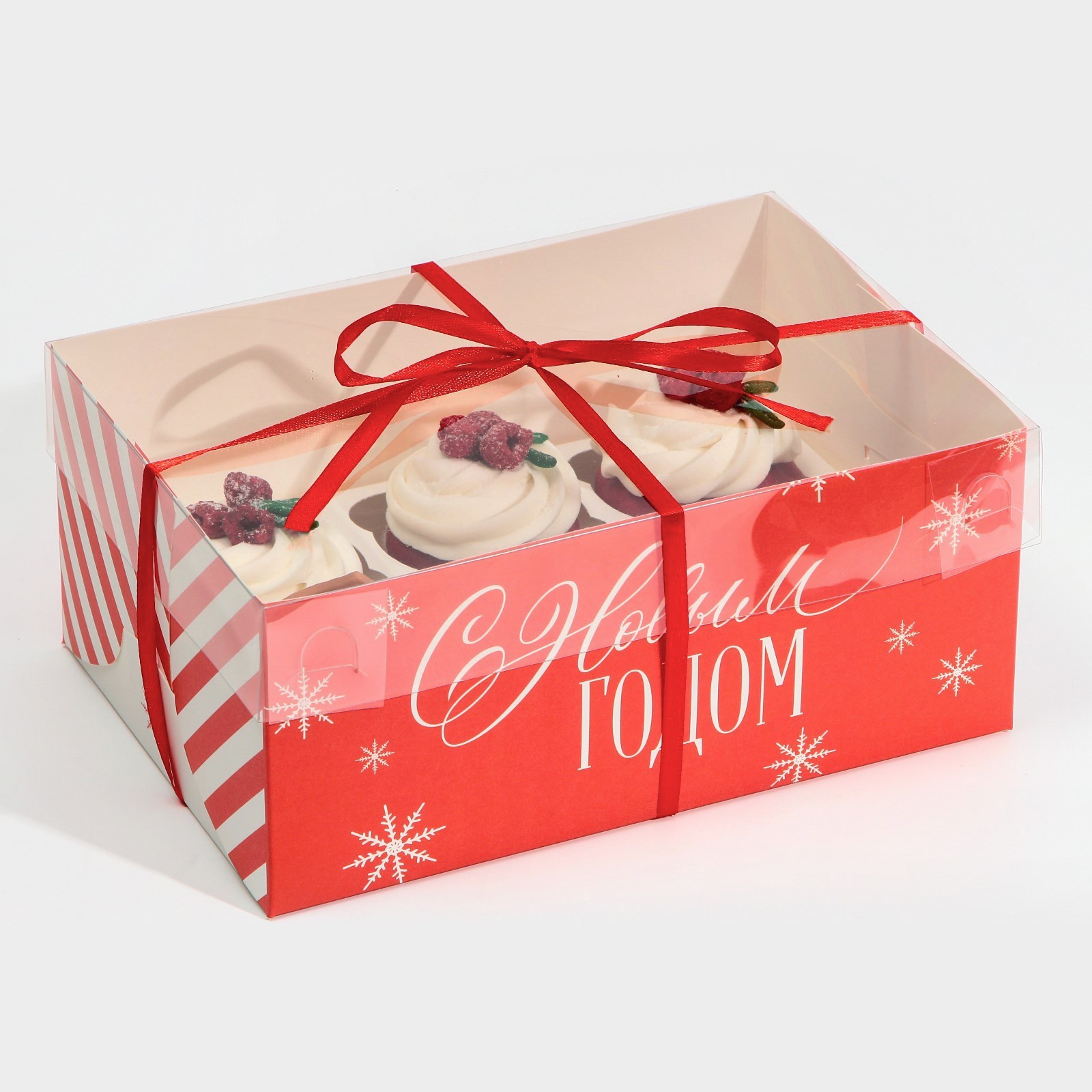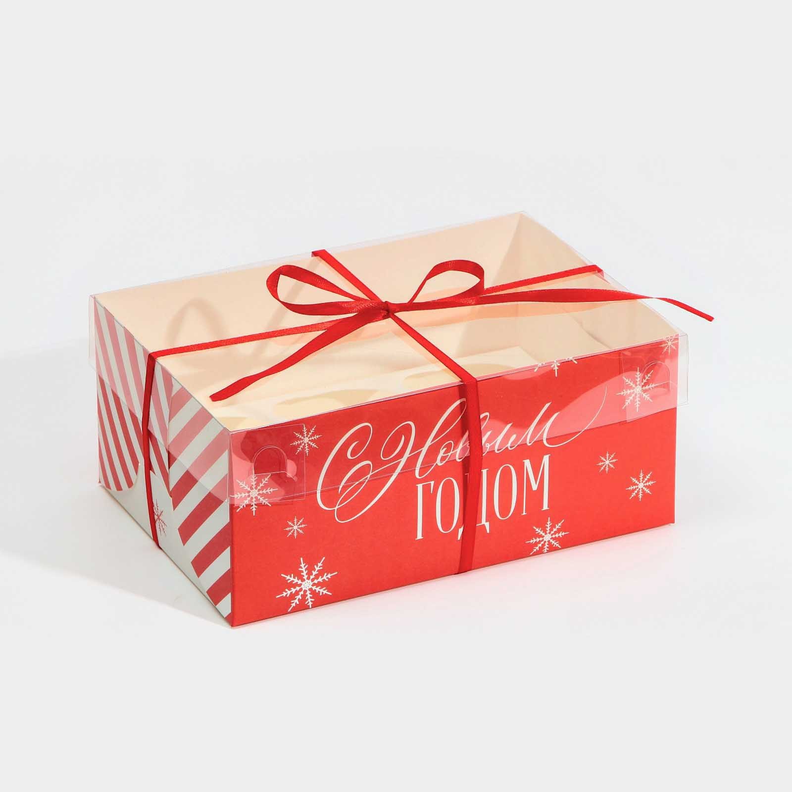 Коробка для капкейка «поздравляю с новым годом», 23 х 16 х 10 см. Размер одной ячейки, без учёта выемки под пальцы, ~6,5 см.Вид упаковки:Для капкейков|Цвет:Белый|Цвет:Красный|Форма:Прямоугольная|Плотность, г/м :250|Длина, см:23|Ширина, см:16|Высота, см:10|Вместимость, шт.:6|Допустимый вес вложения, г:900|Тематика:Новогодняя|Символ года:Нет|Тематика праздника:Новый год|Материал:Картон|Материал:Пластик|Вид ручки:Без ручки|Вид:Кондитерские коробки|Вид еды:Для десертов|Страна:Китай