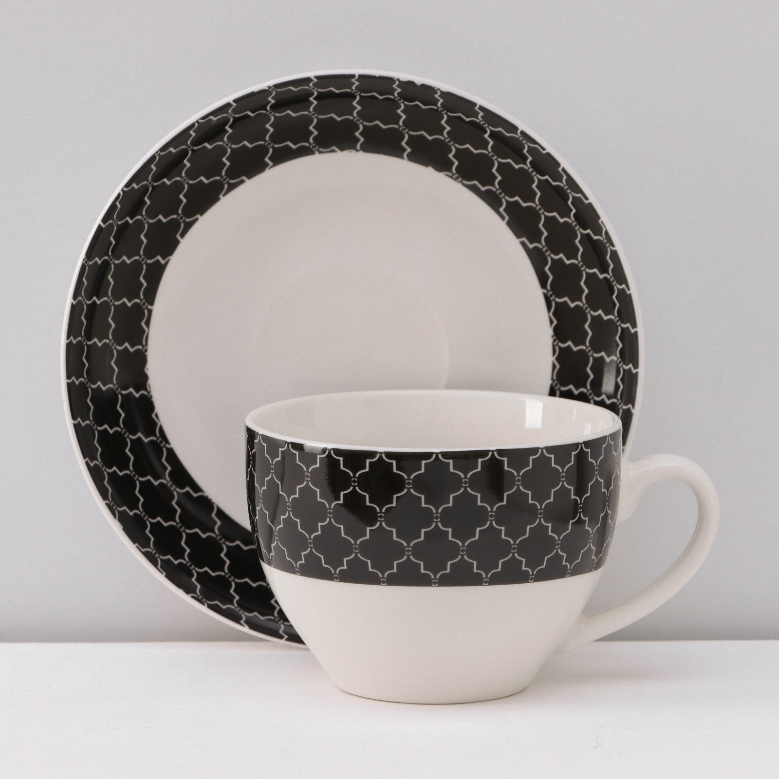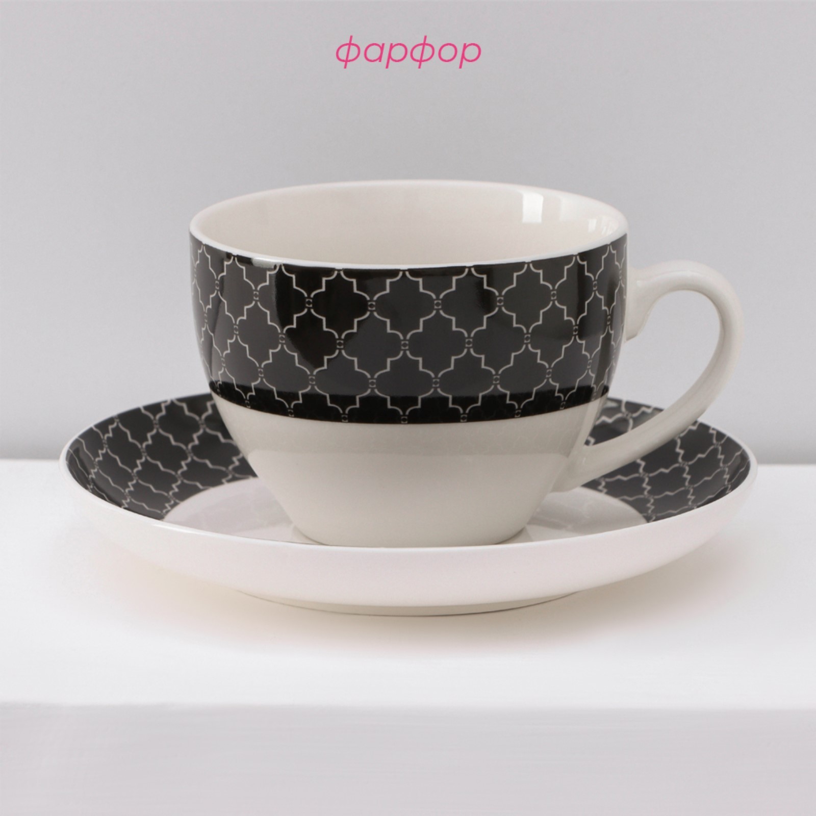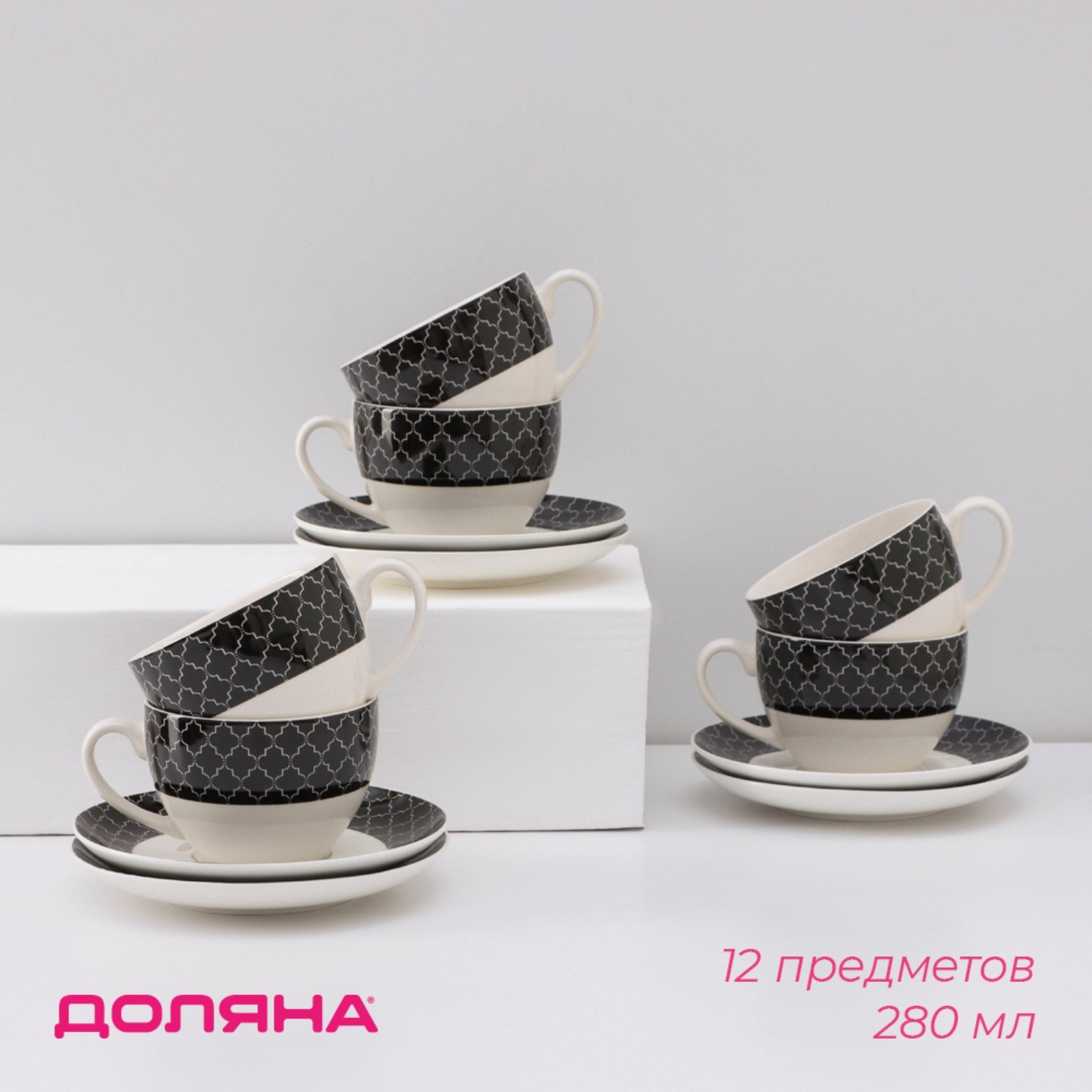 Сервиз фарфоровый чайный доляна «марокко», 12 предметов: 6 чашек 280 мл, 6 блюдец D=15 см, цвет белый и чёрный