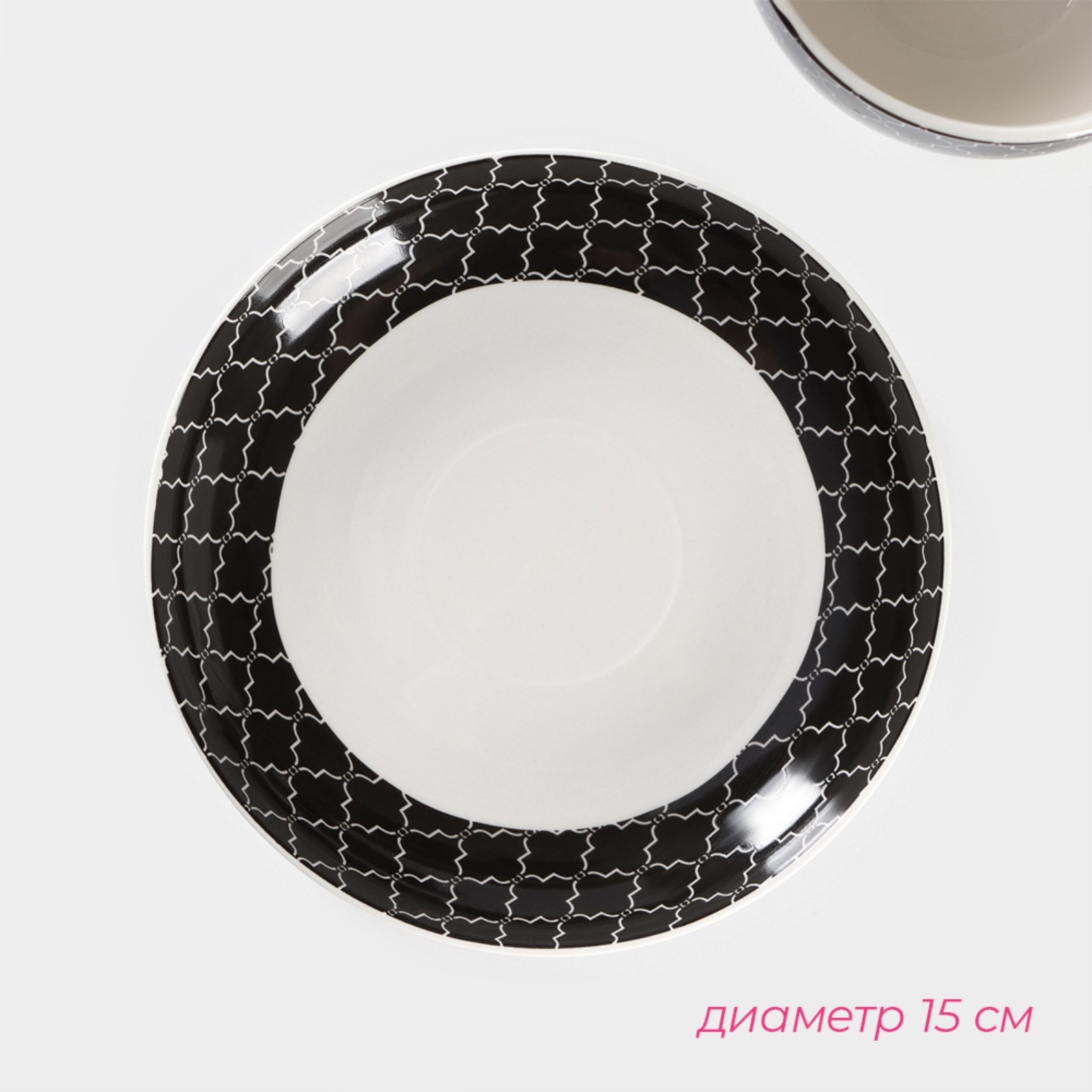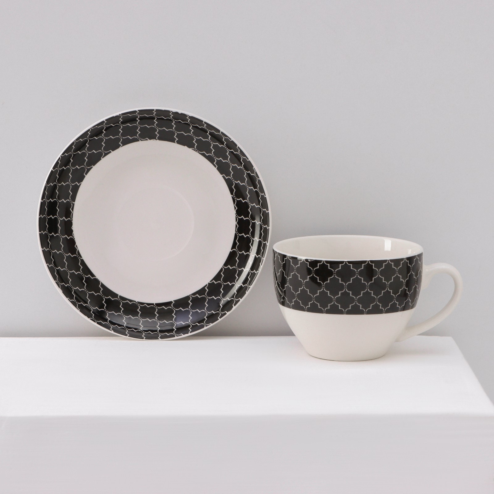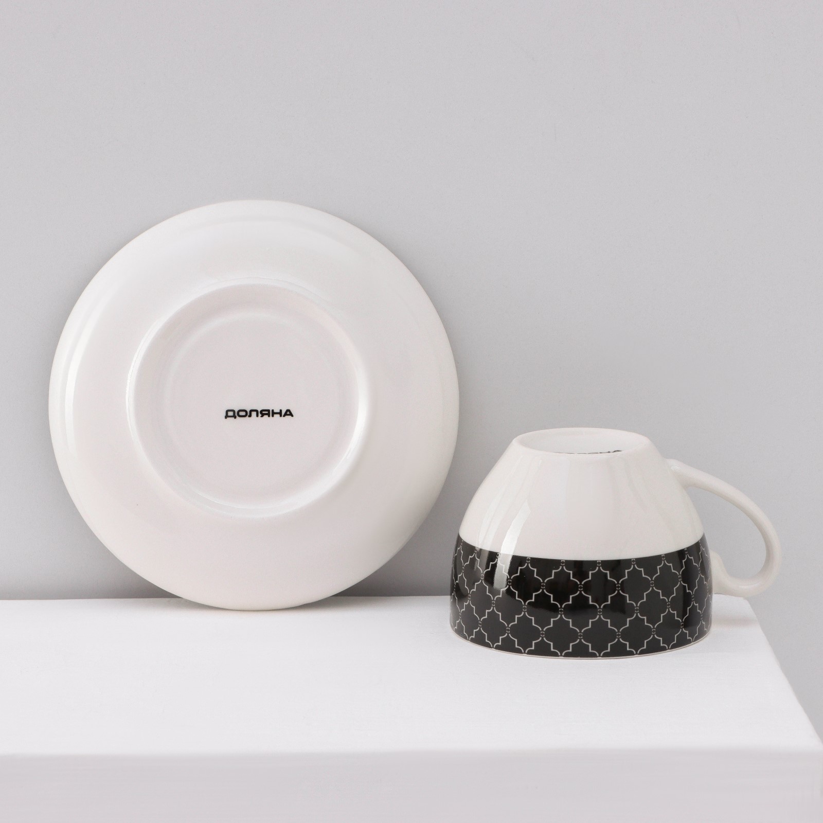Сервиз фарфоровый чайный доляна «марокко», 12 предметов: 6 чашек 280 мл, 6 блюдец D=15 см, цвет белый и чёрный